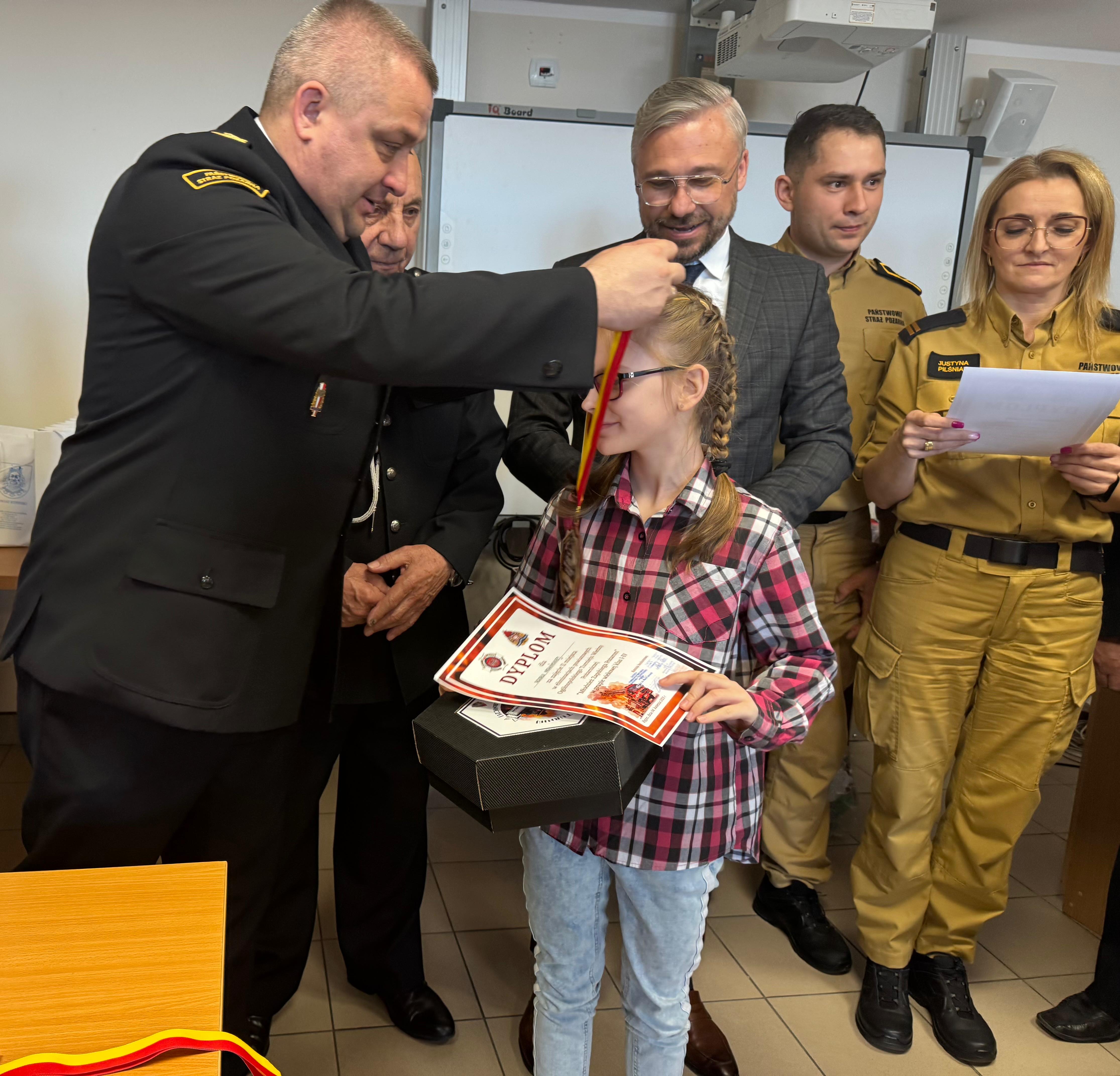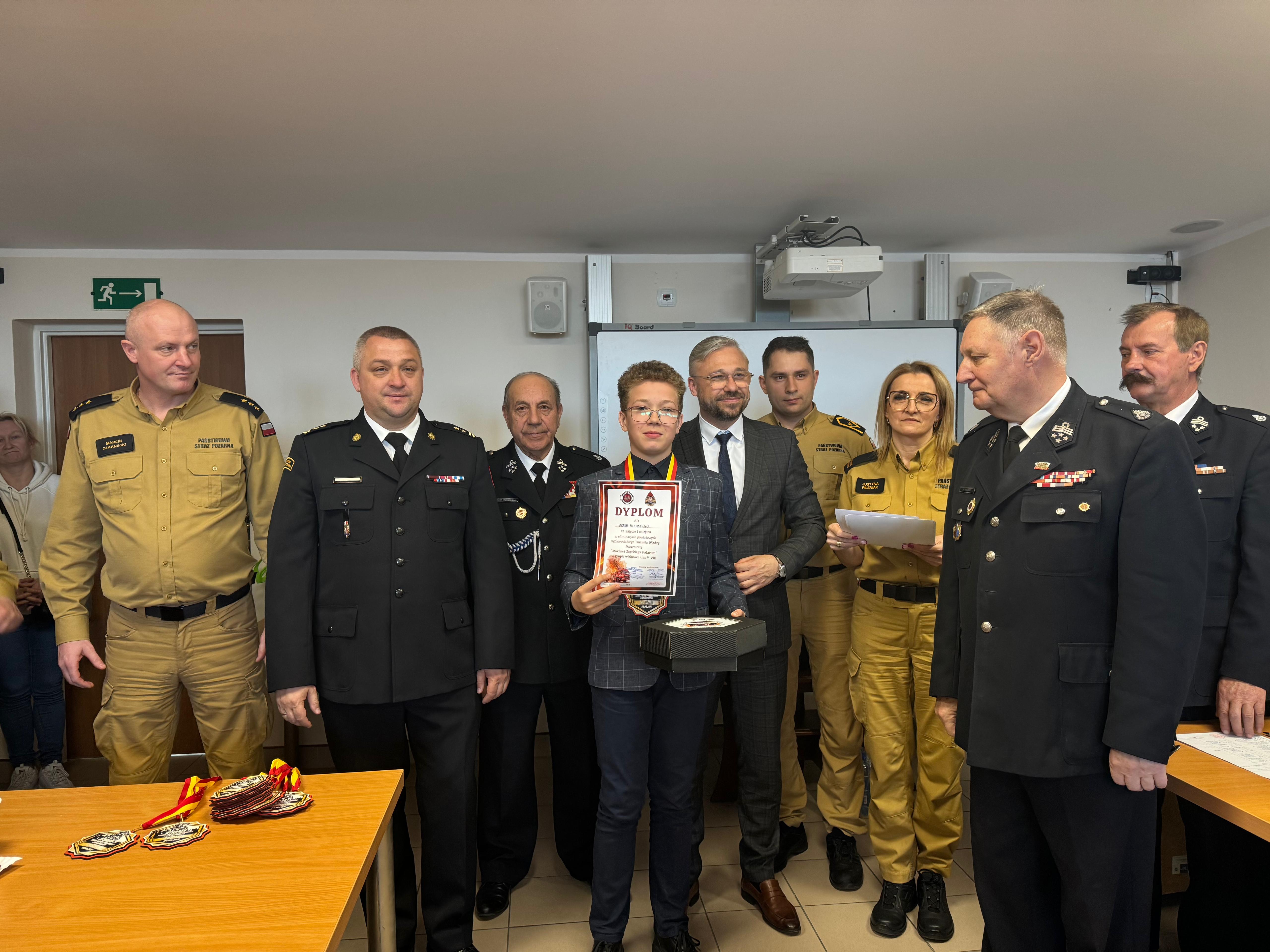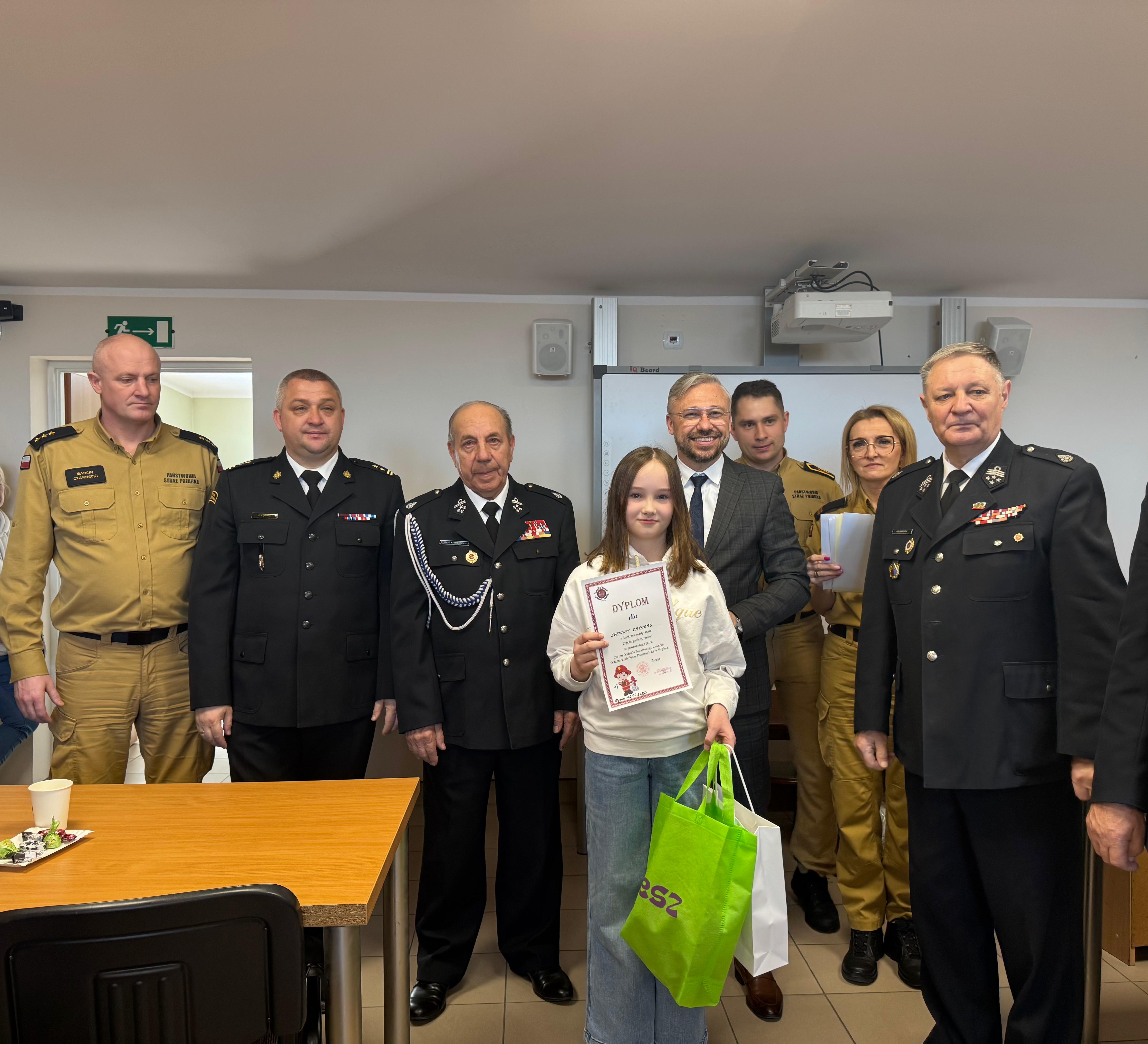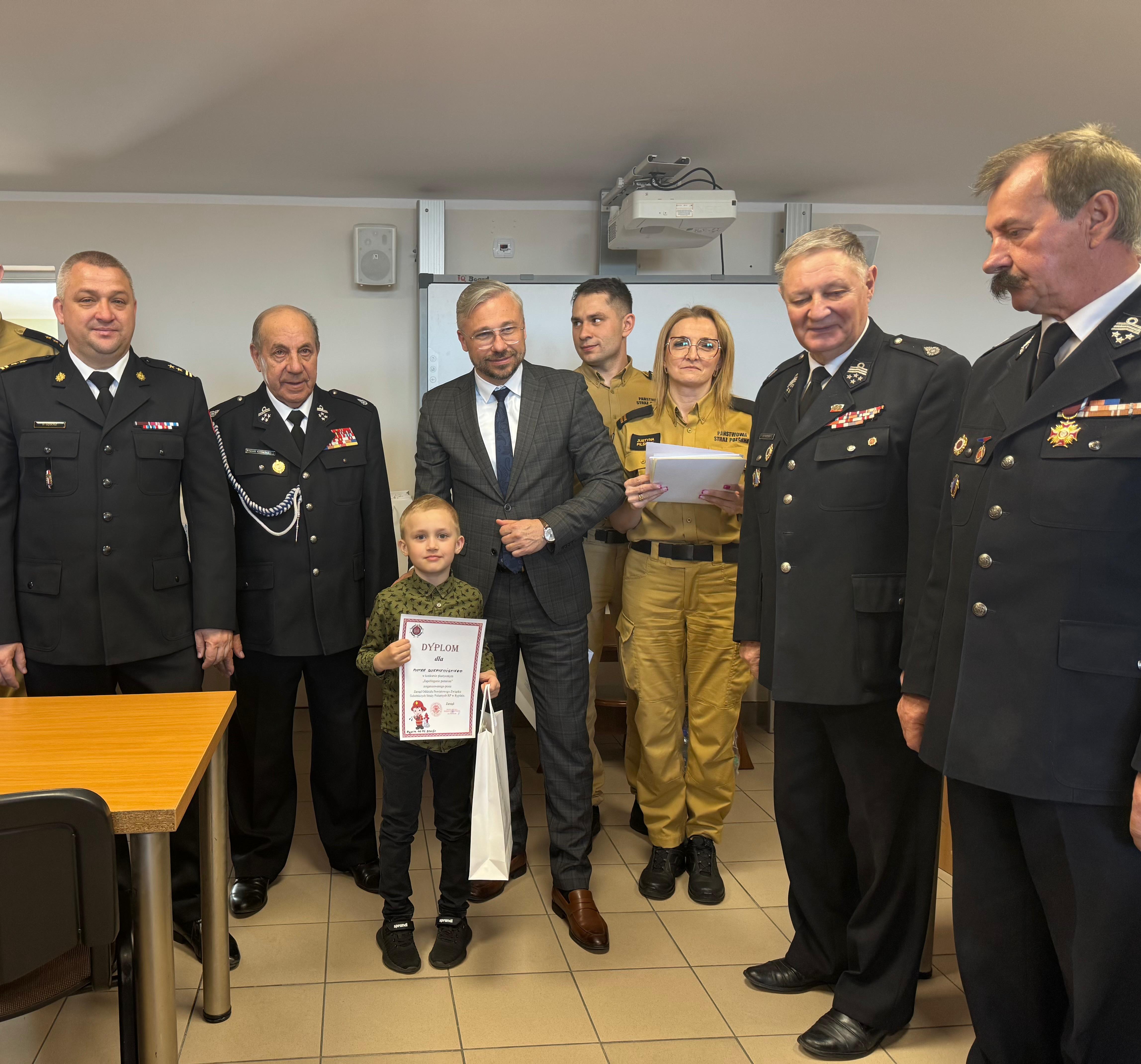Odbyło się również uroczyste wręczenie dyplomów wraz z nagrodami za konkurs plastyczny pt. ,,Młodzież zapobiega pożarom”. Nagrody zostały ufundowane przez Starostwo Powiatowe w Rypinie, Oddział Wojewódzki ZOSP RP Województwa Kujawsko-Pomorskiego, Zarząd Powiatowy ZOSP RP oraz Komendę Powiatową Państwowej Straży Pożarnej w Rypinie.