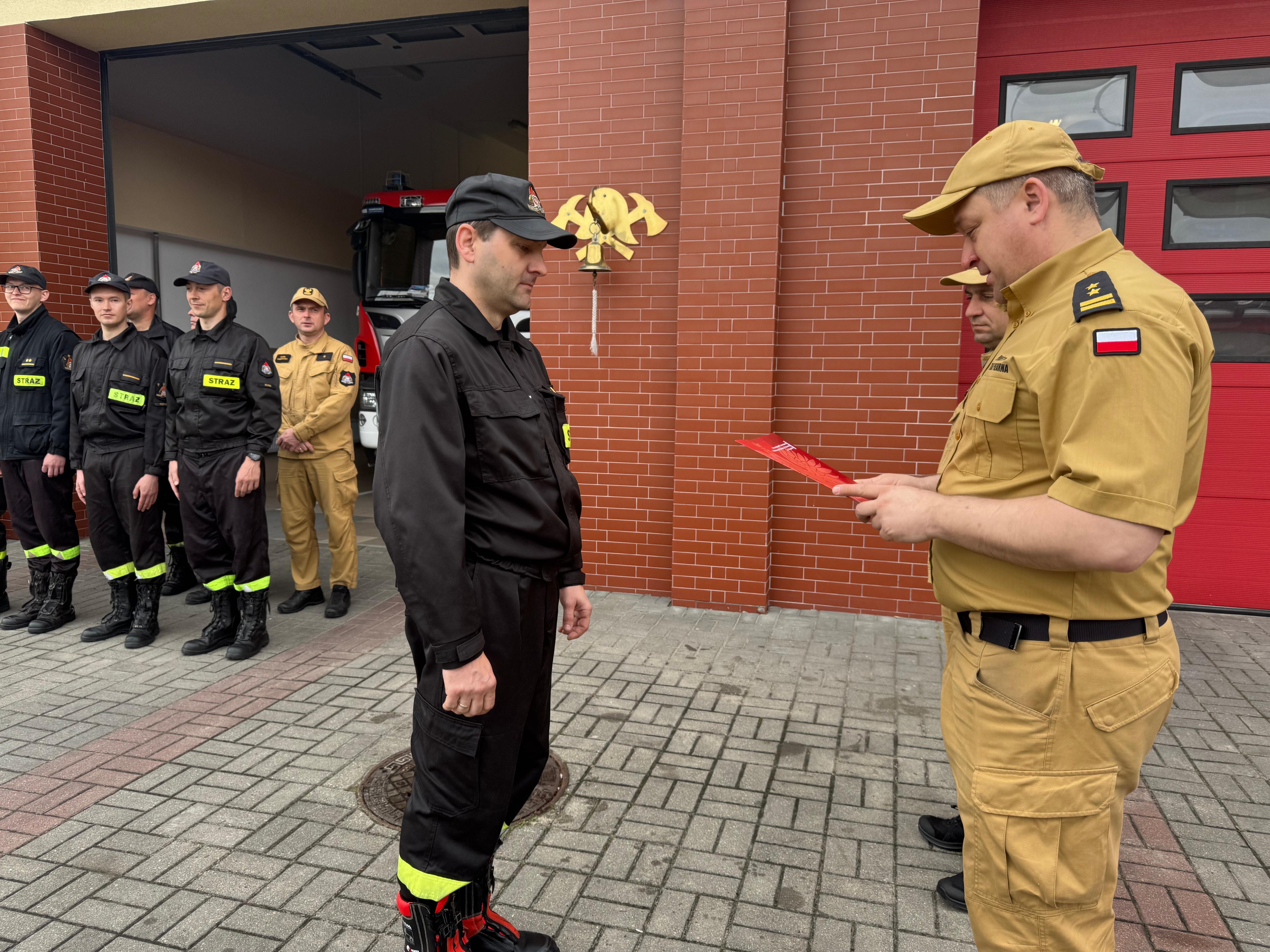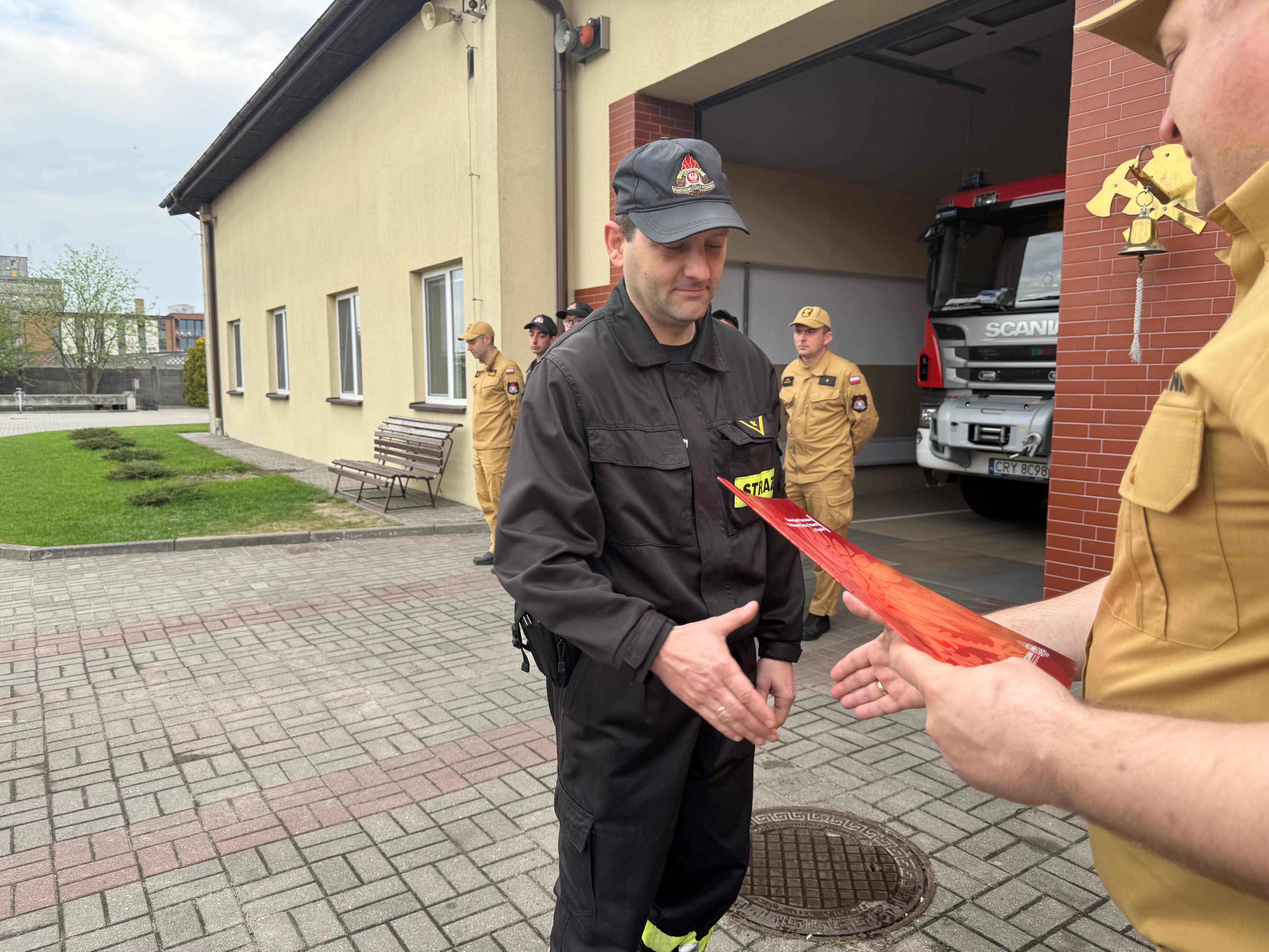 Podczas uroczystej zmiany służby Komendant Powiatowy PSP w Rypinie bryg. Dariusz Łęgosz, przekazał funkcjonariuszowi list gratulacyjny, wyrażając serdeczne życzenia oraz słowa uznania i podziękowania za wzorowe wykonywanie obowiązków służbowych oraz godne reprezentowanie Państwowej Straży Pożarnej.
