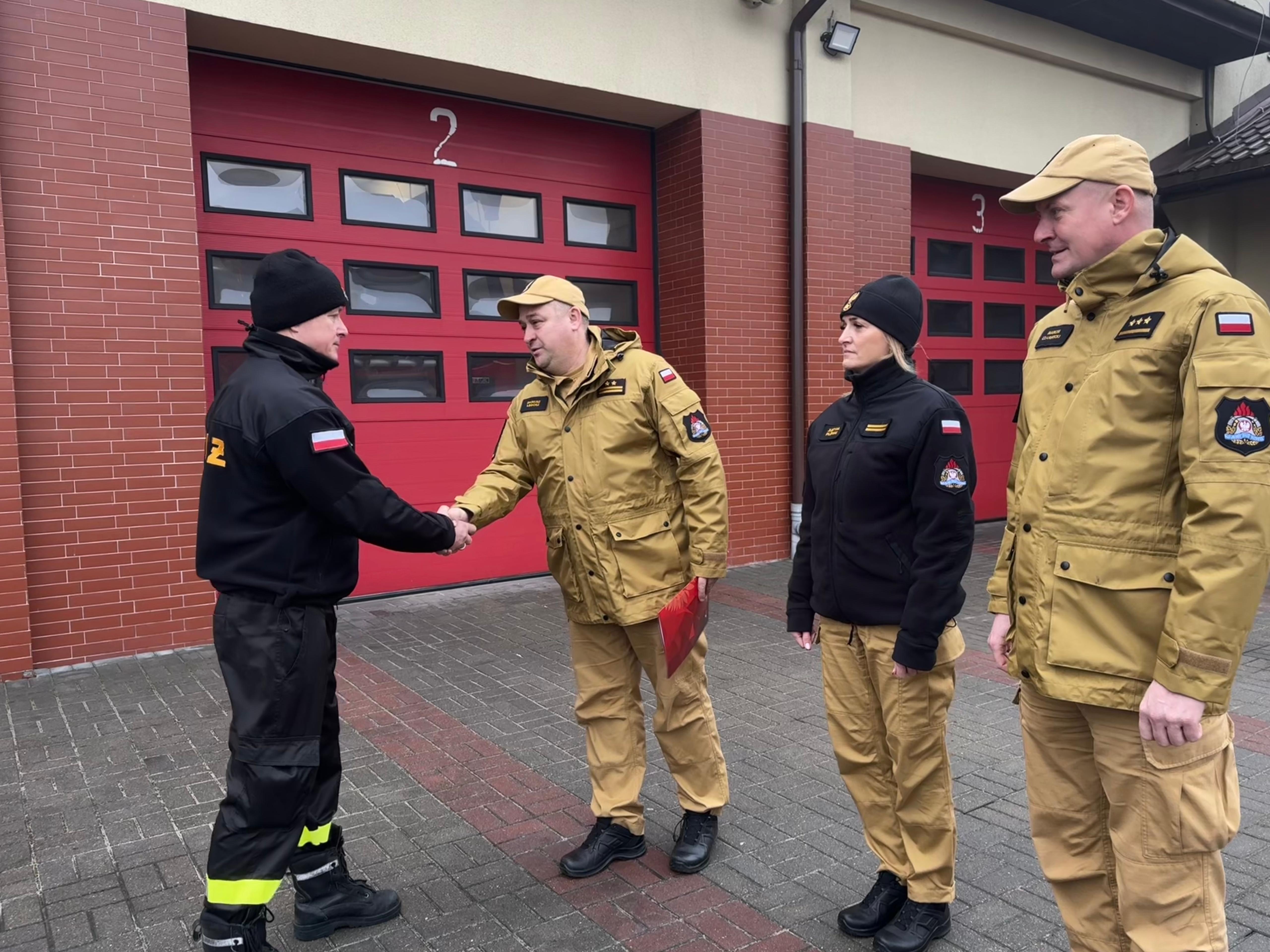 Podczas uroczystej zmiany służby Komendant Powiatowy PSP w Rypinie bryg. Dariusz Łęgosz, wraz z Zastępcą Komendanta Powiatowego kpt. Marcinem Czarneckim, przekazali funkcjonariuszowi list gratulacyjny, wyrażając serdeczne życzenia oraz słowa uznania i podziękowania za wzorowe wykonywanie obowiązków służbowych oraz godne reprezentowanie Państwowej Straży Pożarnej.