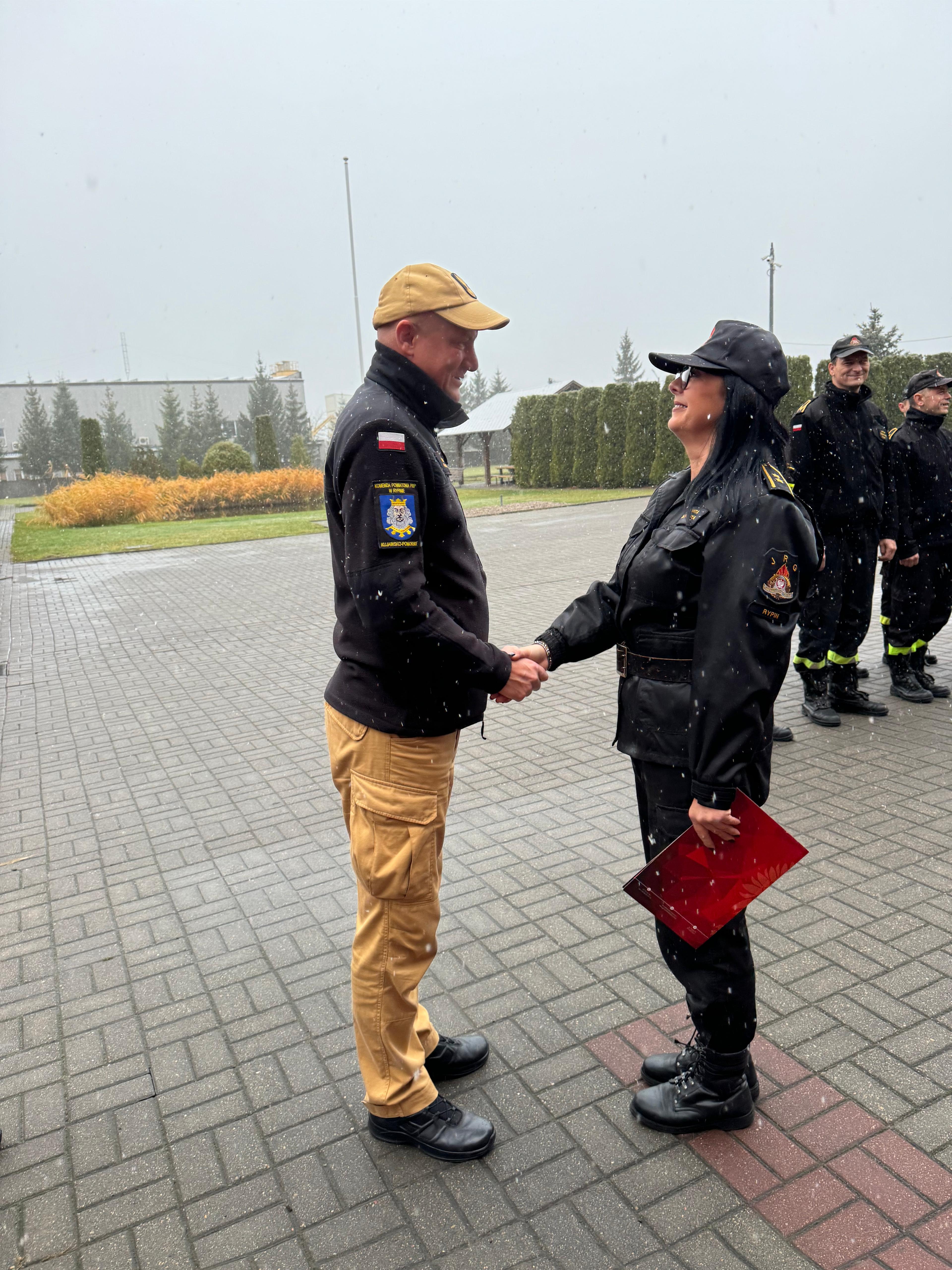 Podczas uroczystej zmiany służby Komendant Powiatowy PSP w Rypinie bryg. Dariusz Łęgosz, wraz z Zastępcą Komendanta Powiatowego kpt. Marcinem Czarneckim, przekazali funkcjonariuszce list gratulacyjny, wyrażając serdeczne życzenia oraz słowa uznania i podziękowania za wzorowe wykonywanie obowiązków służbowych oraz godne reprezentowanie Państwowej Straży Pożarnej.