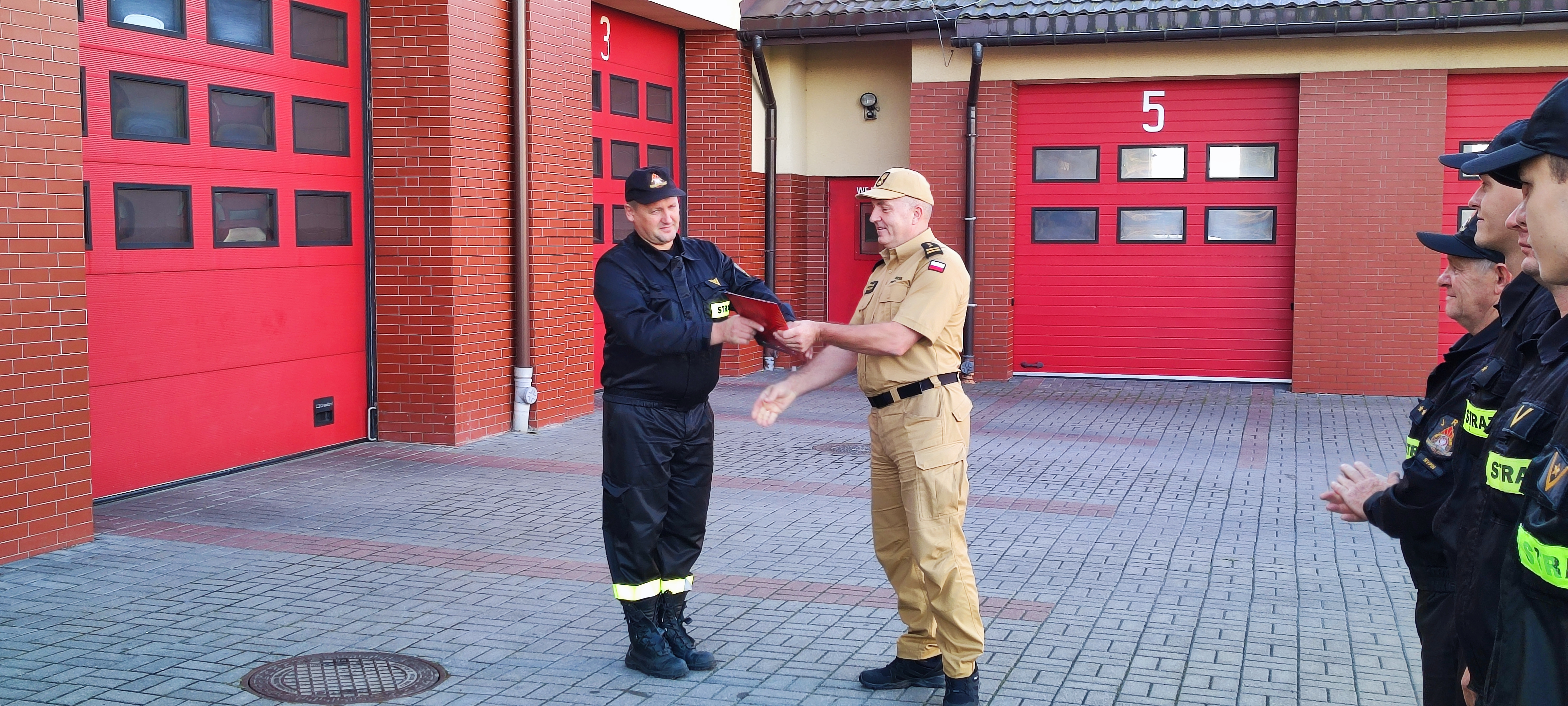 Z tej okazji Komendant Powiatowy Państwowej Straży Pożarnej w Rypinie st. bryg. Grzegorz Łydkowski, podczas zmiany służby, wręczył wyżej wymienionemu strażakowi list gratulacyjny oraz złożył serdeczne życzenia, słowa uznania i podziękowania za nienaganne wypełnianie obowiązków służbowych i godne reprezentowanie Państwowej Straży Pożarnej.
