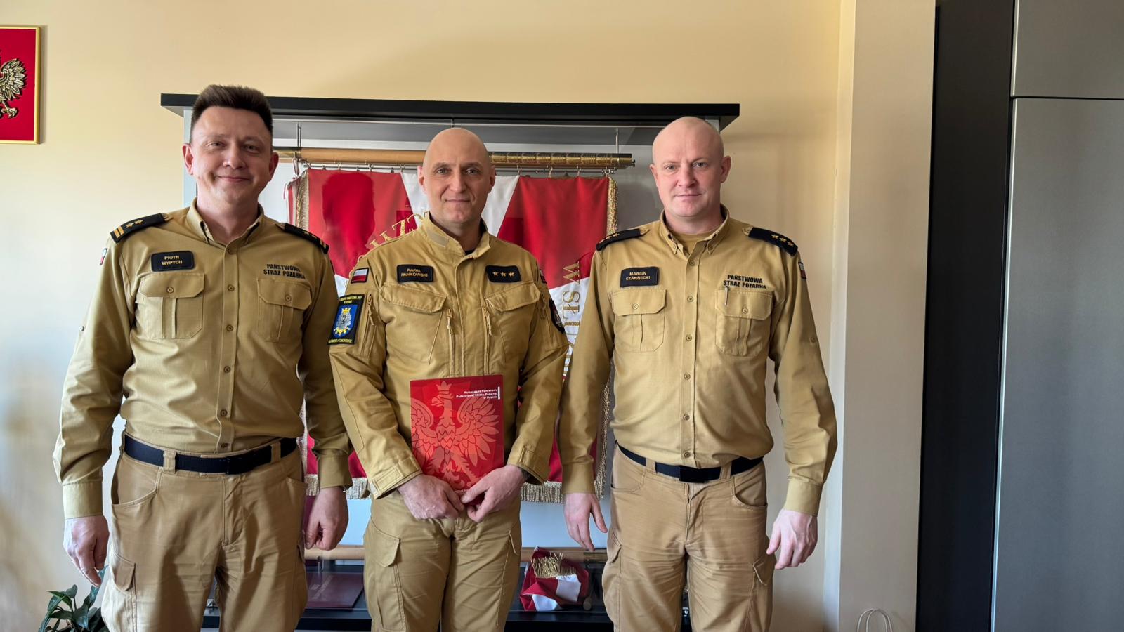 Komendant Powiatowy Państwowej Straży Pożarnej w Rypinie bryg. Piotr Wypych, wraz z Zastępcą Komendanta Powiatowego kpt. Marcinem Czarneckim, przekazali funkcjonariuszowi list gratulacyjny, wyrażając serdeczne życzenia oraz słowa uznania i podziękowania za wzorowe wykonywanie obowiązków służbowych oraz godne reprezentowanie Państwowej Straży Pożarnej.