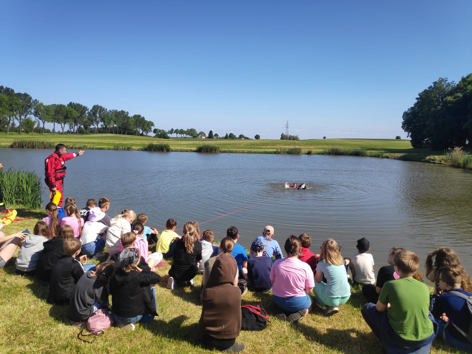 Głównym tematem spotkania było omówienie podstawowych zasad bezpiecznego wypoczynku nad wodą. Podczas zajęć strażacy przekazali dzieciom informacje w jaki sposób postępować w przypadku zauważenia osoby, która jest w wodzie i potrzebuje naszej pomocy. Omówiono sposoby wzywania służb ratunkowych oraz pokazano jak prawidłowo należy udzielać pierwszej pomocy. Następnie funkcjonariusze zaprezentowali posiadany sprzęt służący do ratownictwa wodnego i pokazali w jaki sposób prawidłowo go używać. Na koniec funkcjonariusze opowiedzieli krótko o swojej pracy i odpowiedzieli na liczne pytania zadawane przez dzieci.