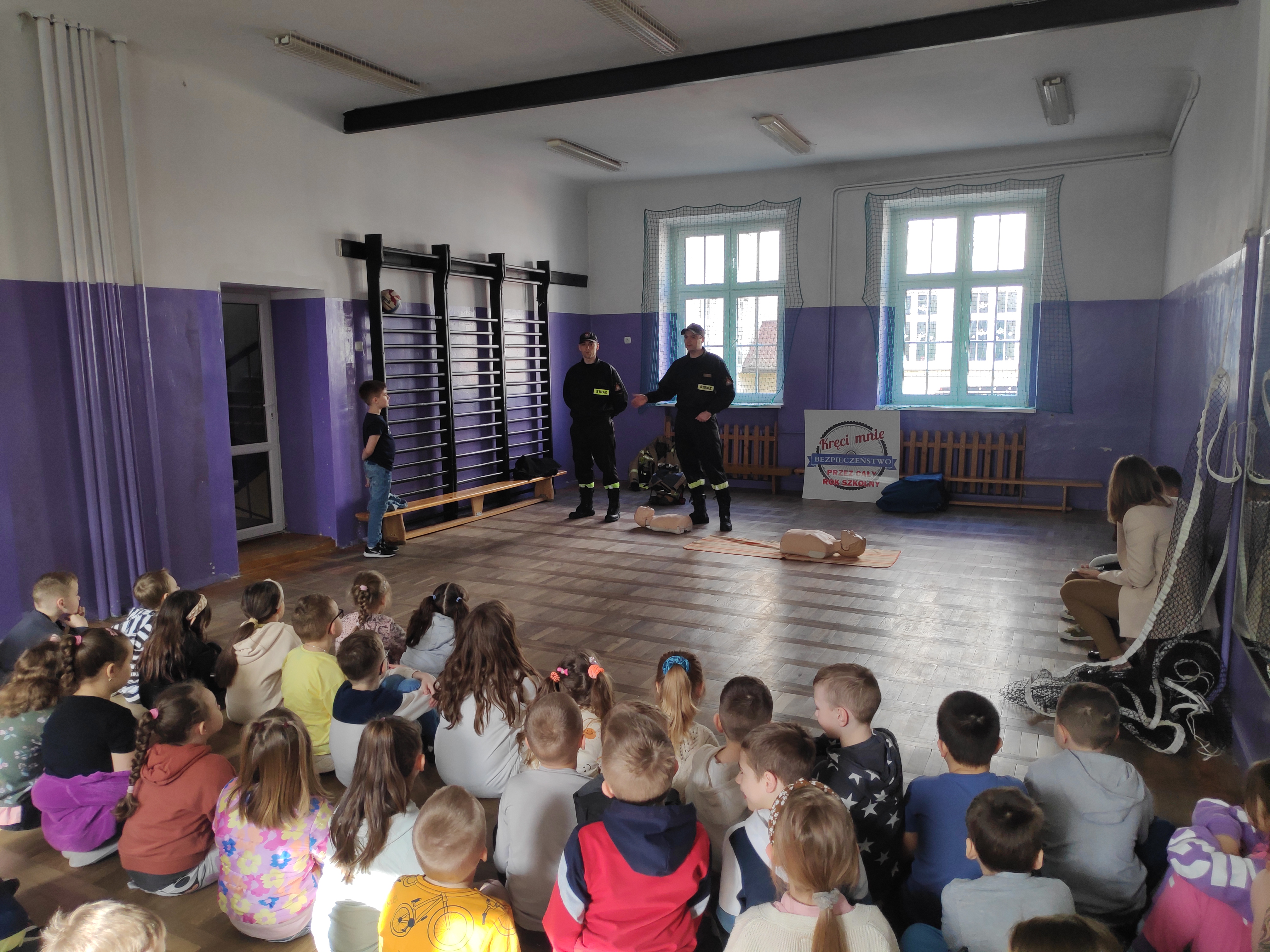 Spotkanie to miało na celu kształtowanie pozytywnych i bezpiecznych postaw oraz zapoznanie dzieci z podstawowymi czynnościami ratowniczymi.