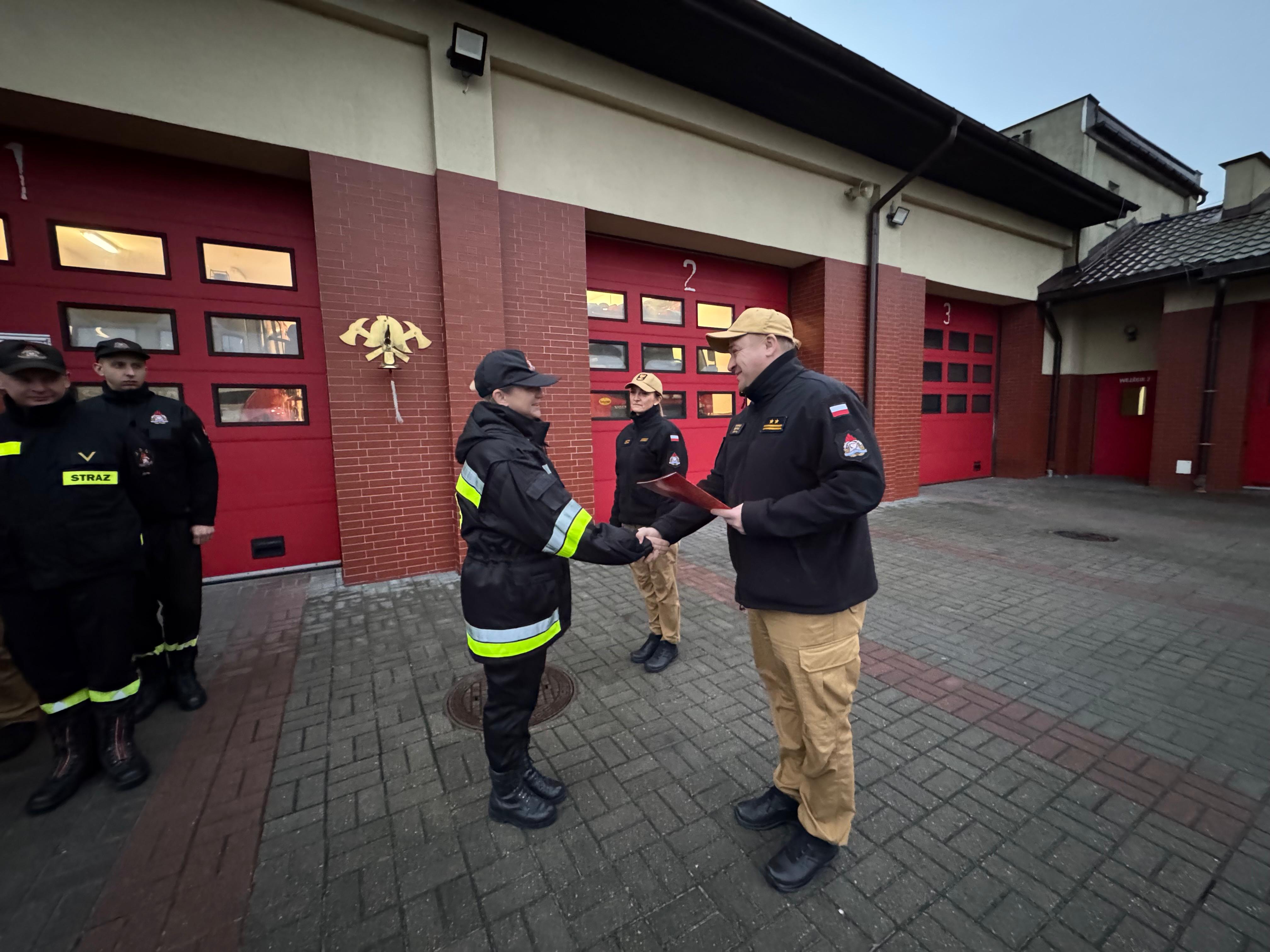 Podczas uroczystej zmiany służby Komendant Powiatowy PSP w Rypinie, bryg. Dariusz Łęgosz przekazał funkcjonariuszce list gratulacyjny, wyrażając serdeczne życzenia oraz słowa uznania i podziękowania za wzorowe wykonywanie obowiązków służbowych oraz godne reprezentowanie Państwowej Straży Pożarnej.