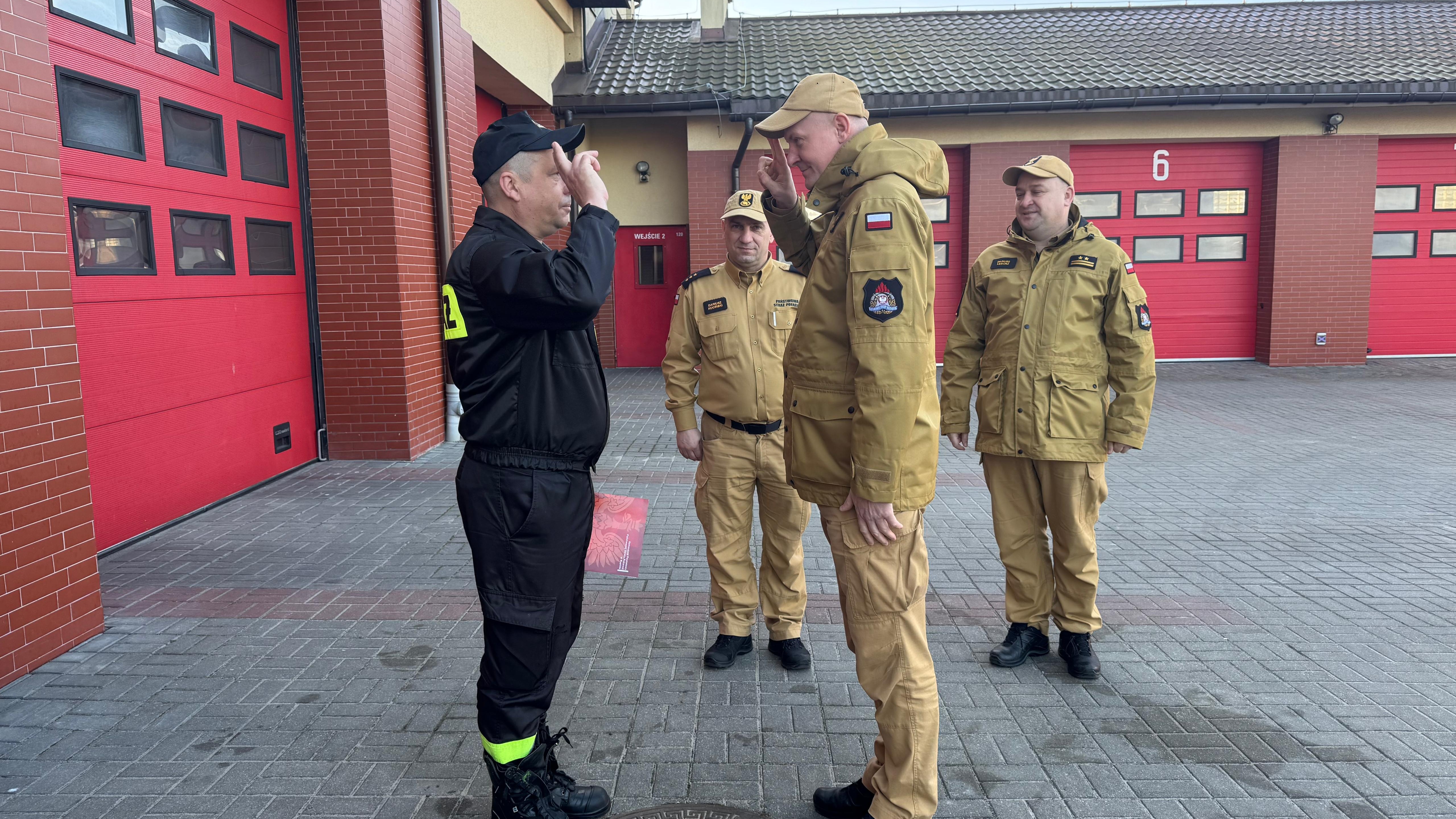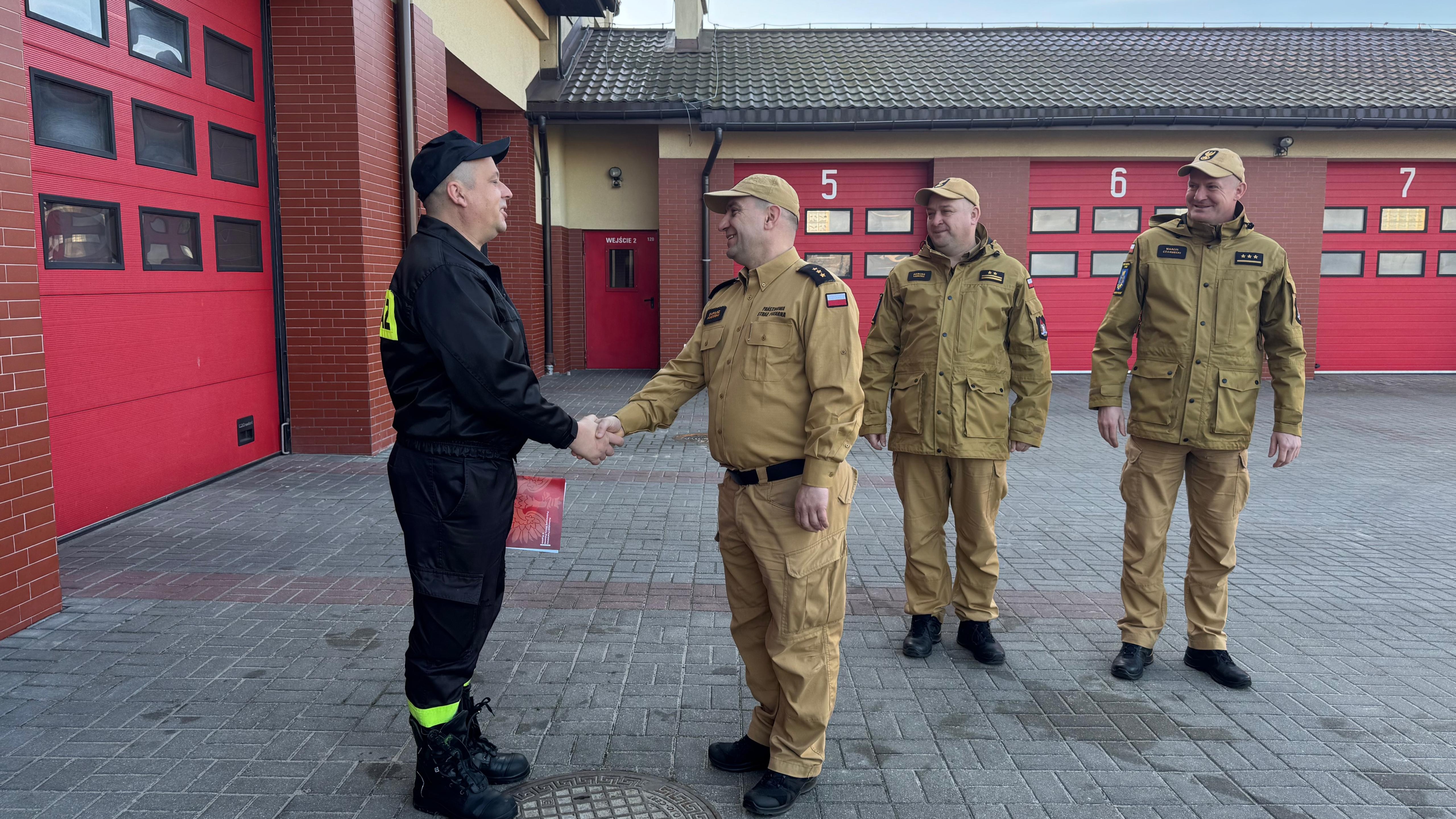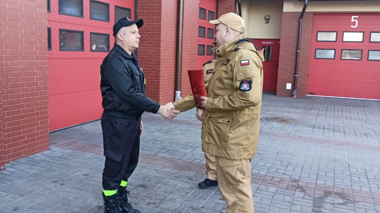 Podczas uroczystej zmiany służby Komendant Powiatowy PSP w Rypinie bryg. Dariusz Łęgosz, wraz z Zastępcą Komendanta Powiatowego kpt. Marcinem Czarneckim, przekazali funkcjonariuszowi list gratulacyjny, wyrażając serdeczne życzenia oraz słowa uznania i podziękowania za wzorowe wykonywanie obowiązków służbowych oraz godne reprezentowanie Państwowej Straży Pożarnej.