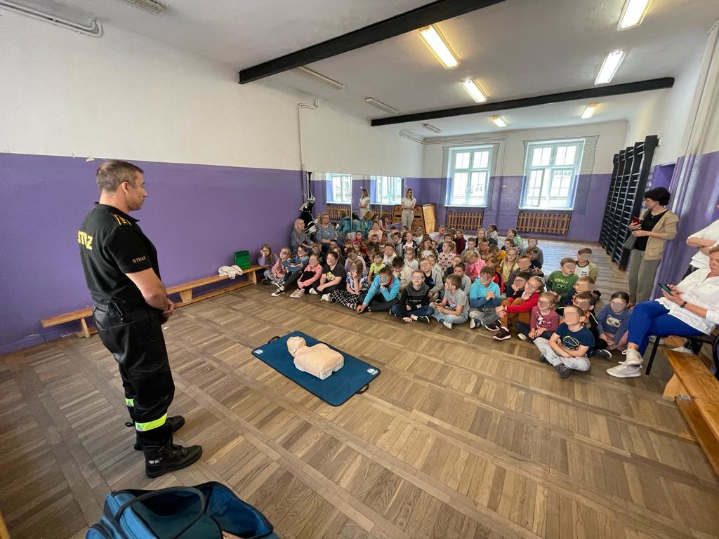23 maja 2022 roku strażacy z Komendy Powiatowej Państwowej Straży Pożarnej w Rypinie przeprowadzili zajęcia edukacyjne dla uczniów Szkoły Podstawowej Nr 1 w Rypinie. Podczas spotkania w ramach akcji ,,Kręci mnie bezpieczeństwo” omówiono dzieciom zasady udzielania pierwszej pomocy oraz w jaki sposób informować służby o zdarzeniach. Podczas spotkania funkcjonariusze opowiedzieli o zawodzie strażaka oraz odpowiedzieli na liczne pytania.