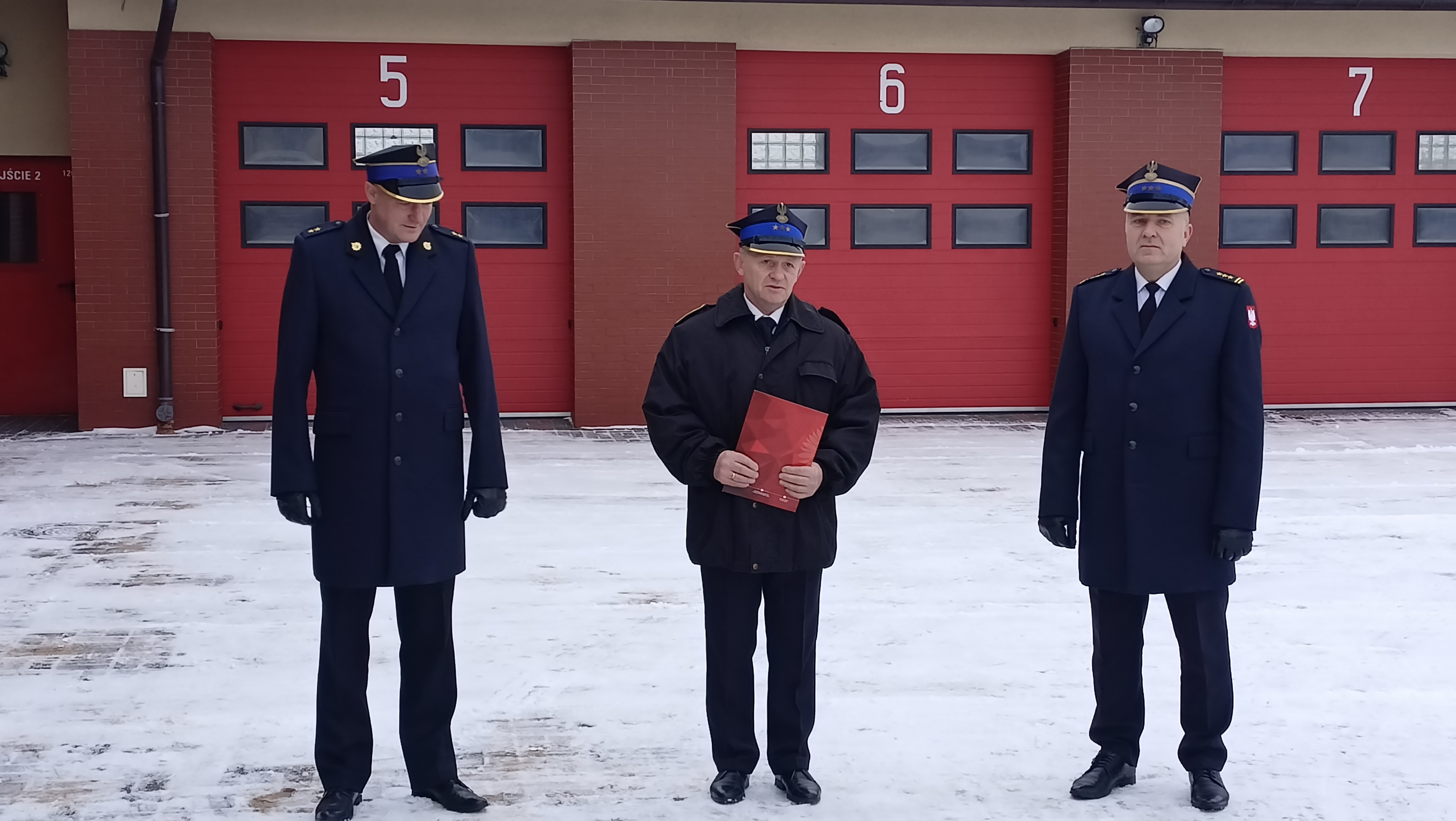 Z tej okazji podczas zmiany służby w Komendzie Powiatowej PSP w Rypinie Komendant Powiatowy PSP st. bryg. Grzegorz Łydkowski wraz z Zastępcą Komendanta Powiatowego mł. kpt. Marcinem Czarneckim oraz strażakami i pracownikami cywilnymi rypińskiej komendy podziękowali mu za wieloletnią służbę.