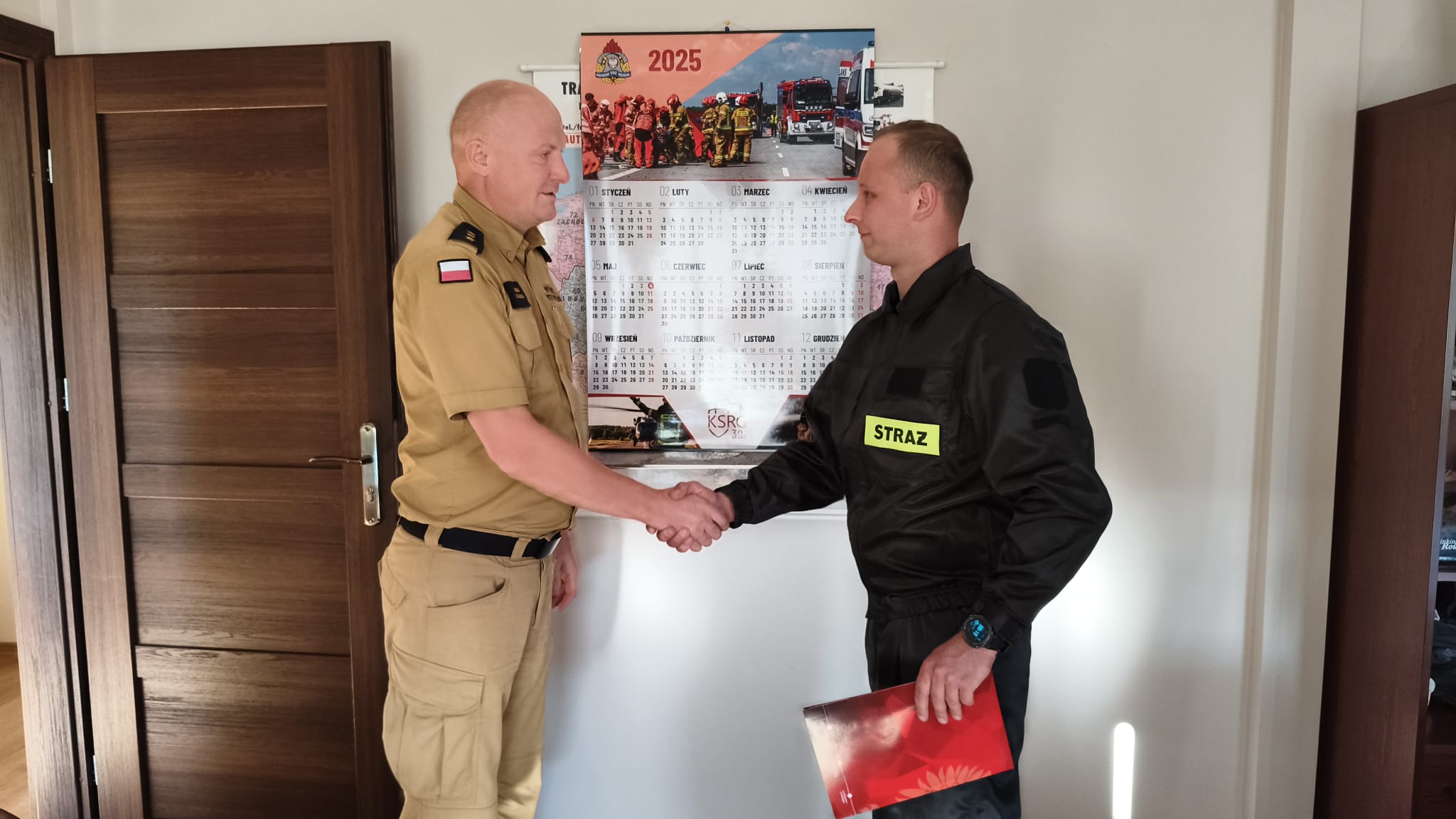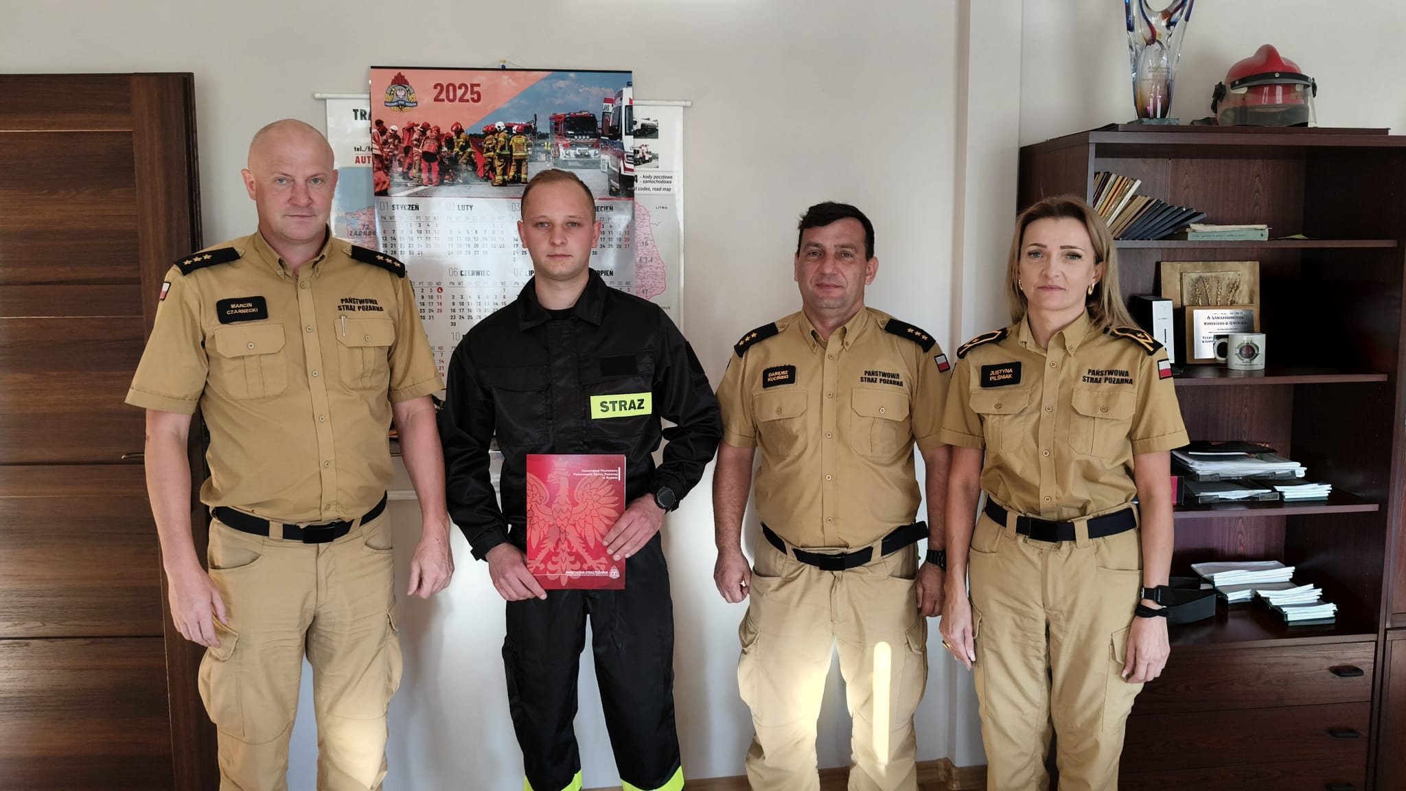 21 sierpnia 2025 r. w Komendzie Powiatowej Państwowej Straży Pożarnej w Rypinie, Zastępca Komendanta Powiatowego PSP kpt. Marcin Czarnecki wręczył akt mianowania na stanowisko stażysty w służbie przygotowawczej str. Dawidowi Bartnickiemu.