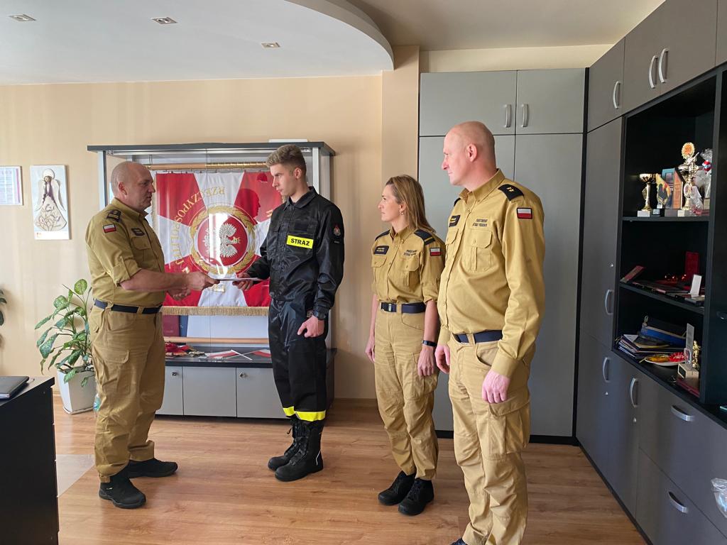 2 listopada 2023 r. Komendant Powiatowy Państwowej Straży Pożarnej w Rypinie st. bryg. Grzegorz Łydkowski wręczył akt mianowania na stanowisko stażysty w służbie przygotowawczej str. Pawłowi Stachewicz.
