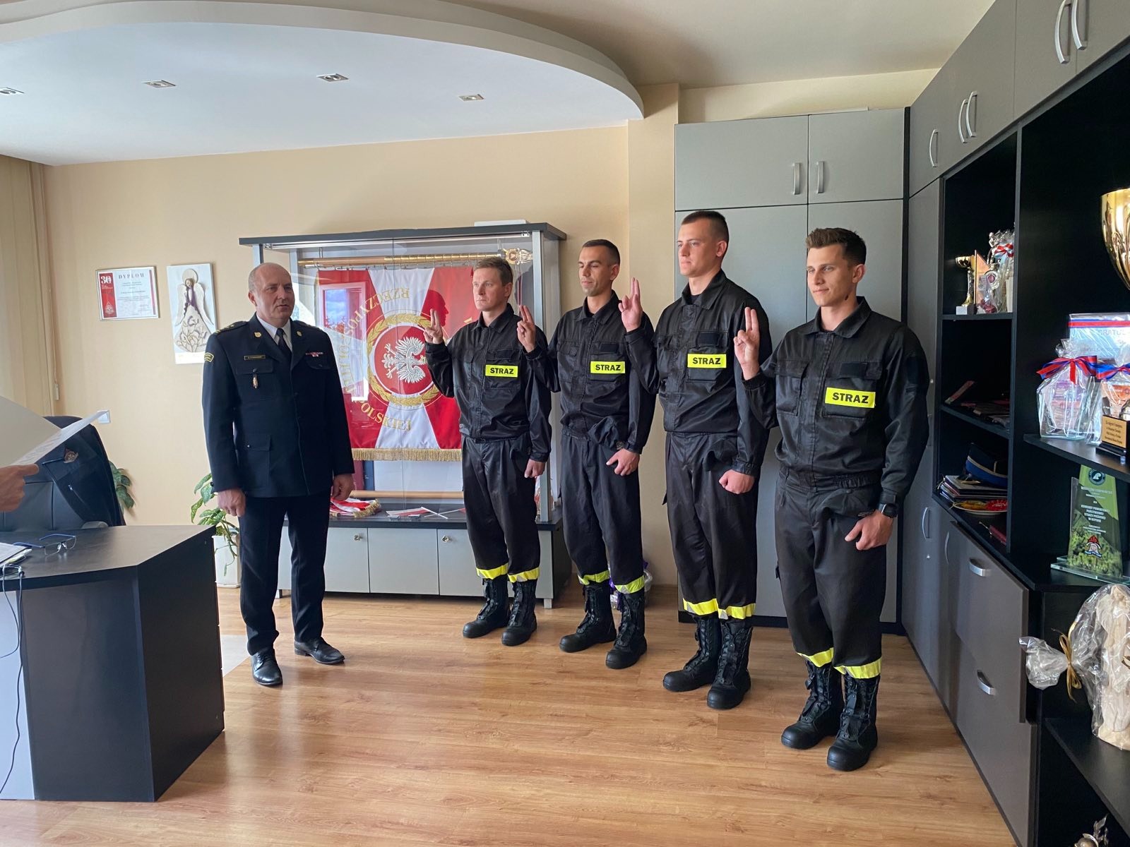 18 lipca 2023 r. w Komendzie Powiatowej Państwowej Straży Pożarnej w Rypinie odbyło się ślubowanie nowoprzyjętych strażaków. Strażak Paweł Budzanowski, strażak Marek Gorczewski, strażak Kamil Jaworski oraz strażak Piotr Orędowski złożyli rotę ślubowania w obecności st. bryg. Grzegorza Łydkowskiego Komendanta Powiatowego Państwowej Straży Pożarnej w Rypinie oraz bryg. Dariusza Łęgosz Dowódcy JRG PSP w Rypinie.