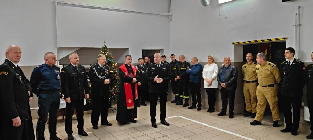 Po przywitaniu gości, Komendant Powiatowy Państwowej Straży Pożarnej w Rypinie st. bryg. Grzegorz Łydkowski złożył wszystkim świąteczne życzenia oraz podziękował swoim pracownikom za wzorowo pełnioną służbę.
