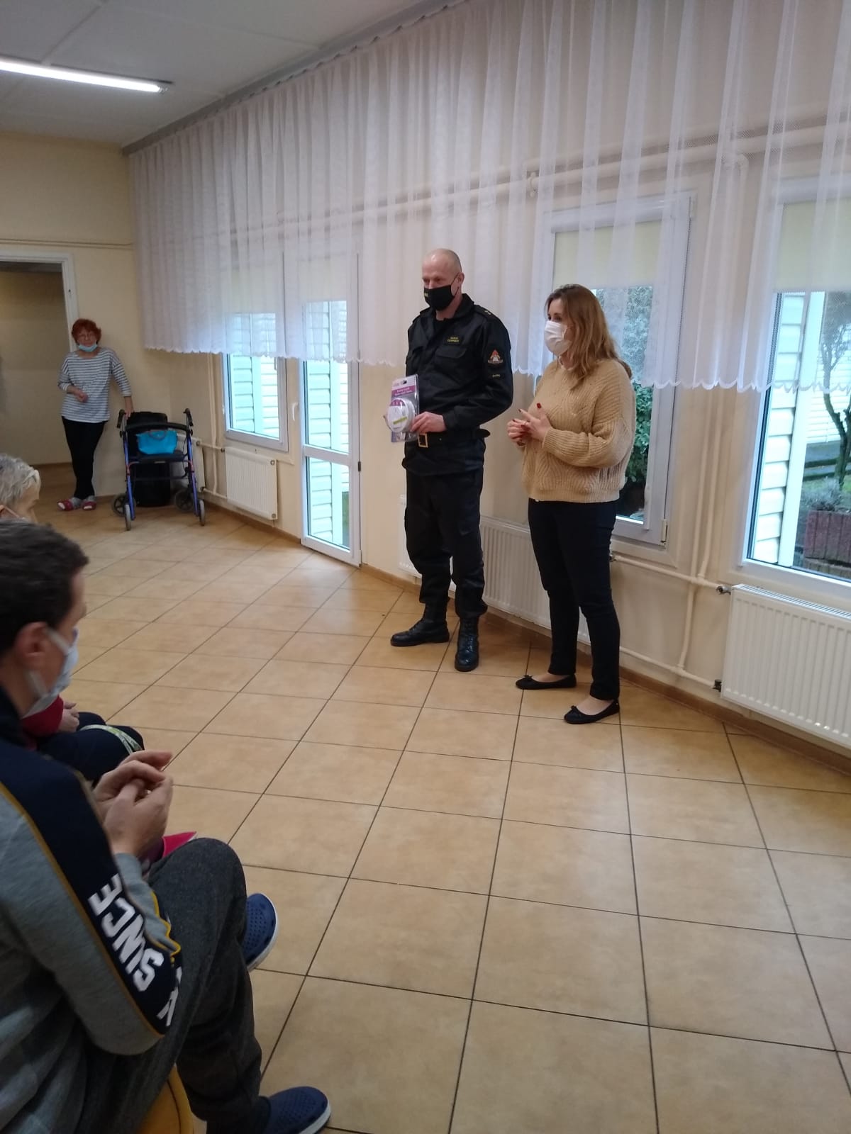 5 stycznia br. strażacy z rypińskiej komendy wzięli udział w spotkaniu z podopiecznymi Środowiskowego Domu Samopomocy w ramach ogólnopolskiej kampanii edukacyjno-informacyjnej pn. „Czujka na straży Twojego Bezpieczeństwa”. W trakcie spotkania omówiono szeroką tematykę dotyczącą zagrożenia pożarowego w mieszkaniach i domach jednorodzinnych, zagrożeń związanych z sezonem grzewczym oraz zatruciem tlenkiem węgla. W trakcie spotkania zwrócono uwagę na zagrożenia najczęściej występujące w warunkach domowych. Przybliżone zostały praktyczne aspekty działania czujników dymu, tlenku węgla, właściwej eksploatacji urządzeń grzewczych, przewodów wentylacyjnych i kominowych.
