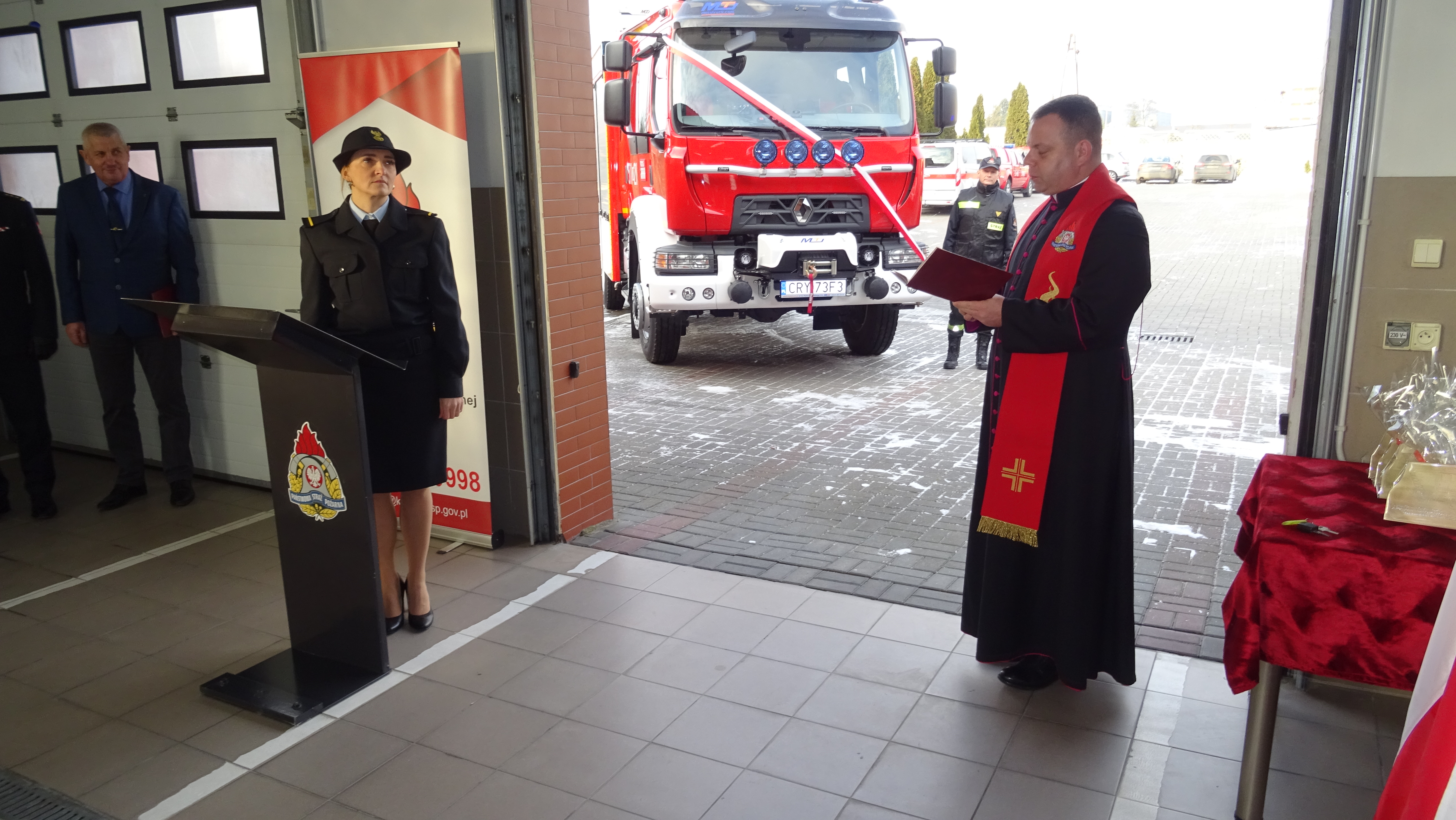 Następnie strażakom rypińskiej komendy przekazano nowy średni samochód ratowniczo-gaśniczy GBA 2,6/16 na podwoziu Renault, który poświęcił Kapelan strażaków województwa kujawsko-pomorskiego – ks. kanonik Mariusz Stasiak.