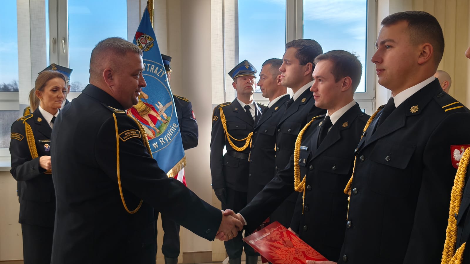 13 listopada 2025 roku w Komendzie Powiatowej Państwowej Straży Pożarnej w Rypinie odbyła się uroczysta zbiórka z okazji Narodowego Święta Niepodległości. W wydarzeniu uczestniczyli Komendant Powiatowy Państwowej Straży Pożarnej w Rypinie st. bryg. Dariusz Łęgosz wraz z Zastępcą Komendanta Powiatowego PSP kpt. Marcinem Czarneckim, a także funkcjonariusze i pracownicy cywilni Komendy. Podczas uroczystości wręczono awanse na wyższe stopnie służbowe, akty mianowania na wyższe stanowiska służbowe oraz decyzje o przyznanych wyróżnieniach.