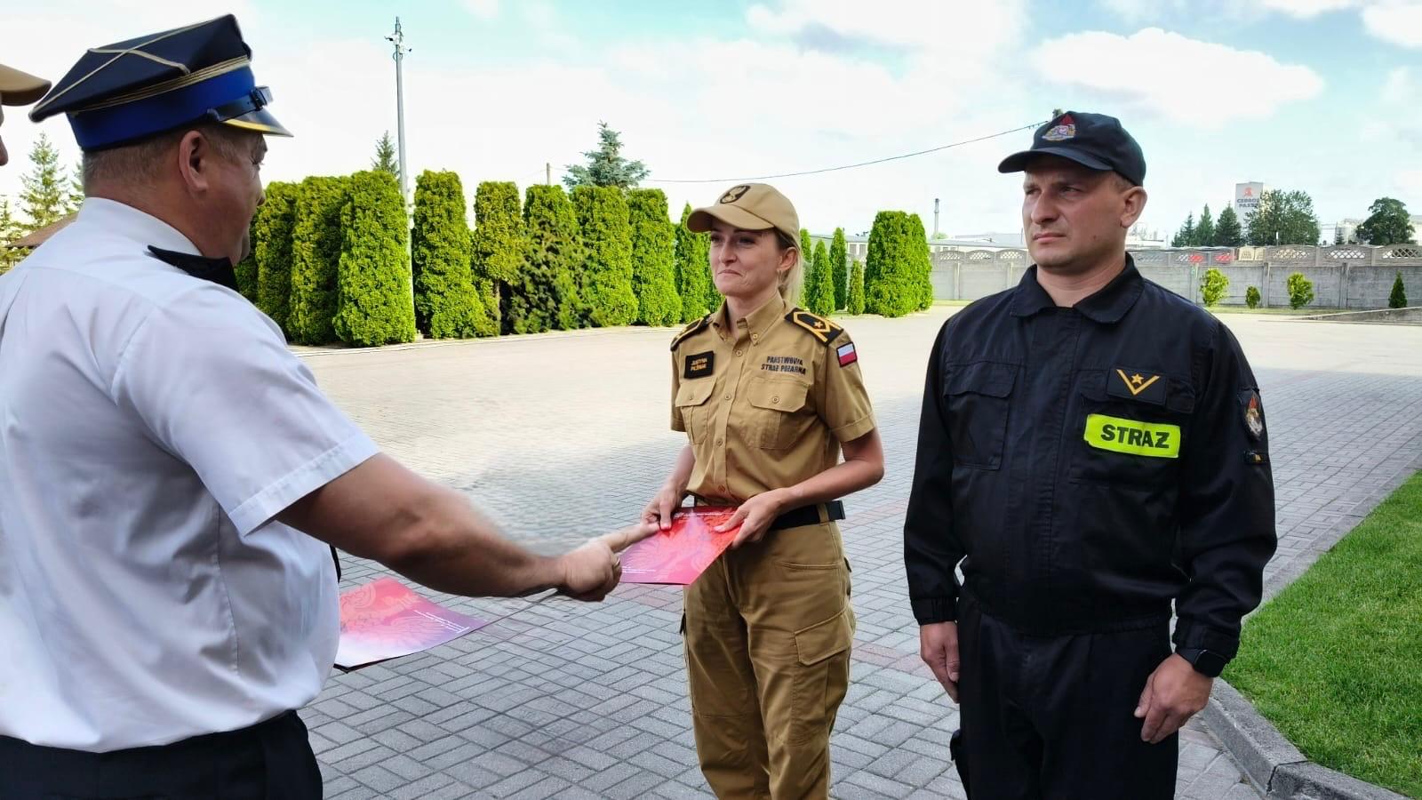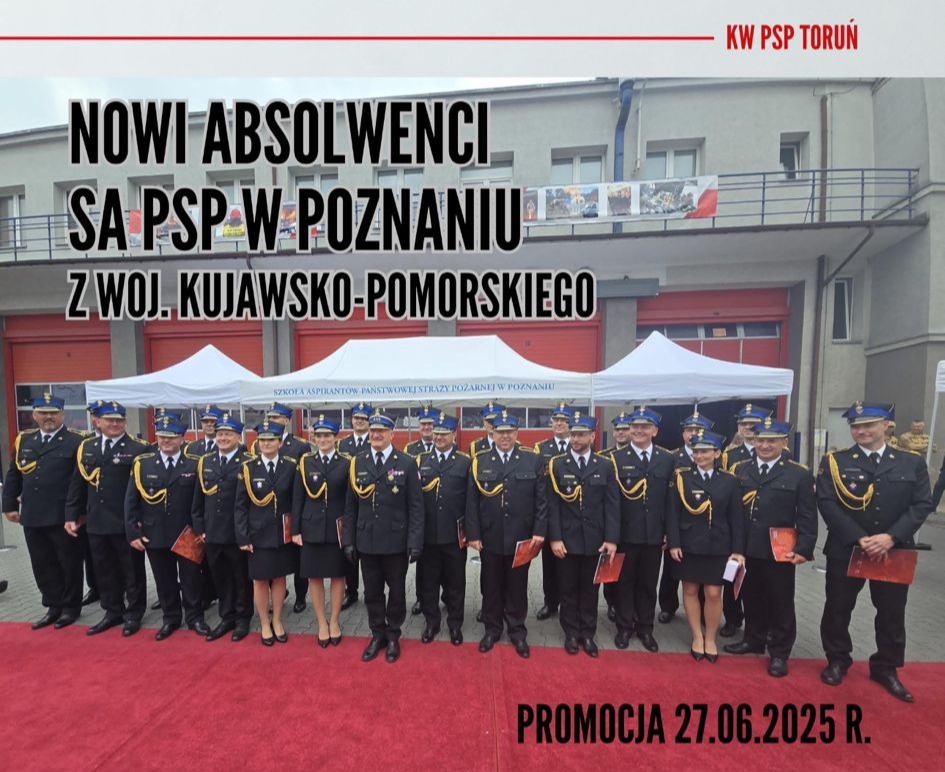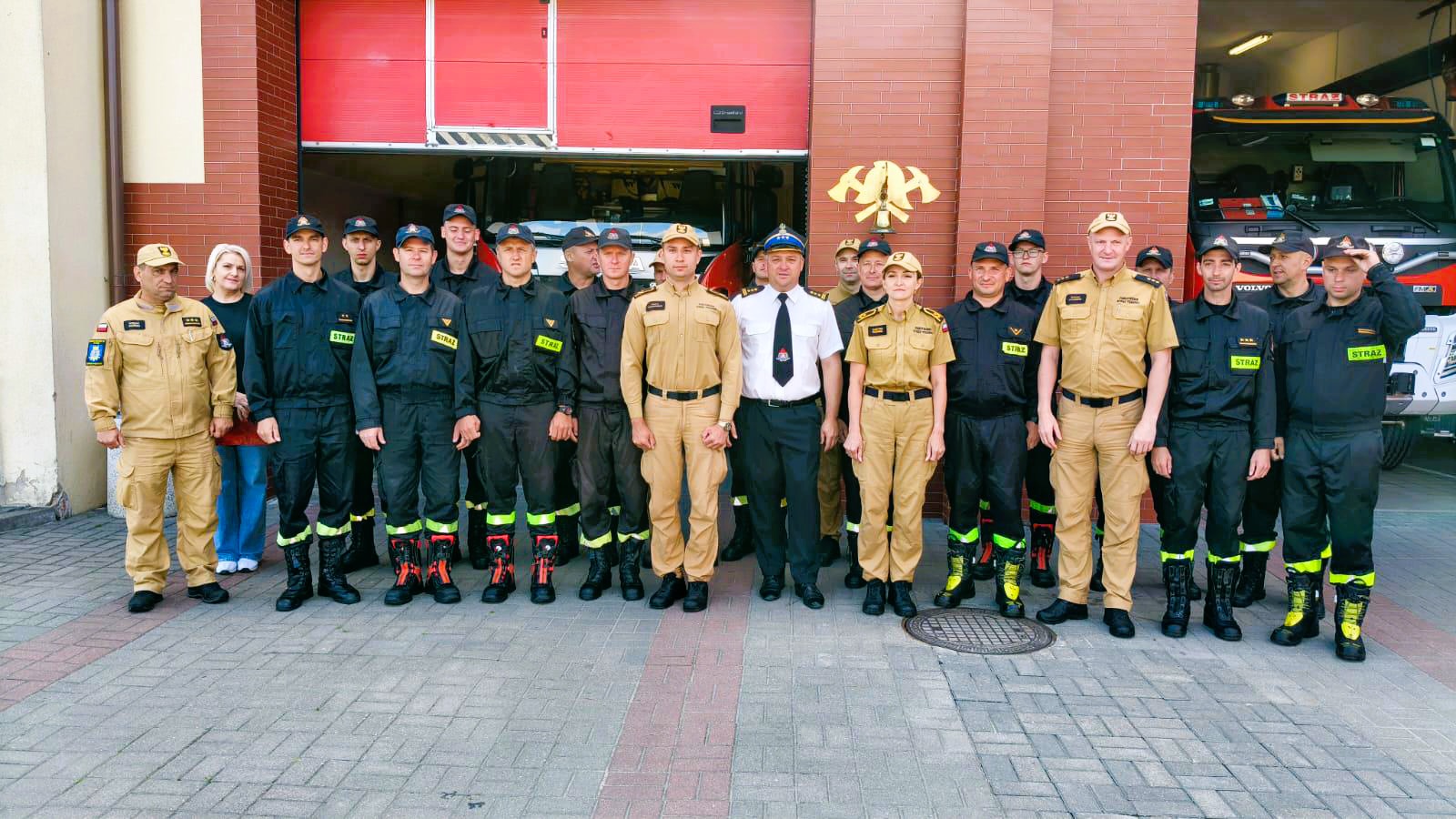Spotkanie było okazją do złożenia gratulacji dwóm funkcjonariuszom z okazji ukończenia Szkoły Aspirantów Państwowej Straży Pożarnej w Poznaniu. Podczas promocji absolwentów, która odbyła się 27 czerwca 2025 r., otrzymali oni stopień młodszego aspiranta.