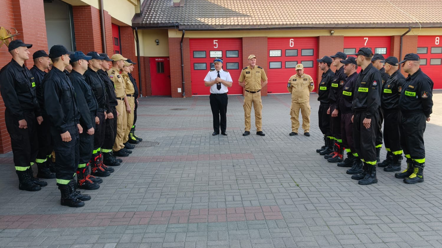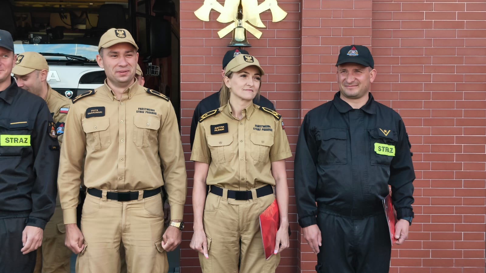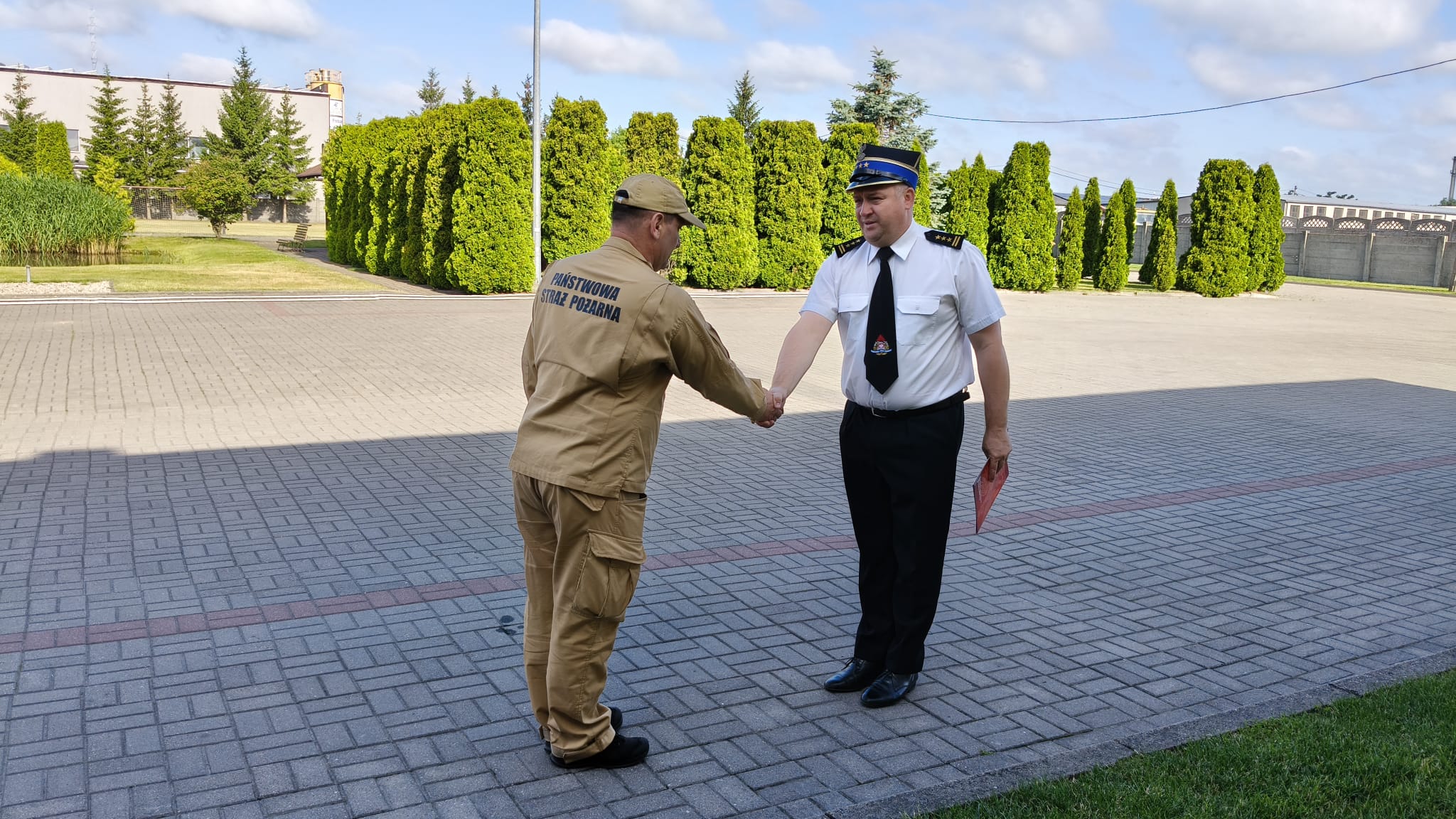 Spotkanie było okazją do złożenia gratulacji dwóm funkcjonariuszom z okazji ukończenia Szkoły Aspirantów Państwowej Straży Pożarnej w Poznaniu. Podczas promocji absolwentów, która odbyła się 27 czerwca 2025 r., otrzymali oni stopień młodszego aspiranta.