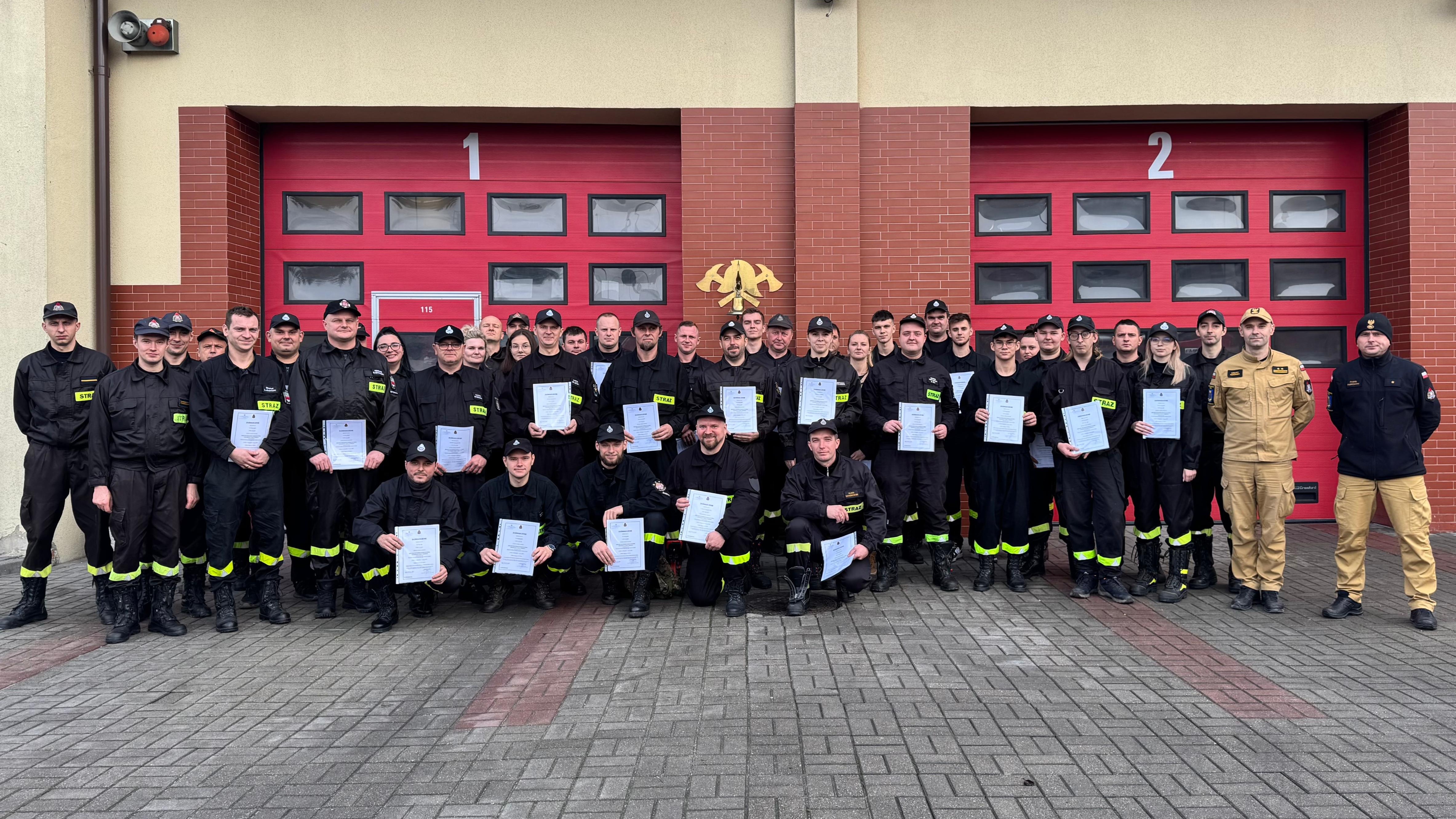 Jest nam niezmiernie miło poinformować, że 36 druhów ukończyło szkolenie z wynikiem pozytywnym, zdając zarówno egzamin teoretyczny, jak i praktyczny, w tym wymagający test w komorze dymowej.