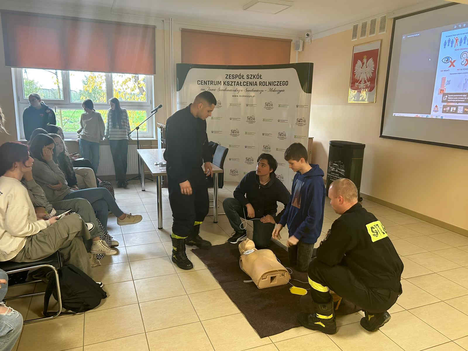 Od 13 do 15 listopada 2023 roku w Zespole Szkół Centrum Kształcenia Rolniczego w Sandomierzu, strażacy z Komendy Powiatowej Państwowej Straży Pożarnej w Sandomierzu w ramach programu edukacyjnego „Akademia Zdrowia i Bezpieczeństwa Pracy w Rolnictwie” przeprowadzili wykłady i pokazy sprzętu. Zajęcia były skierowane do uczniów szkoły rolniczej.