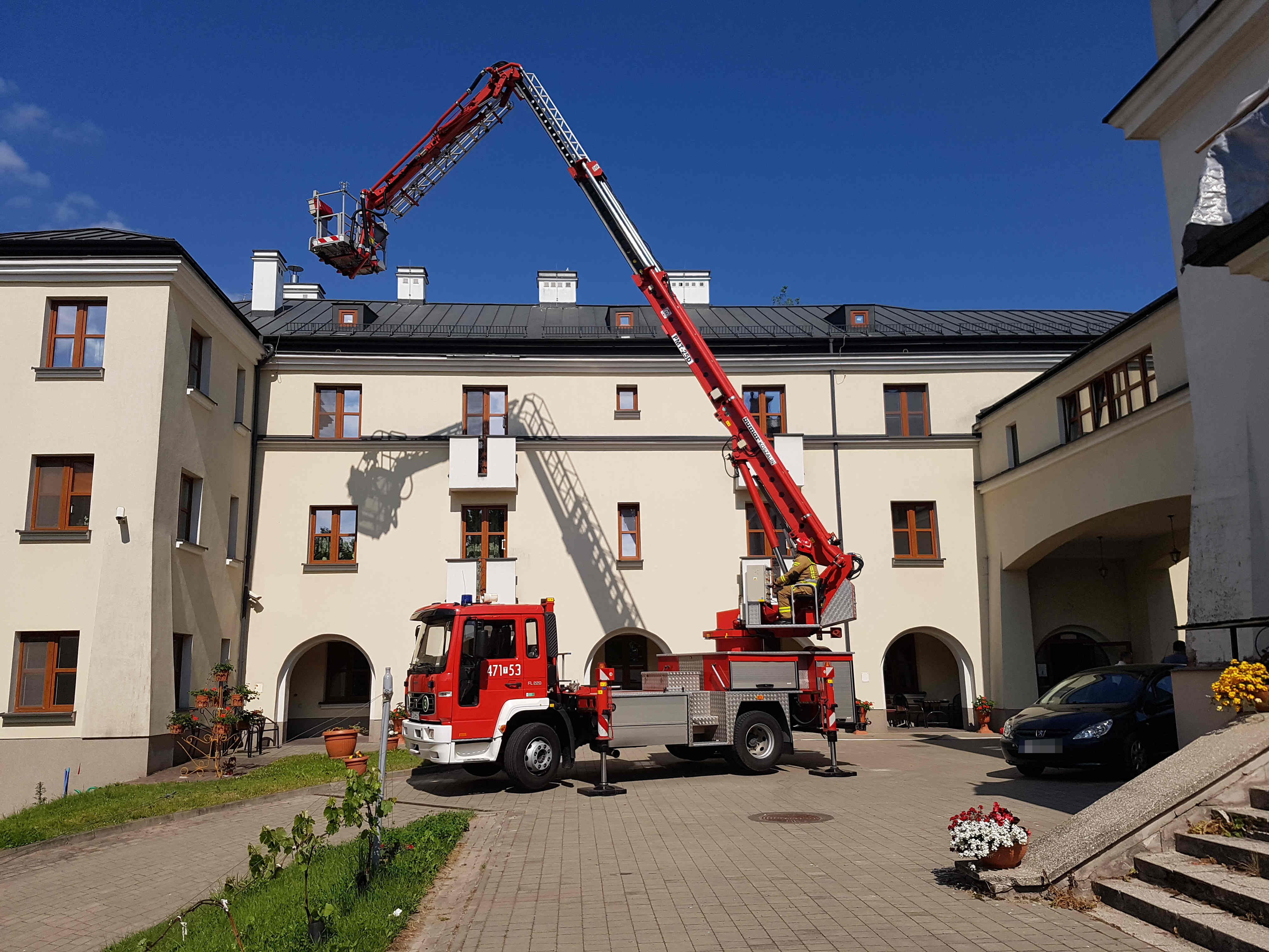 07-09 czerwca 2021 roku na obiekcie Domu Księży Emerytów w Sandomierzu odbyły się ćwiczenia w ramach doskonalenia zawodowego dla strażaków z Jednostki Ratowniczo - Gaśniczej PSP