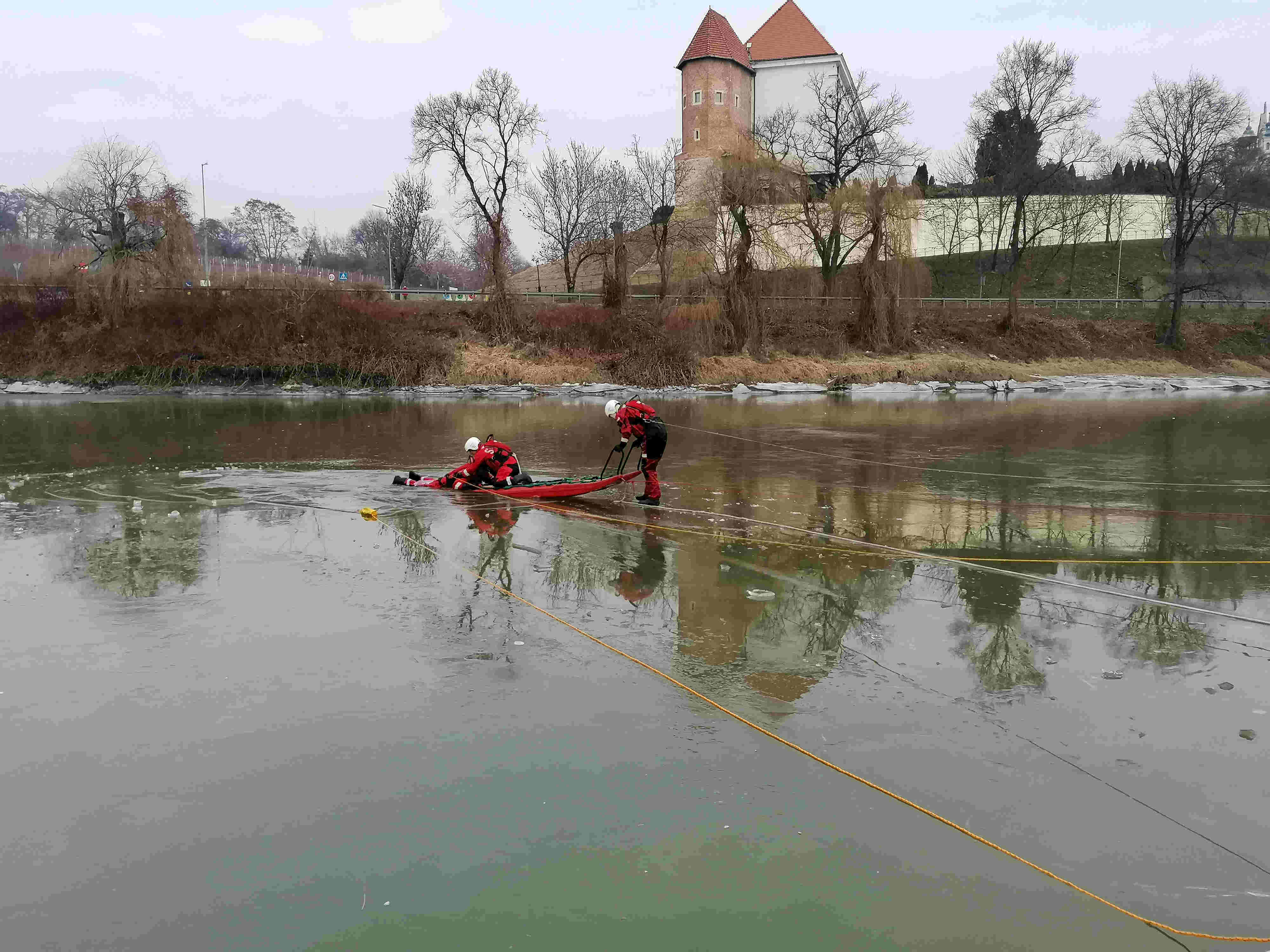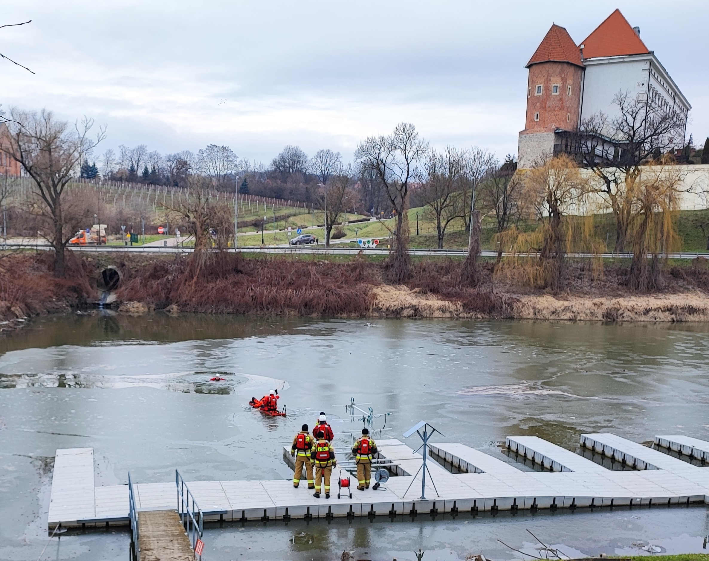 Ćwiczenia sandomierskich strażaków na zamarzniętych akwenach wodnych