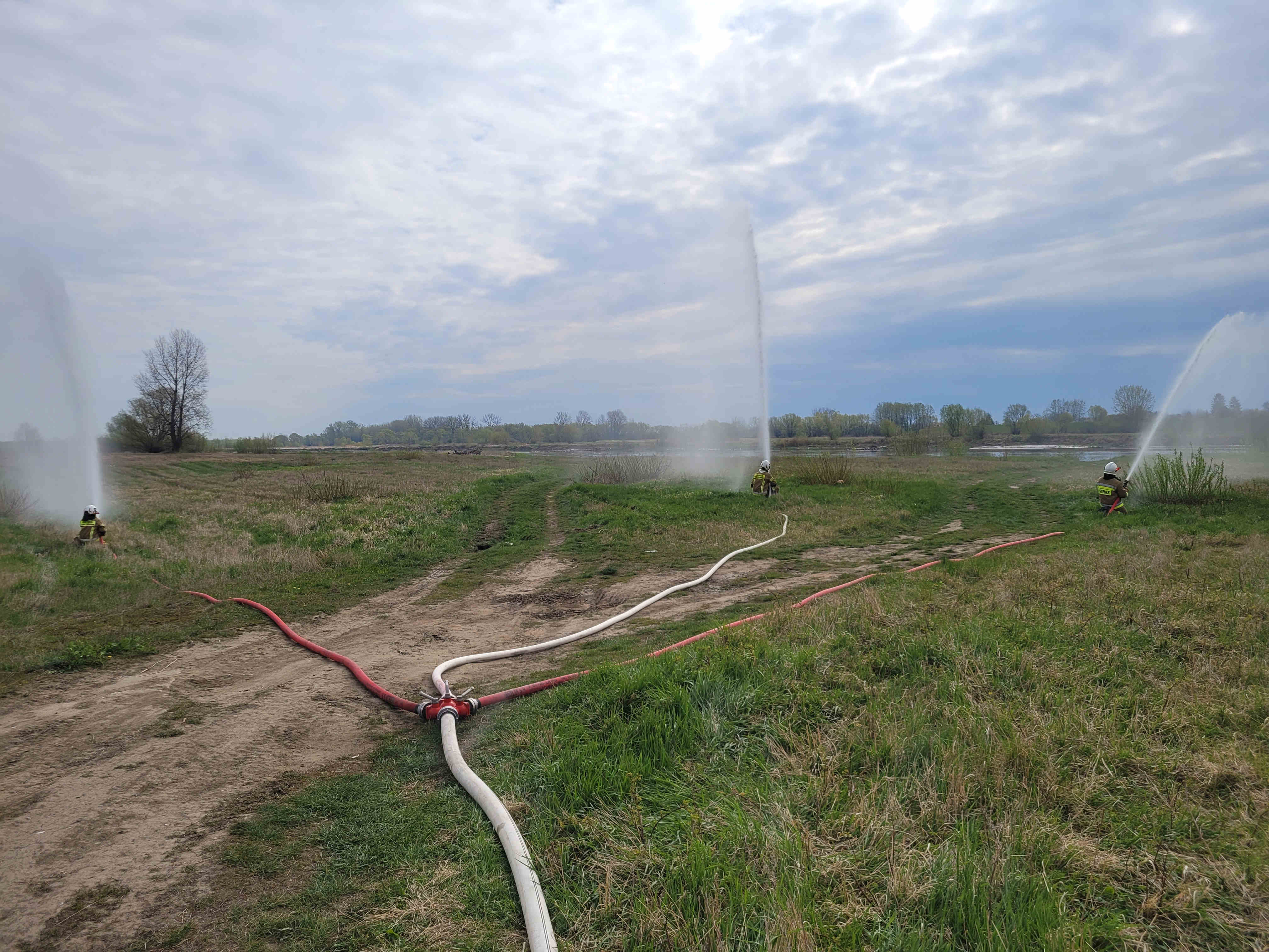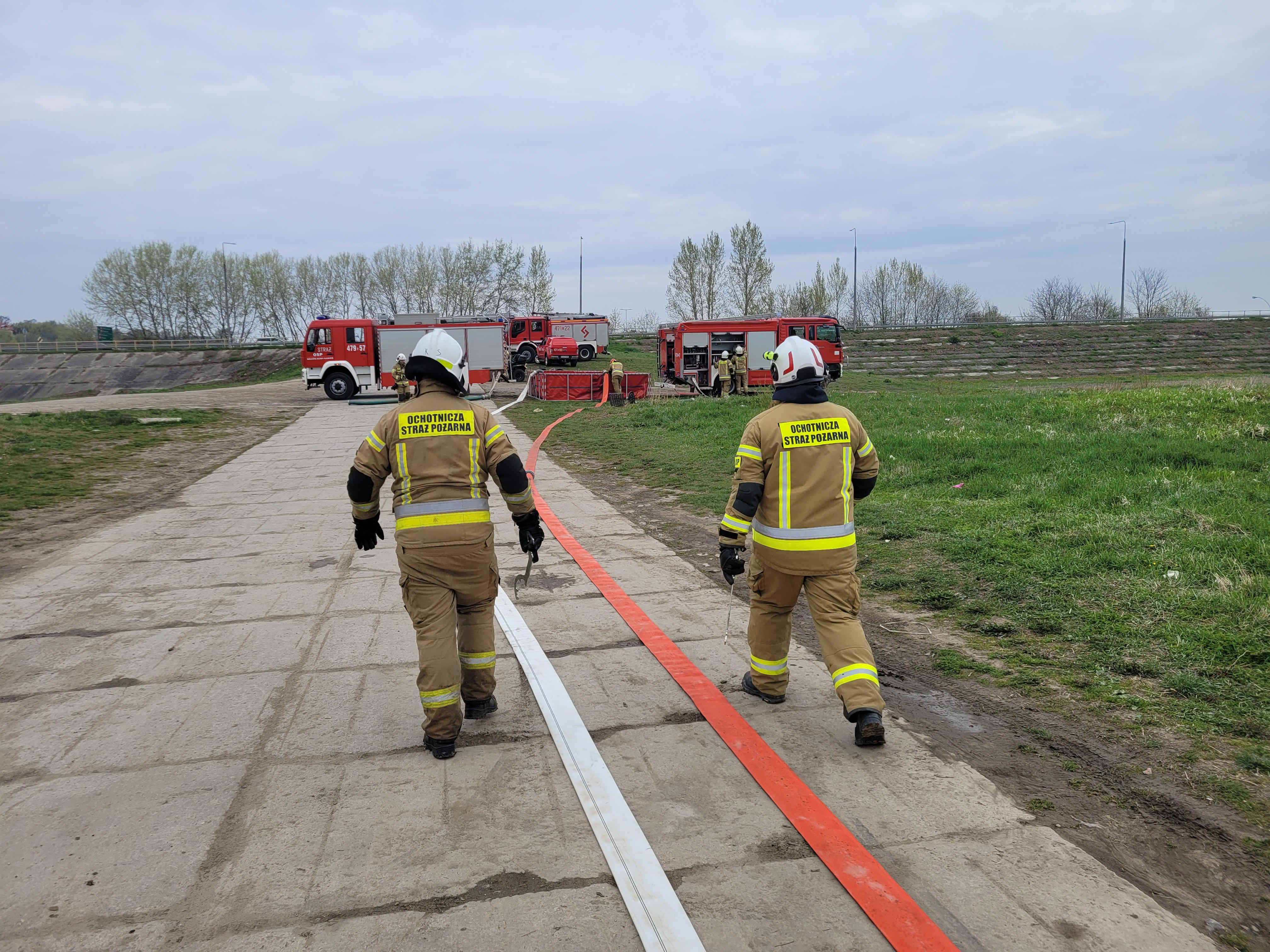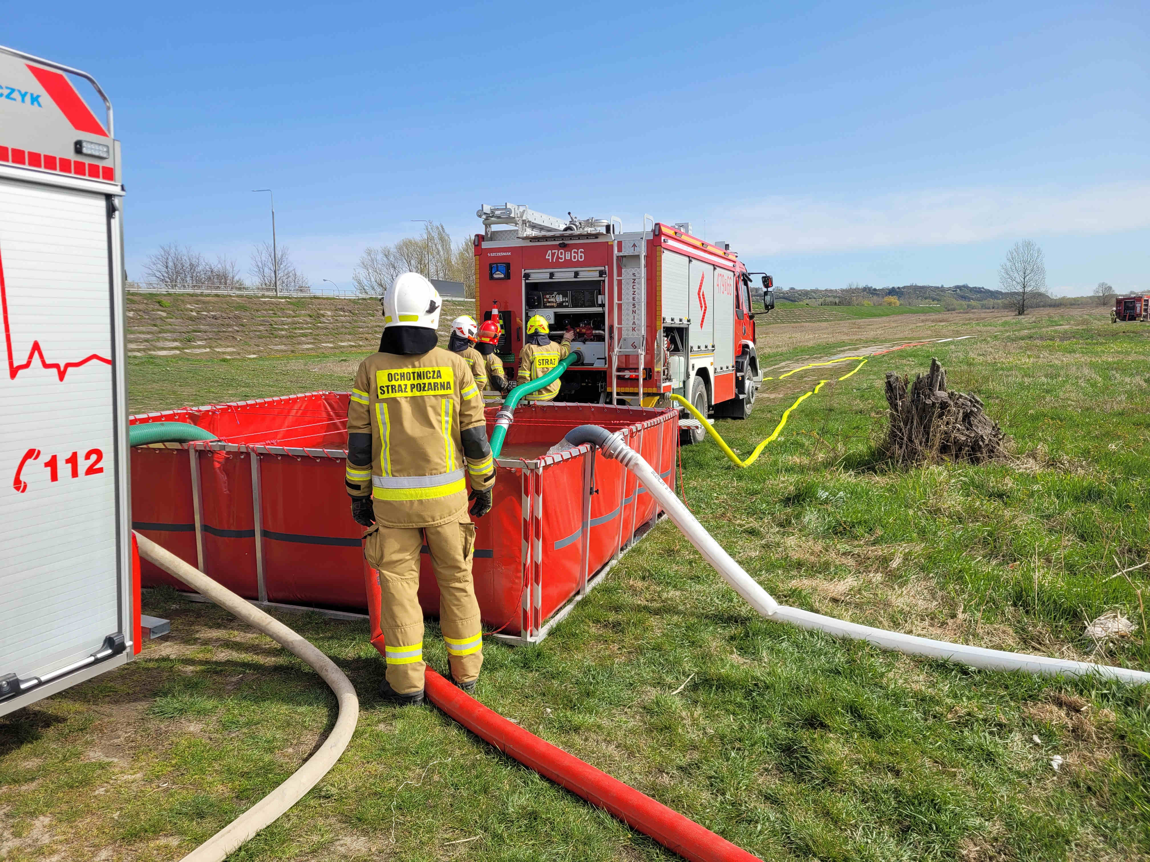 Ćwiczenia sandomierskich strażaków z zakresu dostarczania wody na duże odległości