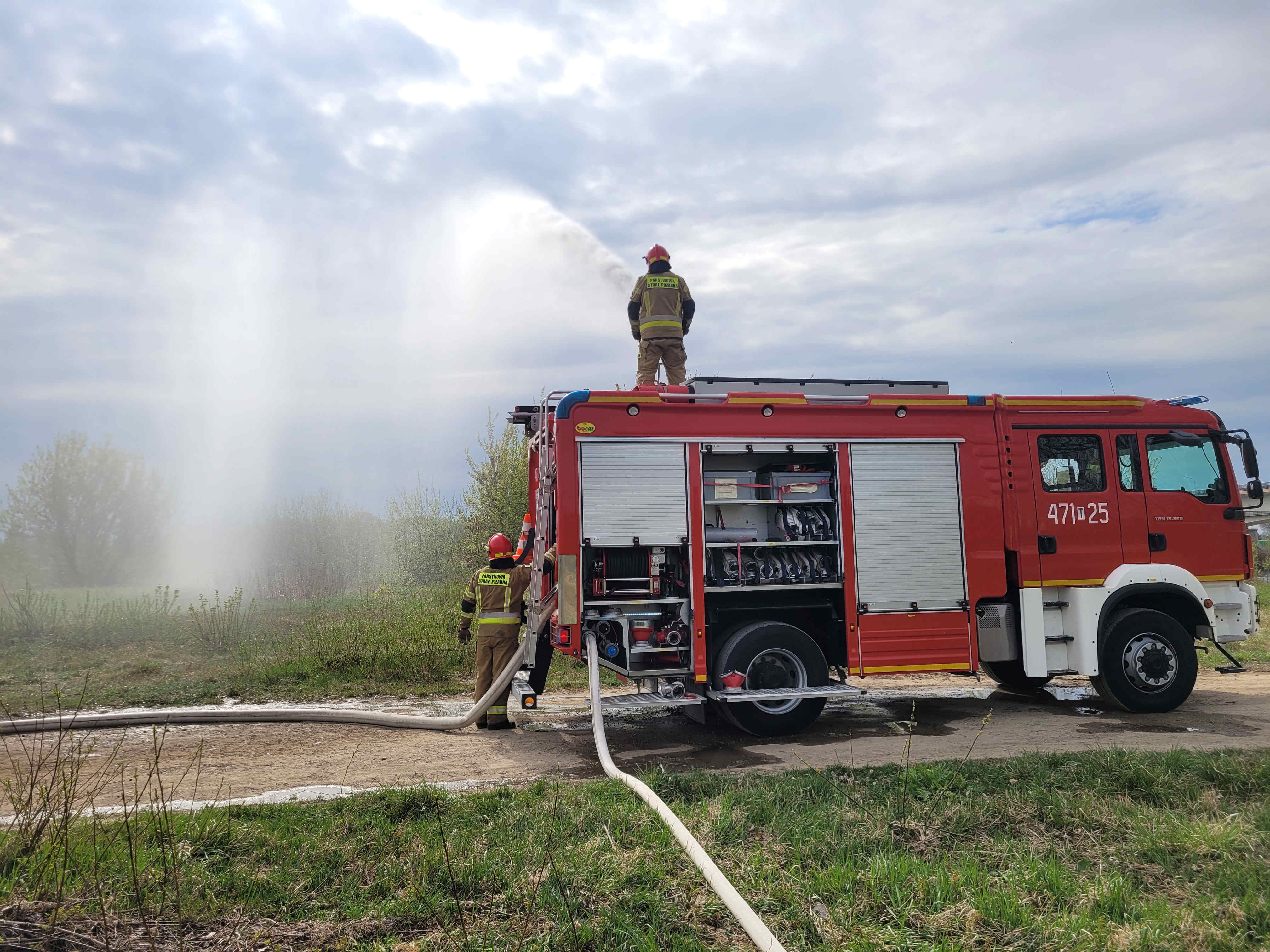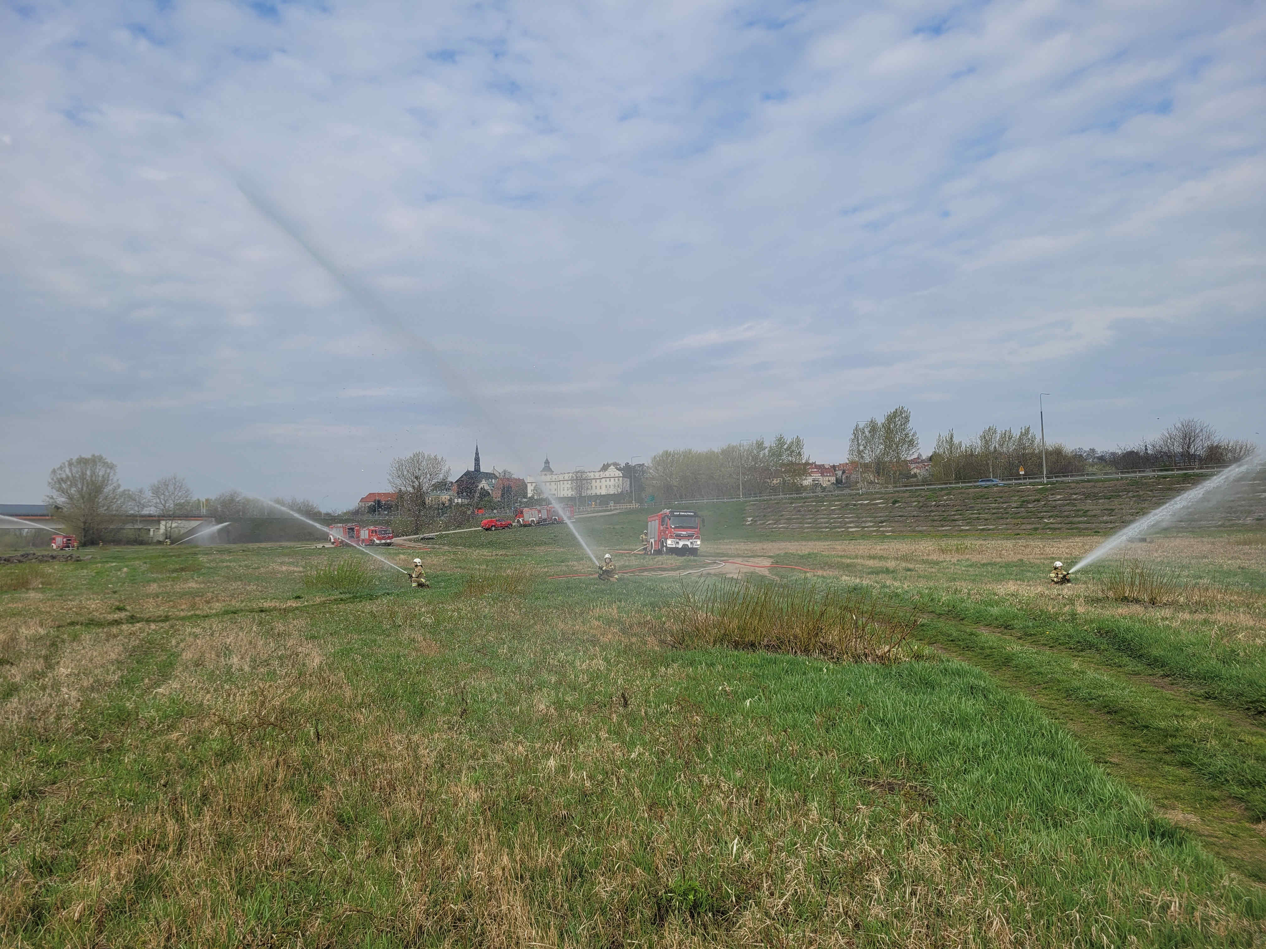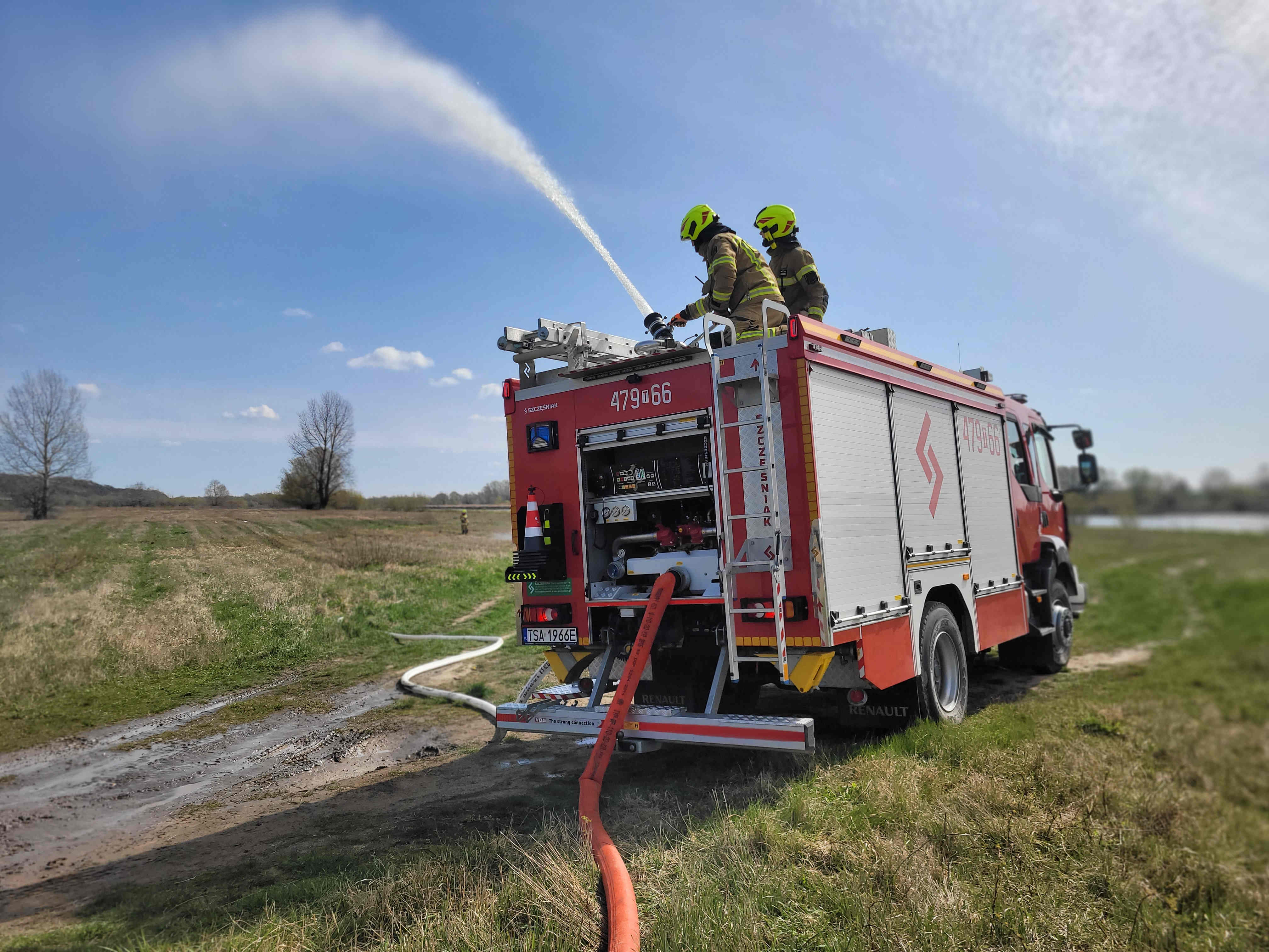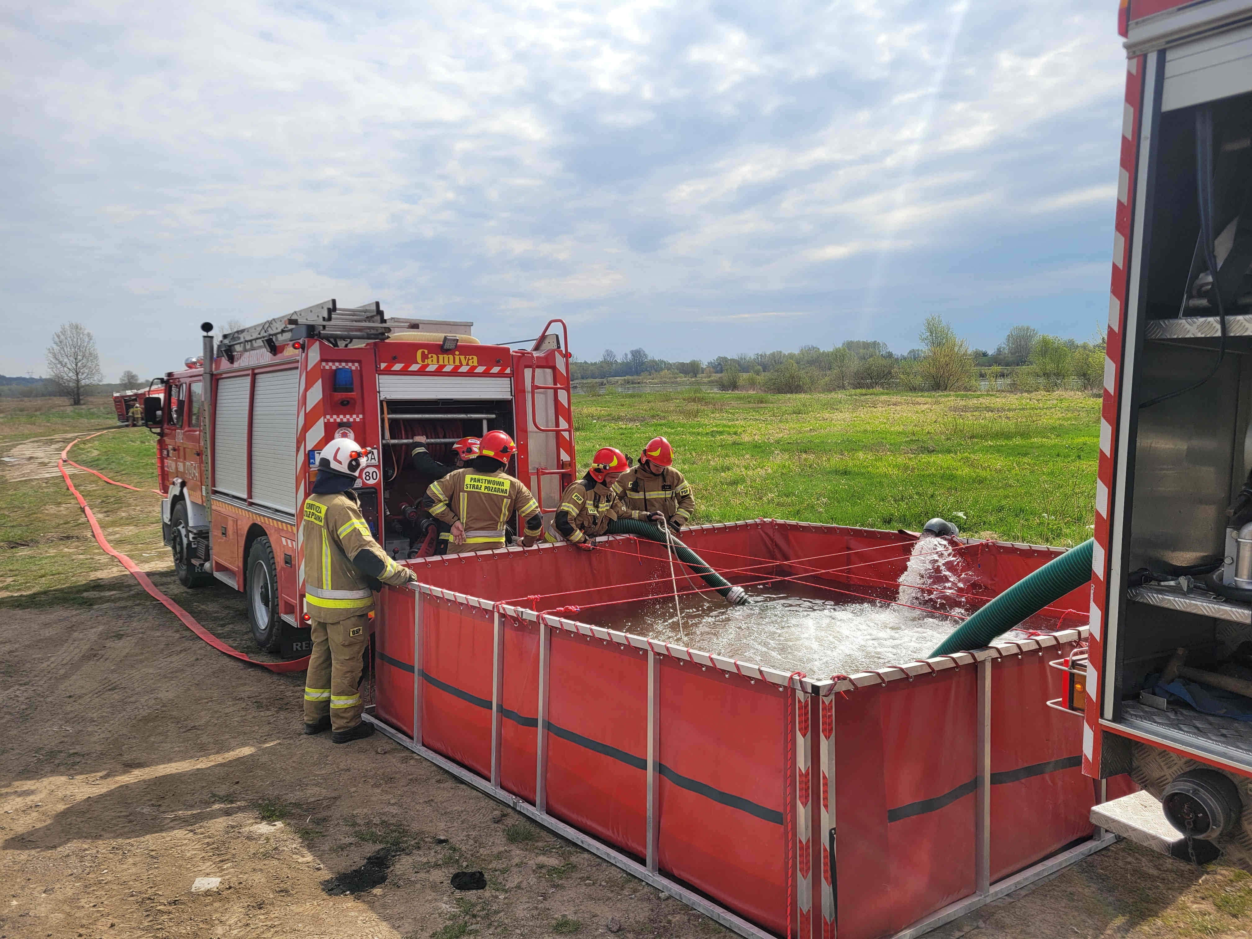 Ćwiczenia sandomierskich strażaków z zakresu dostarczania wody na duże odległości