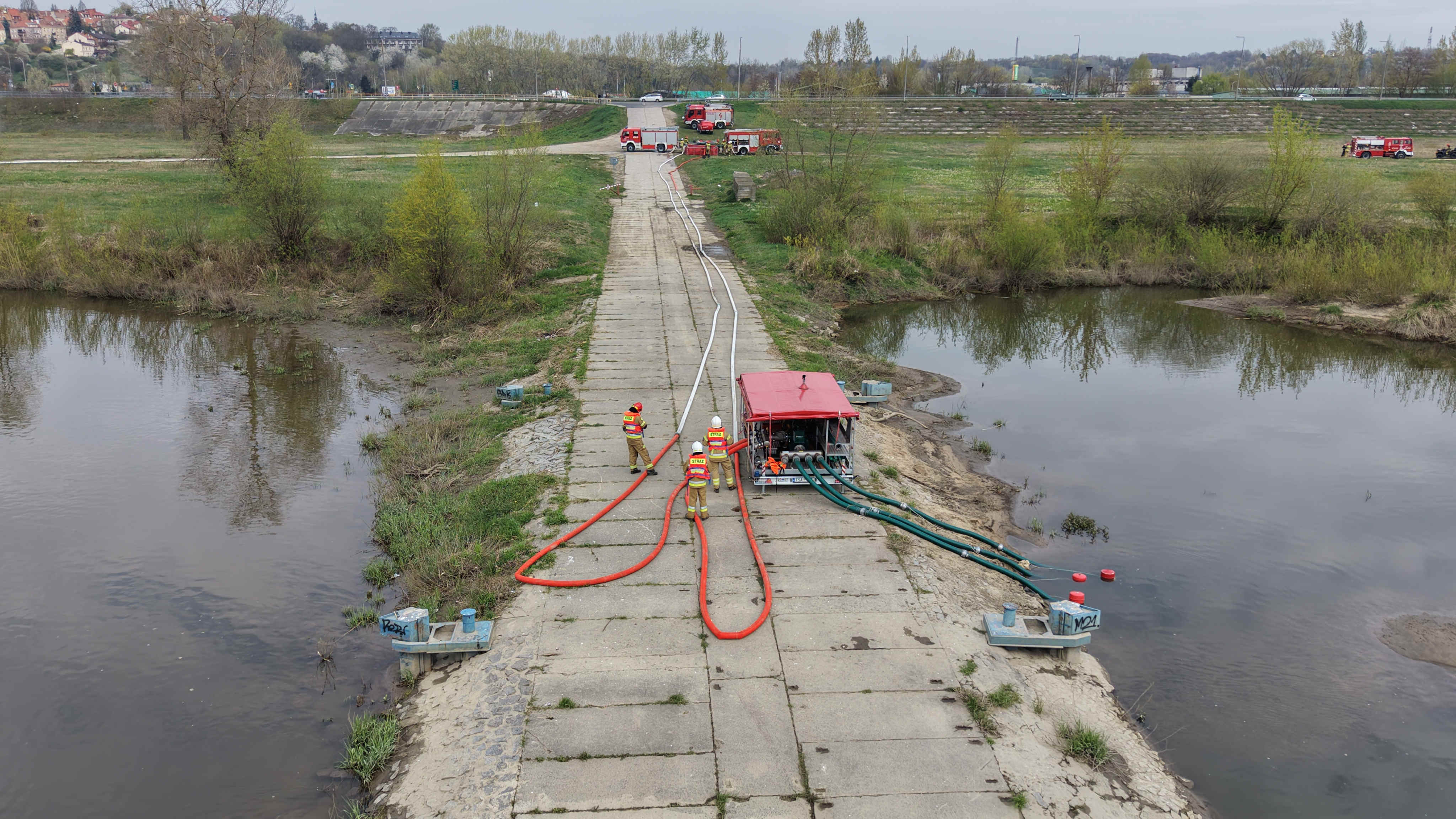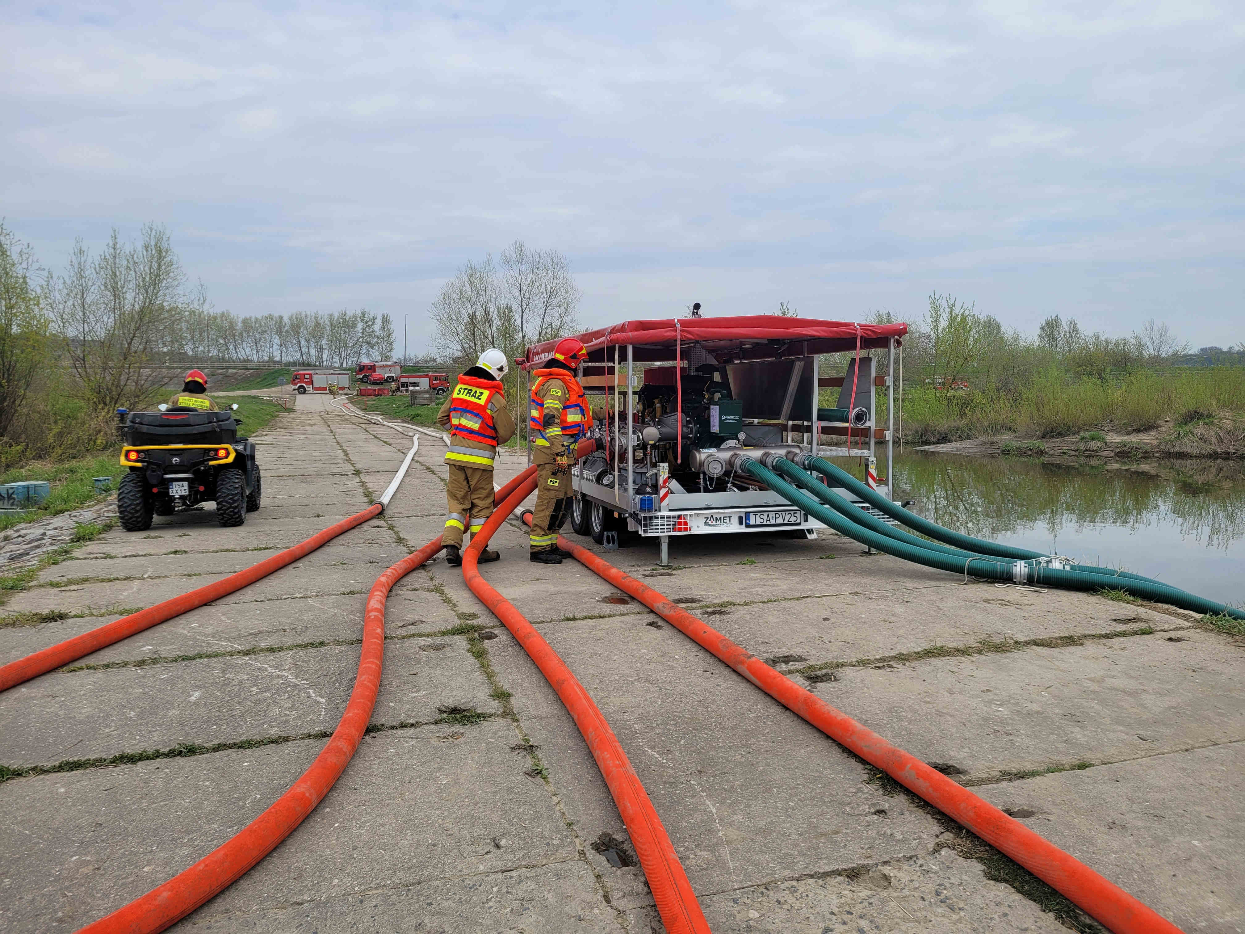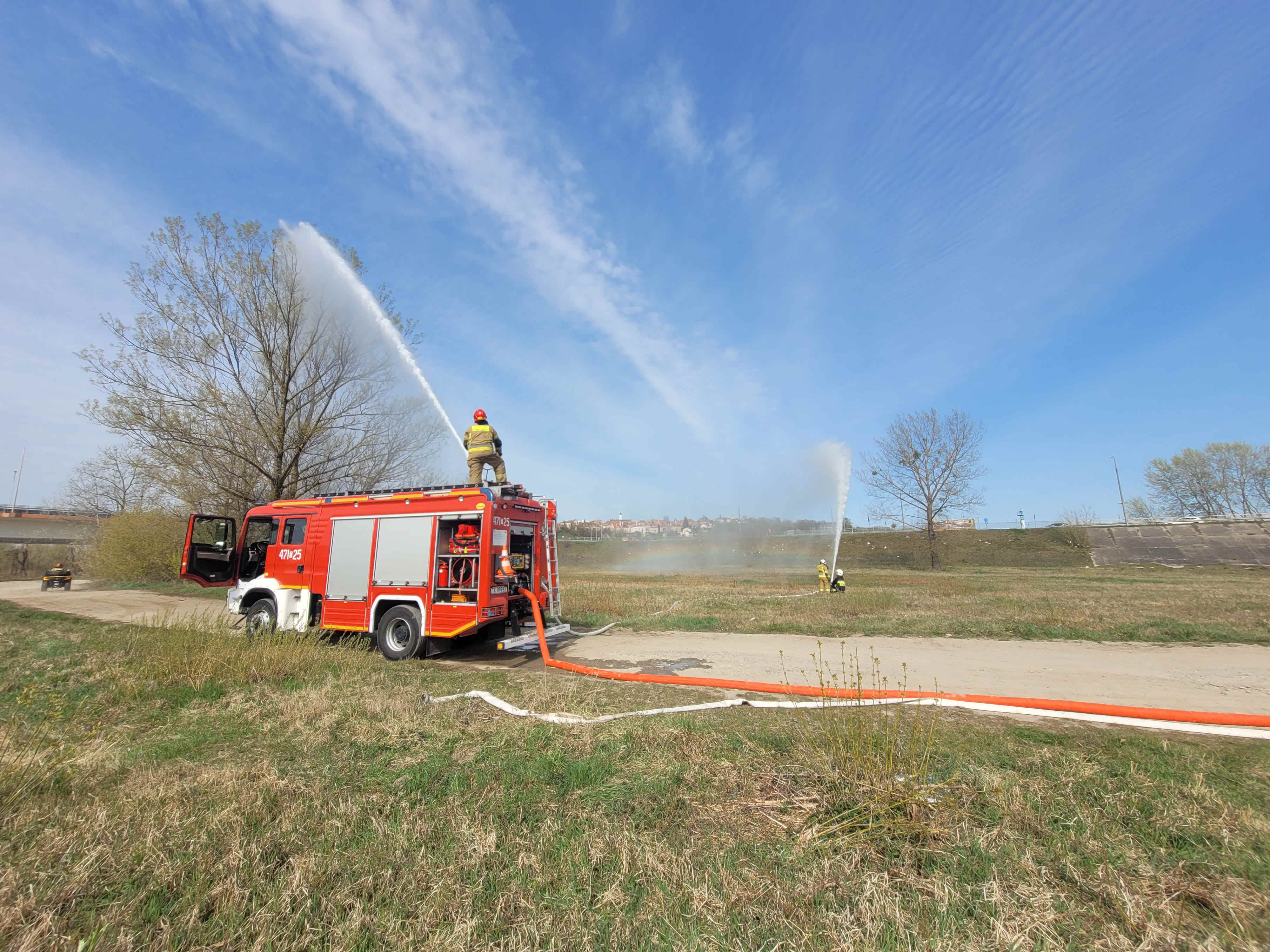 W dniach 13 - 15 kwietnia 2026 roku w Sandomierzu na Bulwarach Wiślanych odbyły się ćwiczenia doskonalące dla strażaków z Jednostki Ratowniczo - Gaśniczej Państwowej Straży Pożarnej w Sandomierzu i jednostek Ochotniczych Straży Pożarnych z Łoniowa, Złotej, Obrazowa, Zawichostu, Klimontowa, Dwikozy, Skotnik, Sulisławic, Dziurowa, Świątnik, Gorzyczan i Mściowa Nowego Kamienia. Tematem ćwiczeń było doskonalenie zawodowe z zakresu obsługi autopomp i motopomp pożarniczych, dostarczanie wody na duże odległości oraz przepompowywanie i przetłaczanie wody. Ćwiczenia miały na celu doskonalenie umiejętności budowania linii tłocznych i gaśniczych oraz przetłaczaniu wody na duże odległości w trudnych warunkach terenowych. Przećwiczona została współpraca między zastępami strażackimi podczas budowania linii wężowych, podawania wody budowania punktów czerpania wody, organizowania zaopatrzenia wodnego przy użyciu węży pożarniczych, pomp i zapewnienia ciągłości podawania wody do linii gaśniczych.