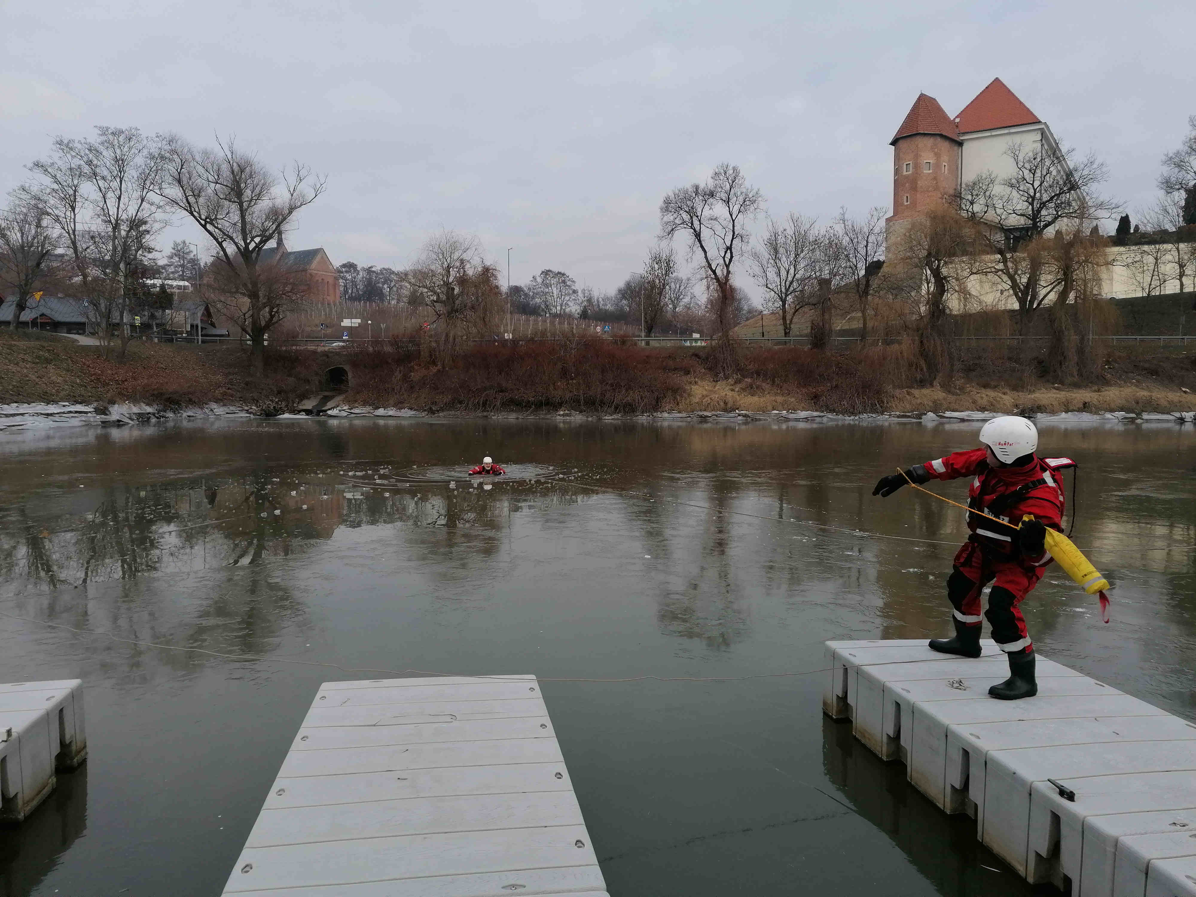 11 stycznia 2022r. na zbiorniku wodnym przy Bulwarze im. Marszałka Piłsudskiego w Sandomierzu odbyło się doskonalenie zawodowe dla strażaków z Jednostki Ratowniczo – Gaśniczej Państwowej Straży Pożarnej w Sandomierzu z zakresu technik ratowniczych na akwenach wodnych pokrytych warstwą lodu. Strażacy doskonalili umiejętności związane z ratowaniem osób, zwierząt, które mogą znaleźć się w wodzie na skutek załamania się pokrywy lodowej. Podczas doskonalenia wykorzystano różne techniki ratownicze oraz sprzęt taki jak sanie lodowe, koło, rzutkę ratowniczą i drabinę przenośną. Strażacy doskonalili bezpieczne i sprawne sposoby poruszania się po zamarzniętych zbiornikach wodnych. Podczas doskonalenia swoich umiejętności strażacy na lodzie byli wyposażeni w ubrania chroniące przed wychłodzeniem.