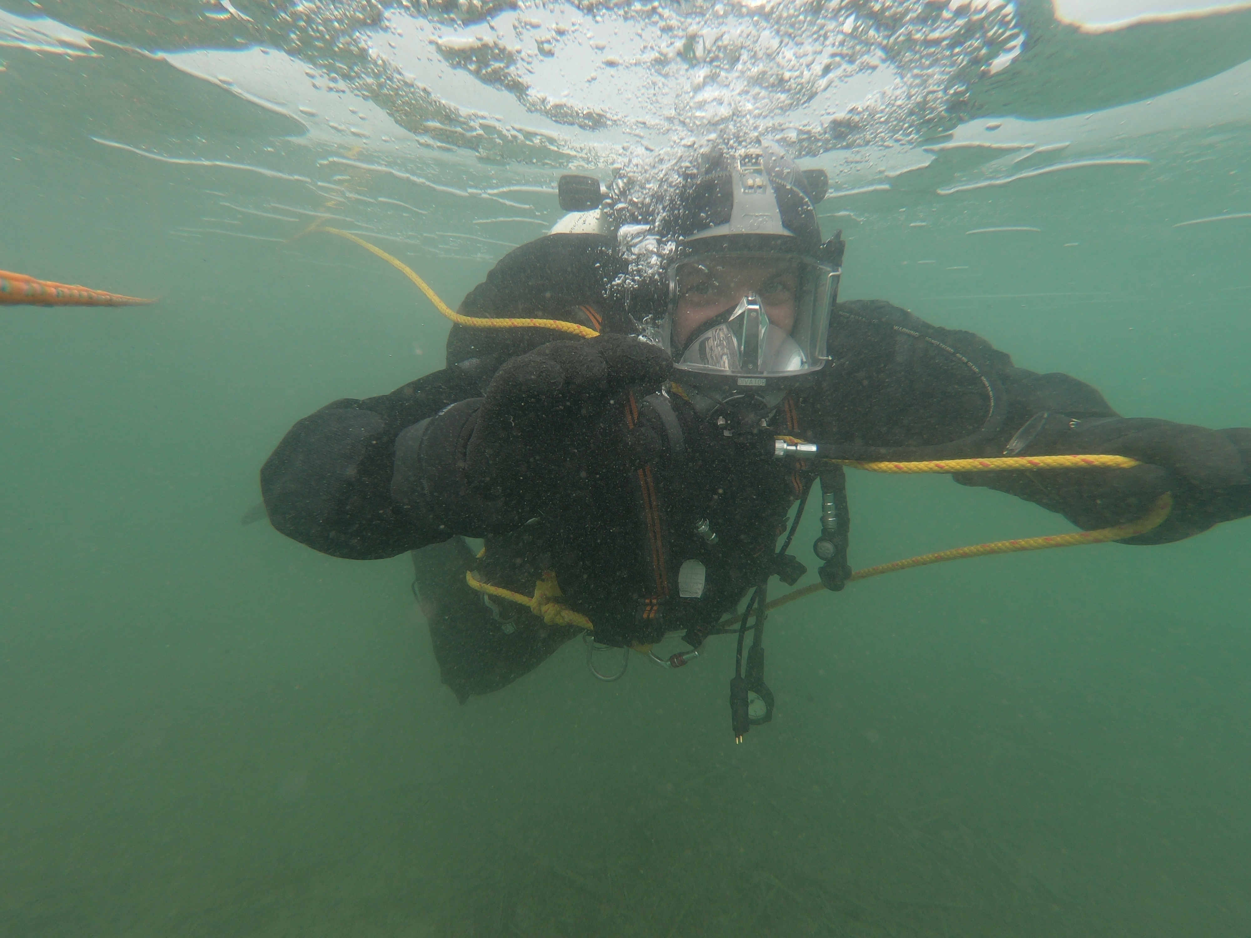 W ramach zajęć praktycznych strażacy doskonalili techniki przebywania pod wodą w zamkniętej przestrzeni podlodowej oraz samoratowania. Podczas ćwiczeń przypomniano sposoby zabezpieczenia terenu prowadzonych działań pod powierzchnią lodu, zasady bezpiecznego nurkowania i procedury kwalifikowanej pierwszej pomocy.