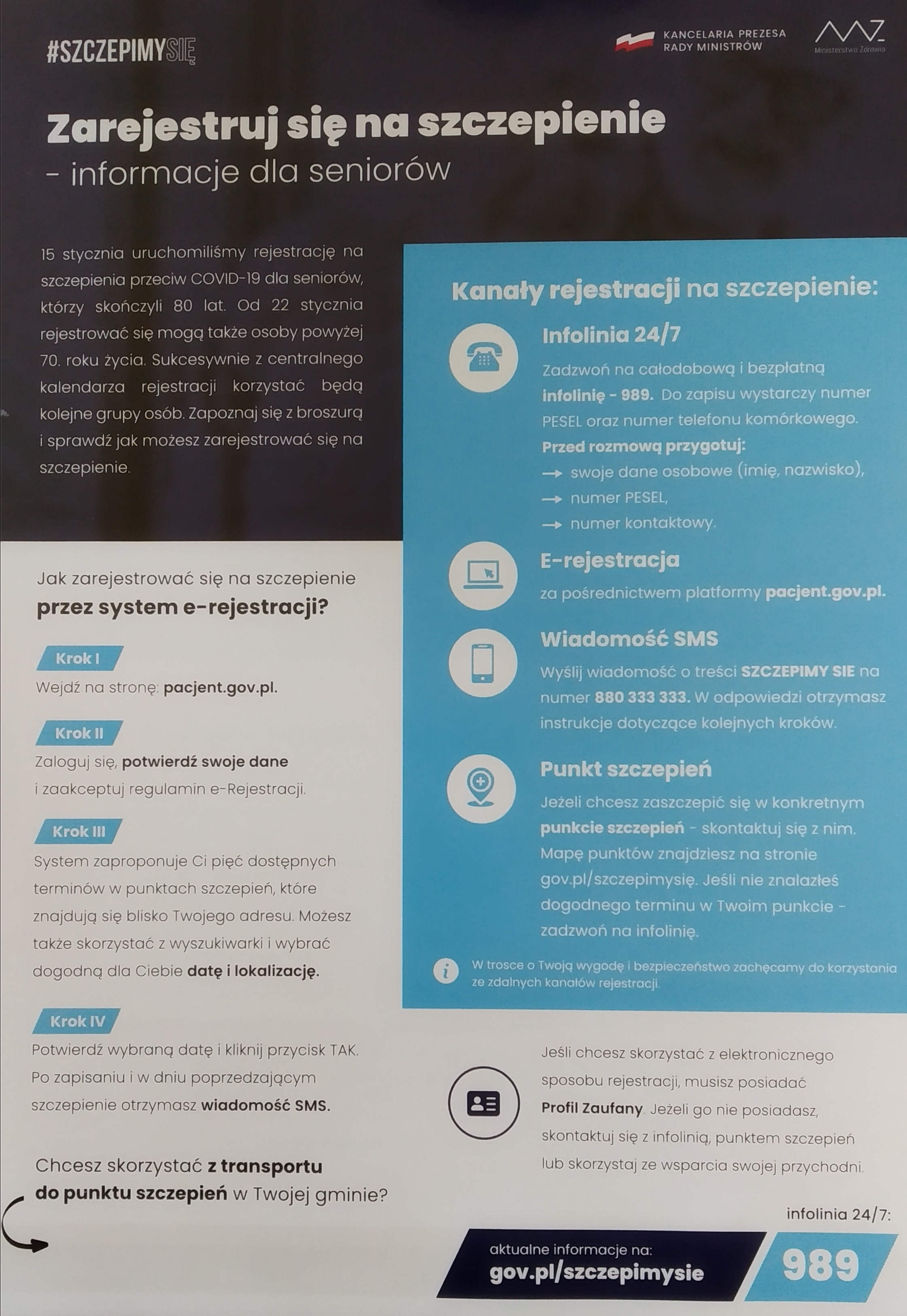 W ulotkach zawarte są podstawowe informacje o sposobach rejestracji na szczepienia jak również o możliwości uzyskania pomocy w dotarciu do punktu szczepień. Strażacy z Komendy Powiatowej PSP w Sandomierzu nanieśli na ulotki numery kontaktowe do gminnych koordynatorów szczepień.