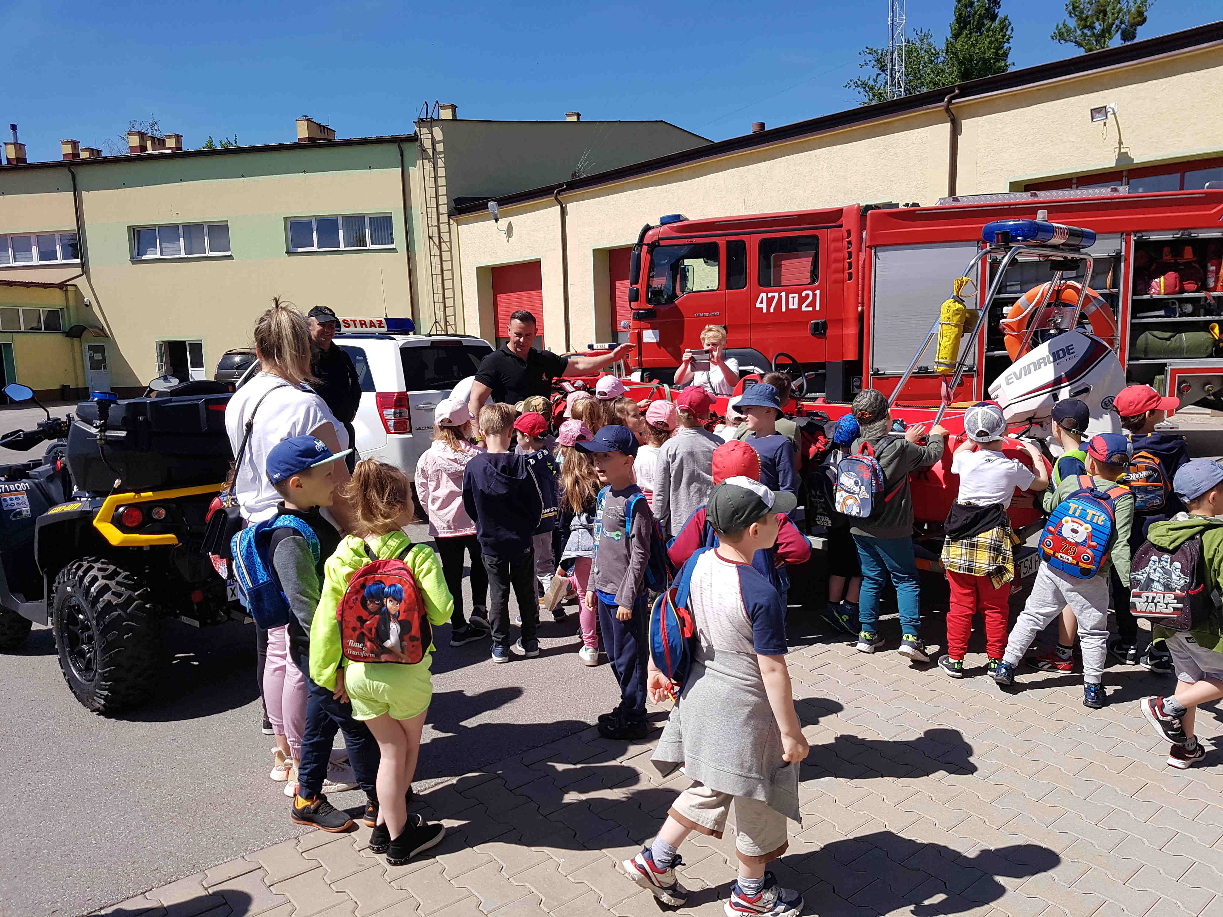 19 maja 2022r. Komendę Powiatową Państwowej Straży Pożarnej w Sandomierzu odwiedziła grupa dzieci wraz z opiekunami z Przedszkola Samorządowego Nr 6 w Sandomierzu. Podczas wizyty dzieci dowiedziały się w jakich okolicznościach można wezwać straż pożarną i utrwaliły sobie numer alarmowy – 112. Dzieci wysłuchały prelekcji na temat niebezpieczeństw i zagrożeń pożarowych, oraz jak zachować się w czasie pożaru. Jak zawsze największe zainteresowanie wzbudziły wozy strażackie. Dzieci mogły z bliska oglądać oraz zapoznać się z wyposażeniem, jakim dysponują podczas swojej pracy strażacy. Przez chwilę wszyscy uczestnicy wycieczki mogli poczuć się jak strażacy, przymierzając hełm strażacki i umundurowanie. Na zakończenie spotkania dzieci otrzymały od strażaków słodkie upominki.