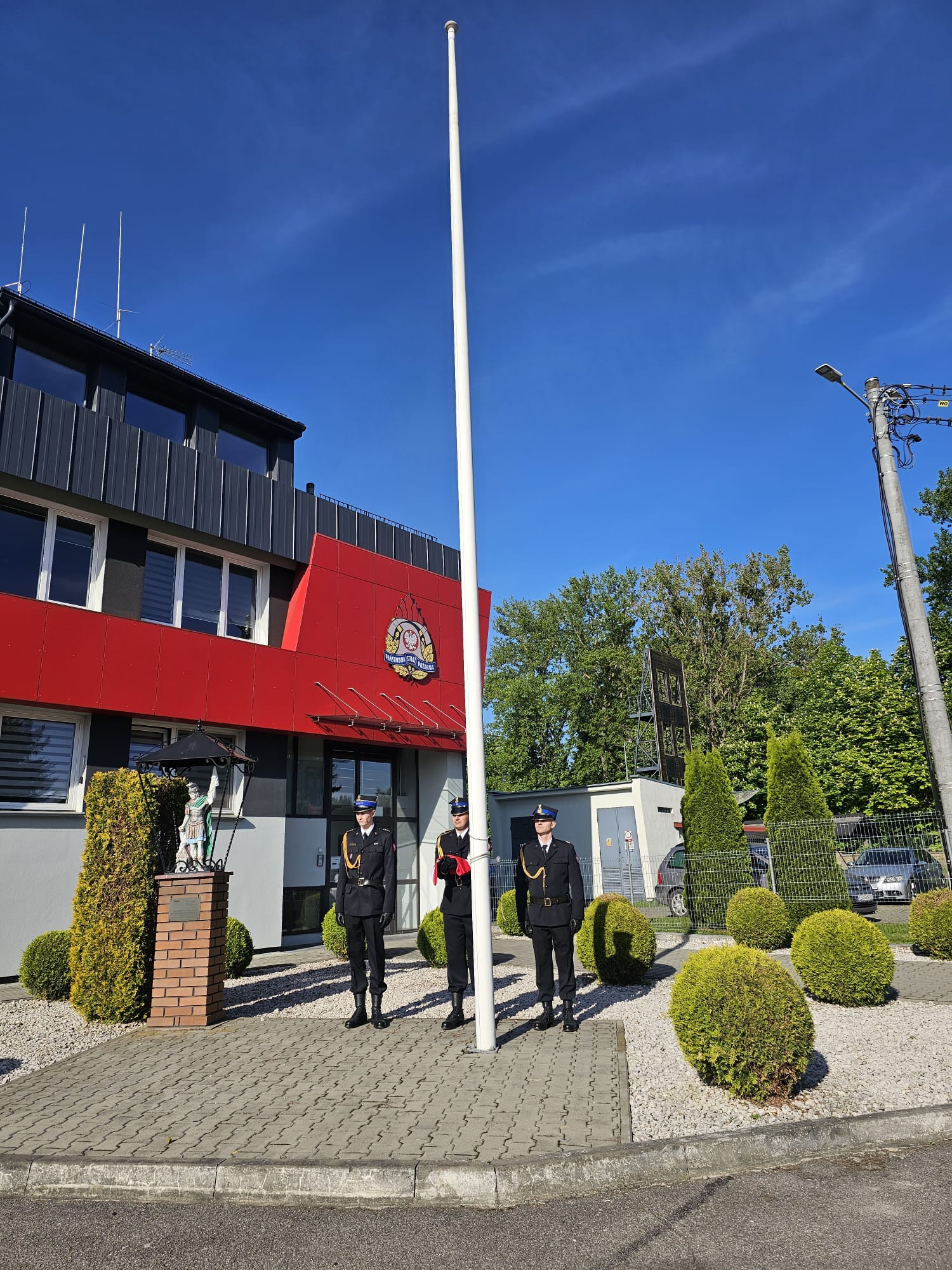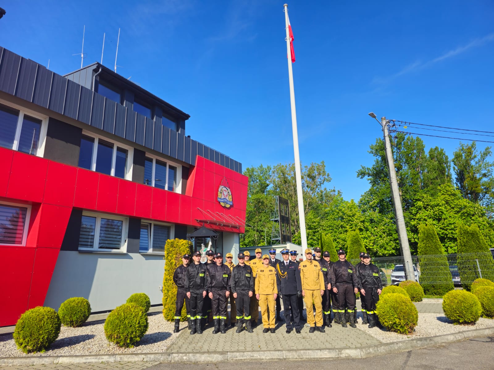 2 maja 2025 r. o godz. 8:00 w Komendzie Powiatowej Państwowej Straży Pożarnej w Sandomierzu podczas zmiany służby odbyło się coroczne, uroczyste podniesienie flagi państwowej na maszt z okazji Dnia Flagi Rzeczypospolitej Polskiej.