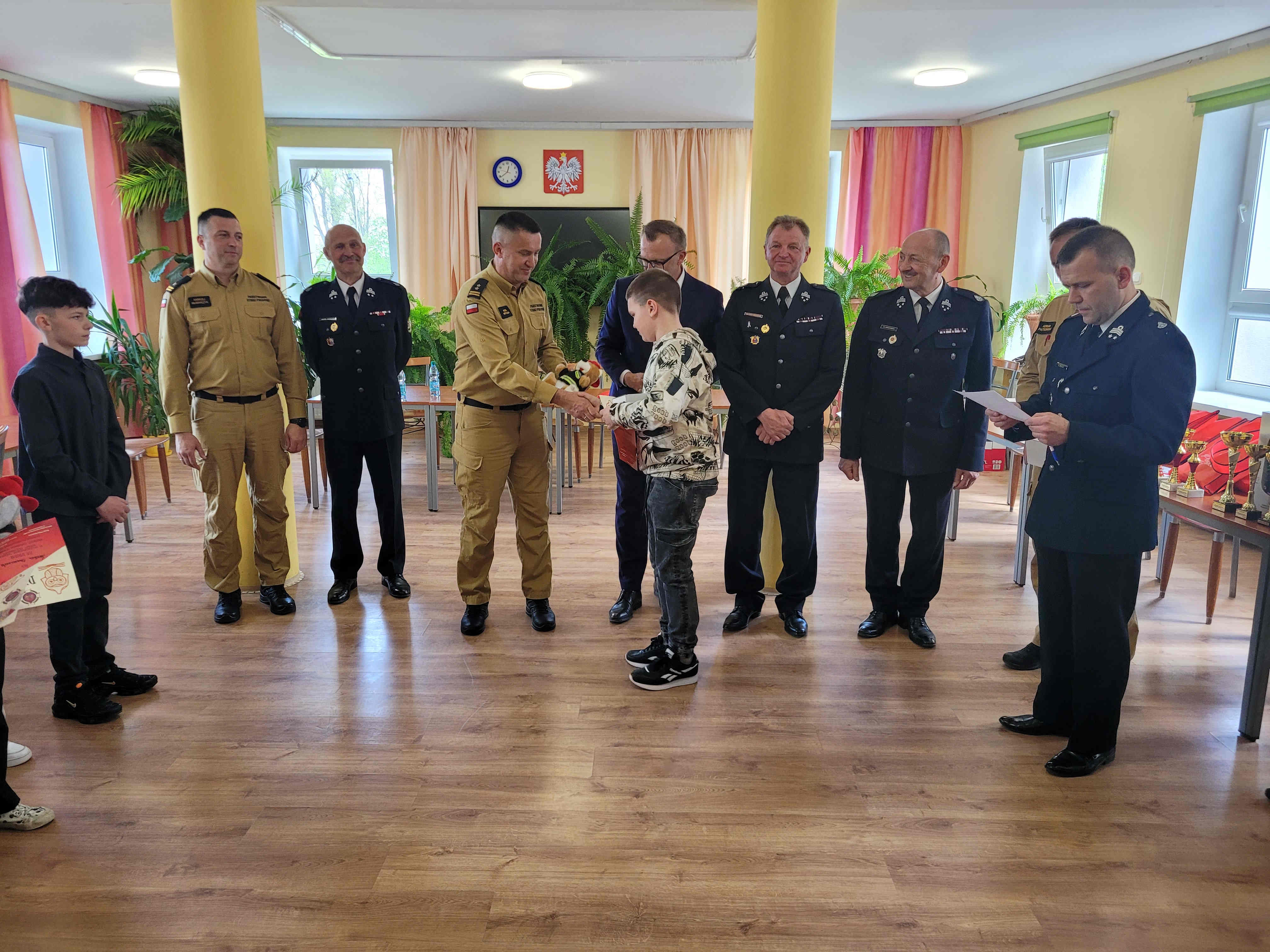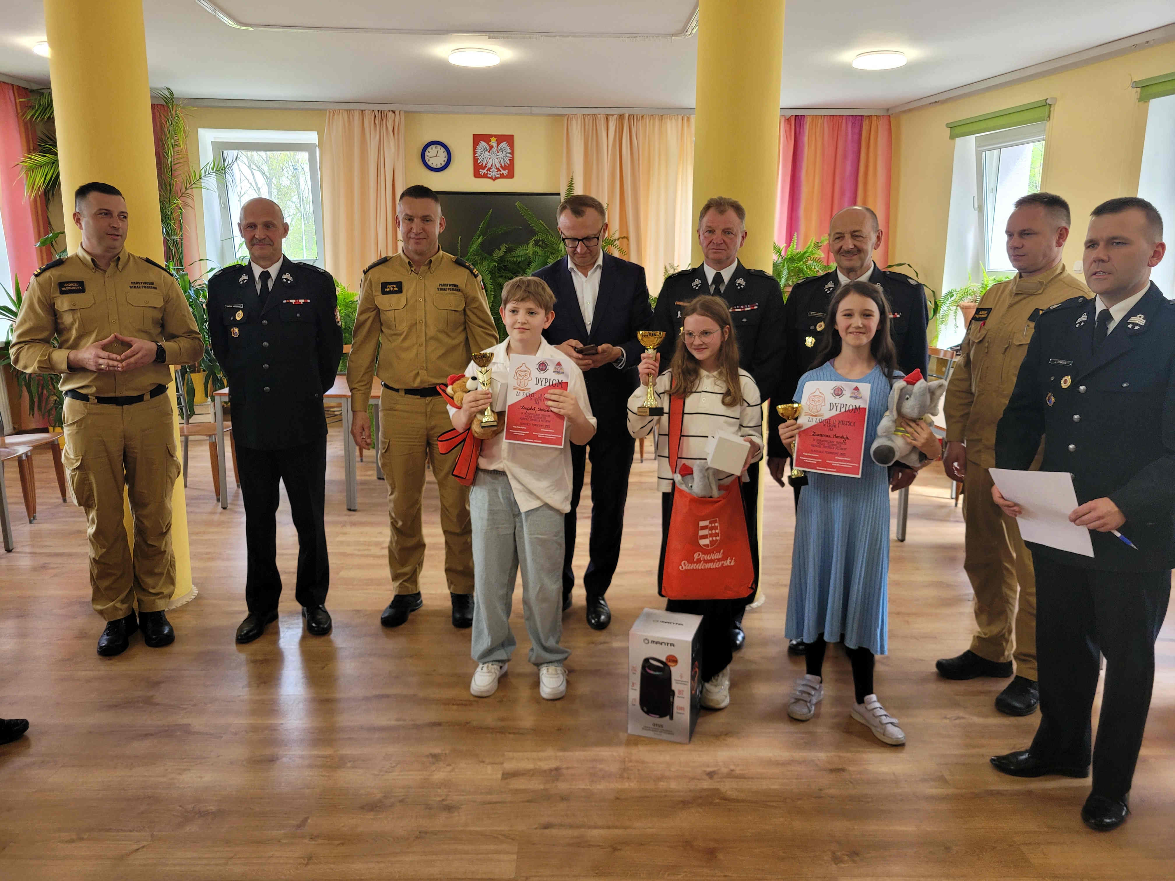 Na zakończenie turnieju, Starosta Sandomierski Marcin Piwnik, Komendant Powiatowy PSP w Sandomierzu bryg. Piotr Krytusa oraz V-ce Prezesi Zarządu Oddziału Powiatowego ZOSP RP dh. Waldemar Maruszczak i dh Mirosław Kwapiński pogratulowali zwycięzcom, podziękowali uczestnikom za udział w turnieju a ich opiekunom za przygotowanie uczniów. Zwycięzcom wręczyli puchary, dyplomy oraz nagrody rzeczowe i upominki ufundowane przez Starostę Sandomierskiego, Komendanta Powiatowego PSP w Sandomierzu oraz Zarząd Oddziału Powiatowego ZOSP RP. Każdy uczestnik otrzymał dyplom i pamiątkowy upominek