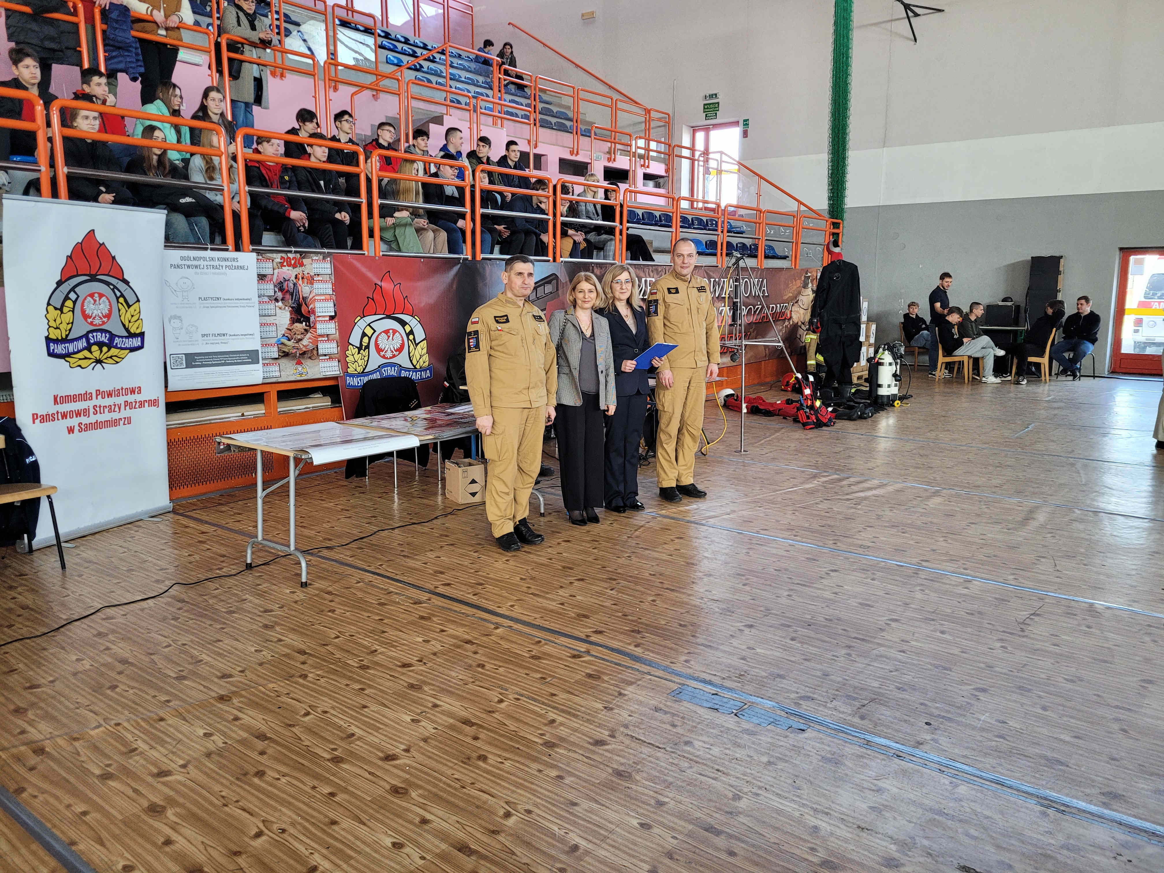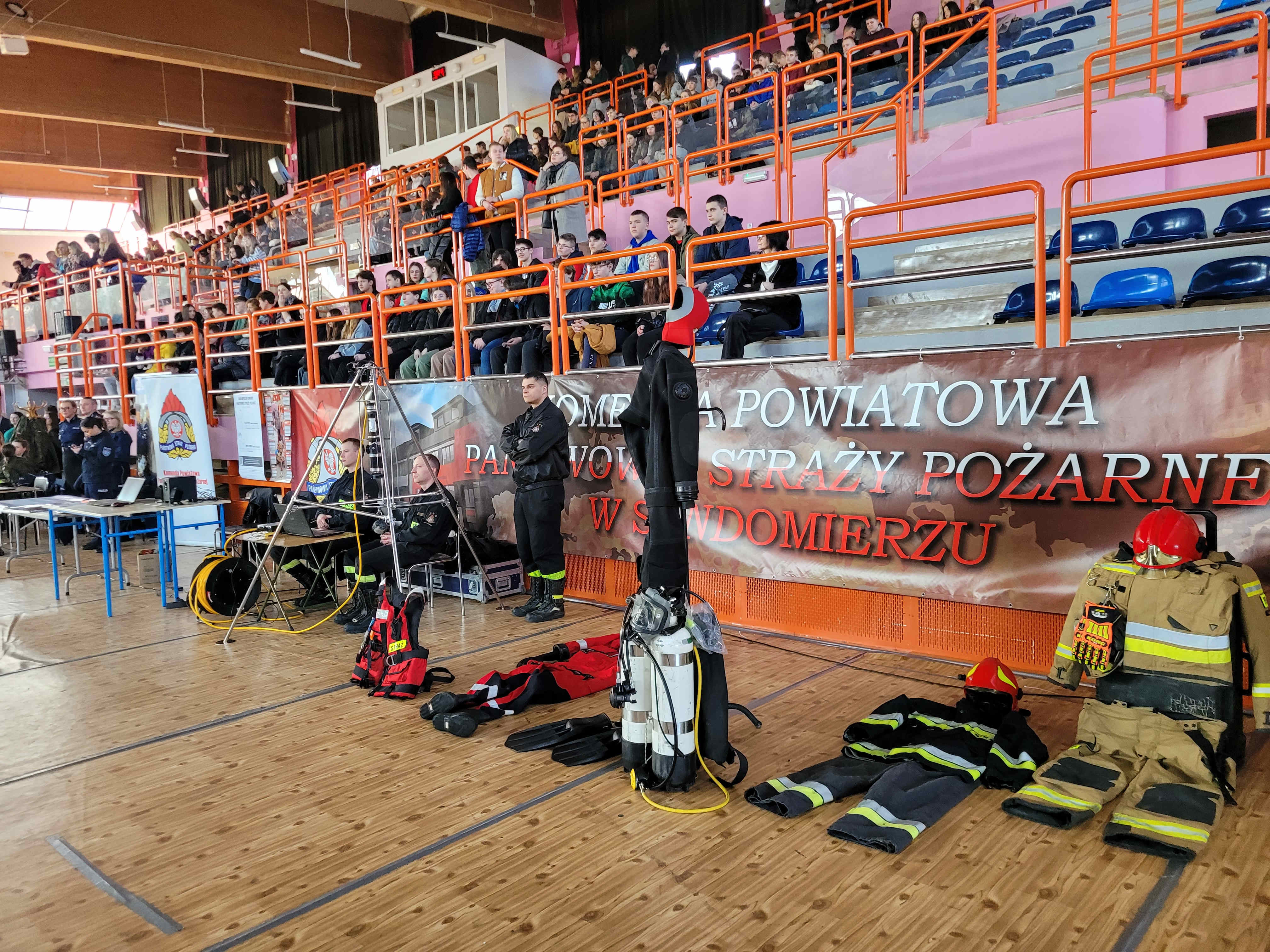 21 marca 2024 roku na Hali Widowiskowo – Sportowej MOSiR Sandomierz odbyła się Świętokrzyska Giełda Szkół Ponadpodstawowych promująca szkoły średnie działające na terenie powiatu sandomierskiego, której organizatorem było Kuratorium Oświaty w Kielcach. W giełdzie szkół ponadpodstawowych udział wzięli Komendant Powiatowy PSP w Sandomierzu bryg. Piotr Krytusa wraz ze swoim zastępcą oraz strażacy, którzy wystawili swoje stoisko promujące zawód strażaka. Na stoisku promocyjnym młodzież mogła dowiedzieć się o zawodzie i pracy strażaka w Jednostce Ratowniczo – Gaśnicze oraz jakie wymagania trzeba spełnić przy naborze do służby. Zaprezentowany został sprzęt i wyposażenie, którym dysponują strażacy podczas działań ratowniczo – gaśniczych. Omówiono sprzęt wchodzący w skład Specjalistycznych Grup Ratowniczych działających przy sandomierskiej komendzie tj. sonar do poszukiwań obiektów pod wodą oraz ubranie i wyposażenie strażaka – nurka. Jak zawsze największe zainteresowanie wzbudził samochód strażacki, który można było zobaczyć z bliska. Osoby odwiedzające stoisko Państwowej Straży Pożarnej mogli dowiedzieć się w jakich okolicznościach można wzywać straż pożarną, wysłuchać prelekcji na temat niebezpieczeństw i zagrożeń pożarowych.