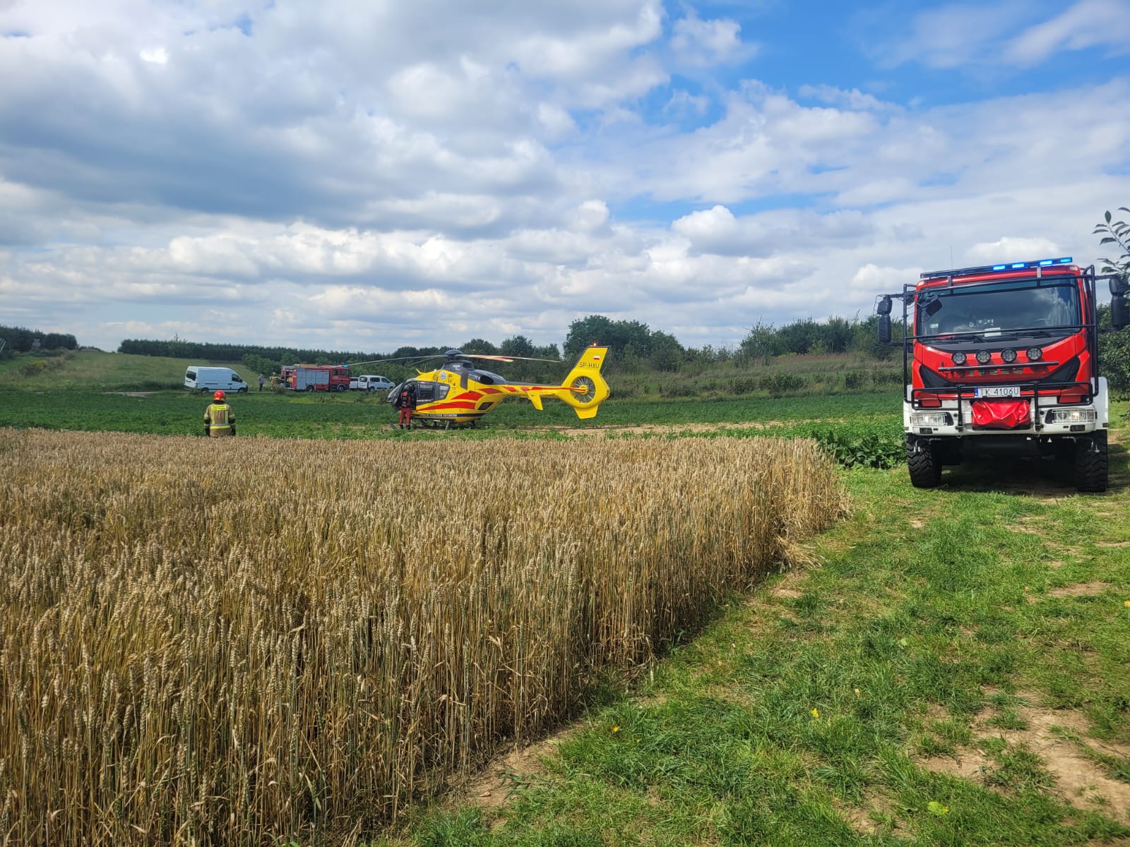 29.07.2025r. do SK KP PSP w Sandomierzu wpłynęło zgłoszenie o mężczyźnie którego poraził prąd podczas prac polowych w miejscowości Lenarczyce. Po dotarciu na miejsce i przeprowadzonym rozpoznaniu KDR ustalił że mężczyzna podczas mechanicznego zbioru wiśni, zahaczył elementem konstrukcyjnym pojazdu o linie energetyczne, co skutkowało porażeniem prądem. Działania strażaków polegały na zabezpieczeniu miejsca zdarzenia oraz udzieleniu kwalifikowanej pierwszej pomocy wraz z przybyłym na miejsce zespołem ZRM. Na miejsce zdarzenia zadysponowany został także śmigłowiec LPR. Następnie mężczyzna został przetransportowany do szpitala. Dalsze czynności prowadzi Policja.
