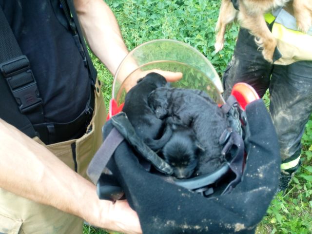 31 lipca o godzinie 12:15 do Stanowiska Kierowania Komendanta Powiatowego PSP w Sandomierzu wpłynęło zgłoszenie o uwięzionych szczeniakach pod płytami betonowymi. Do zdarzenia zostali zadysponowani strażacy z Jednostki Ratowniczo-Gaśniczej PSP z Sandomierza. Po dojeździe zastępu straży pożarnej na miejsce zdarzenia i przeprowadzonym rozpoznaniu stwierdzono, że pod niedużym gruzowiskiem znajdują się trzy małe pieski. Strażacy wykonali dostęp poprzez przecięcie płyt betonowych przy użyciu przecinarki do betonu. Następnie ratownicy wydobyli zwierzęta i przekazali właścicielce posesji.