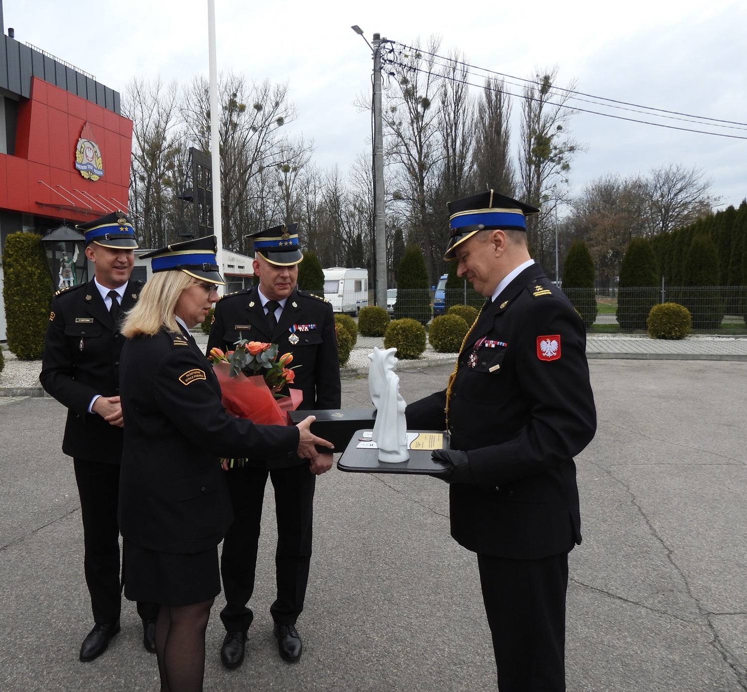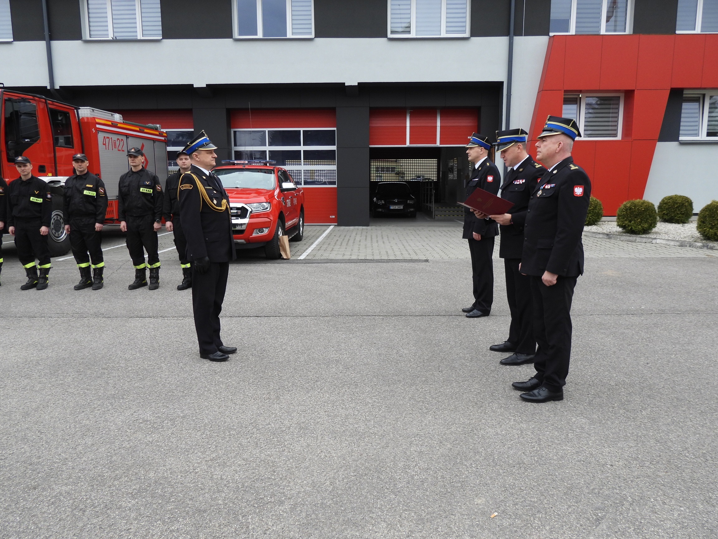 Następnie odchodzący Naczelnik Wydziału Operacyjno- Szkoleniowego bryg. Bogusław Karbowniczek podsumował swoją służbę w Państwowej Straży Pożarnej dziękując rodzinie, przełożonym, koleżankom oraz kolegom za wspólnie spędzone lata. Do życzeń dołączyli się wszyscy obecni na uroczystej zbiórce.