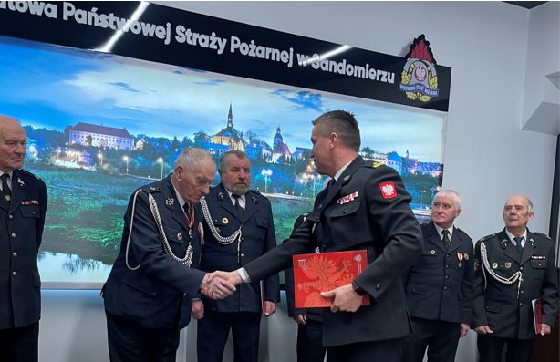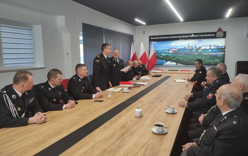 Podczas spotkania komendant powiatowy Państwowej Straży Pożarnej w Sandomierzu mł. bryg. Piotr Krytusa wręczył pierwsze decyzje przyznające świadczenia ratownicze dla strażaków OSP, którzy przez co najmniej 25 lat brali czynny udział w działaniach ratowniczych lub akcjach ratowniczych.