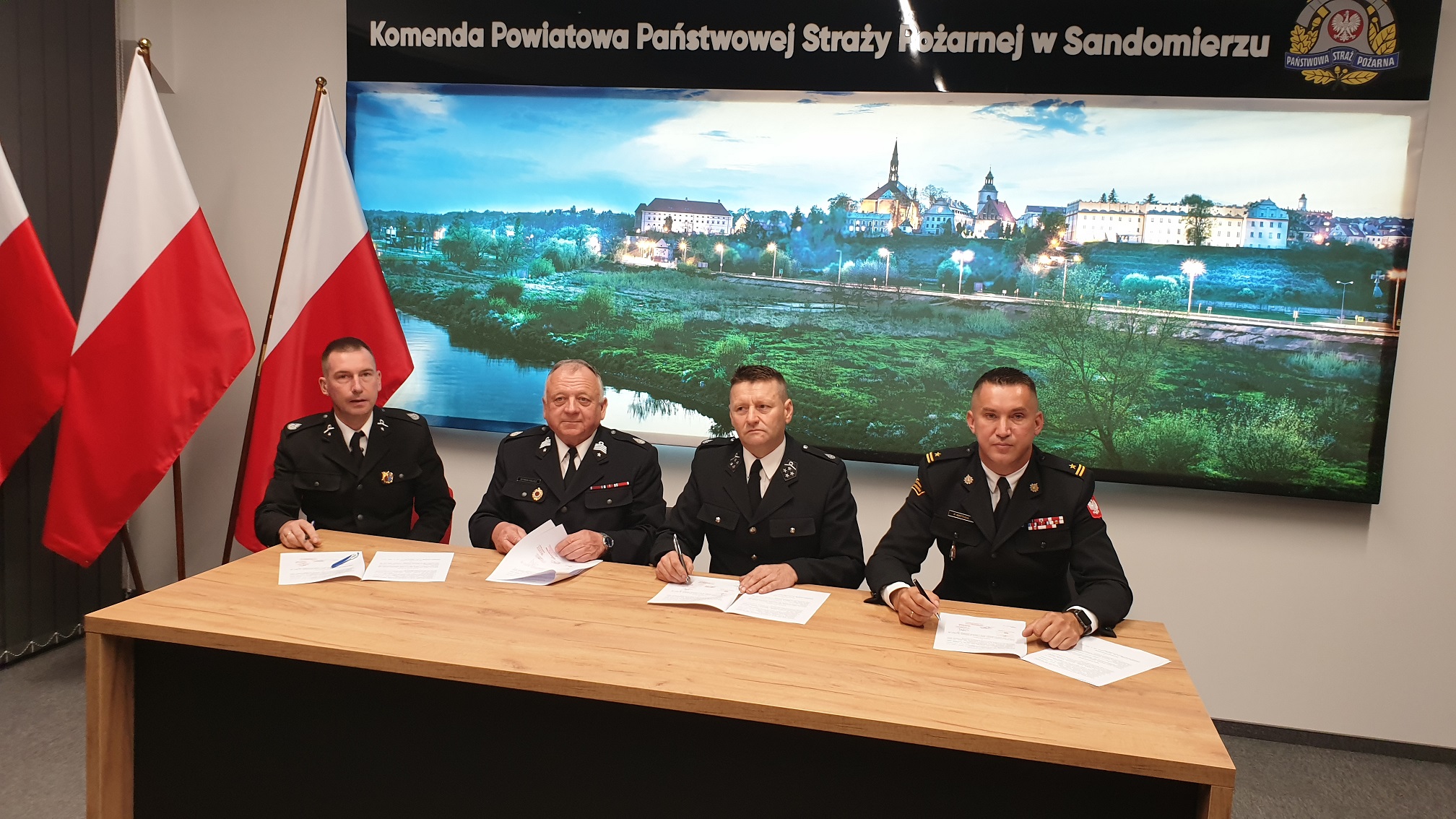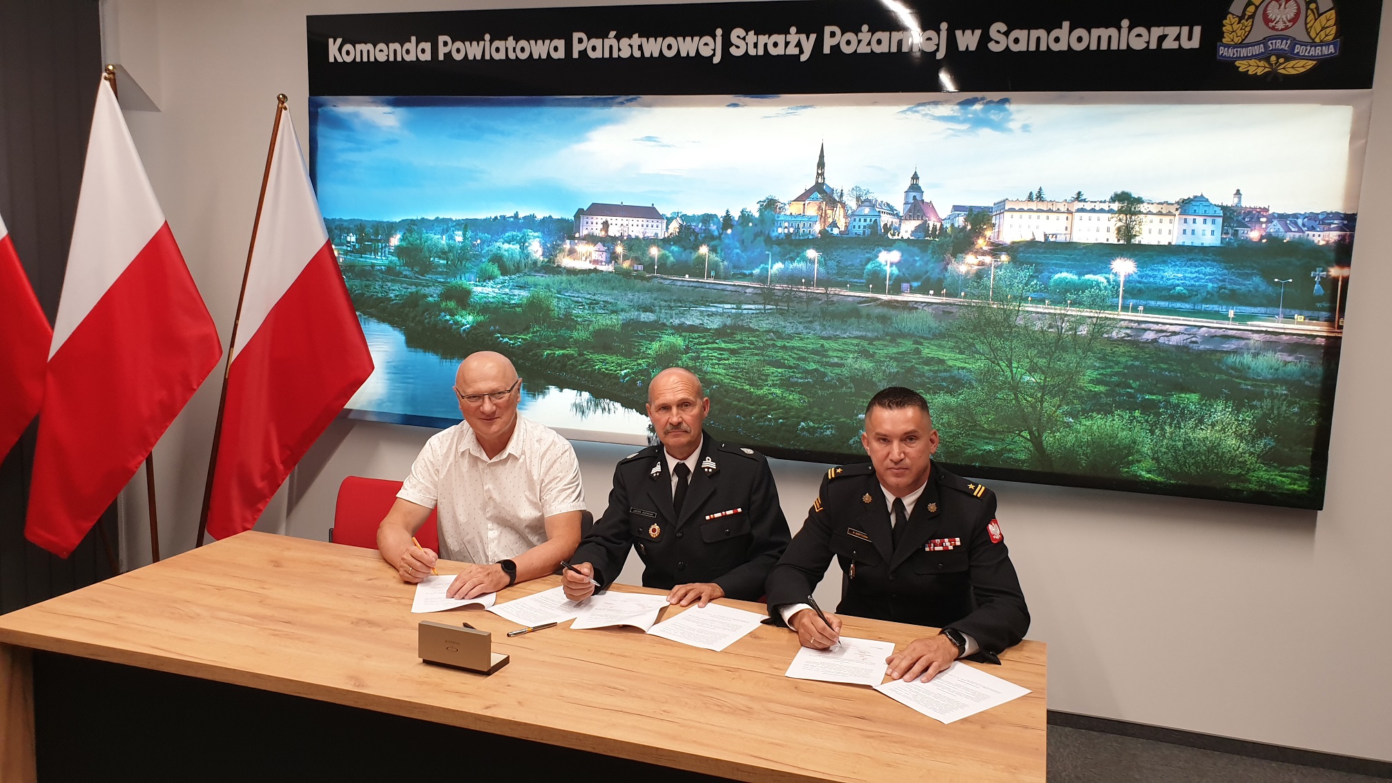 17 lipca 2023r. w Komendzie Powiatowej Państwowej Straży Pożarnej w Sandomierzu podpisano trójstronne porozumienia dotyczące włączenia jednostek Ochotniczej Straży Pożarnej w Głazowie gm. Obrazów, w Chobrzanach gm. Samborzec i OSP Wnorów gm. Łoniów do krajowego systemu ratowniczo- gaśniczego.