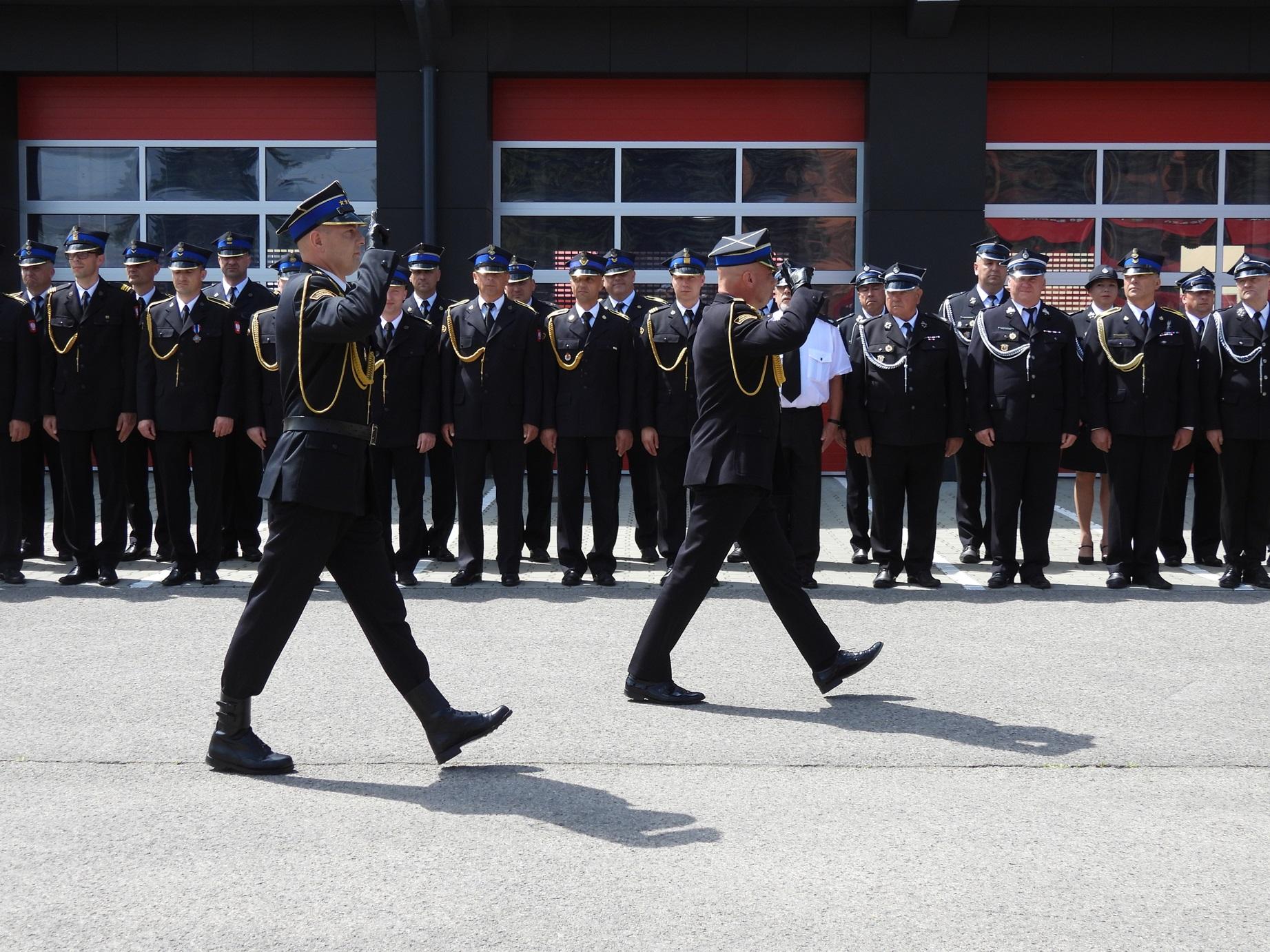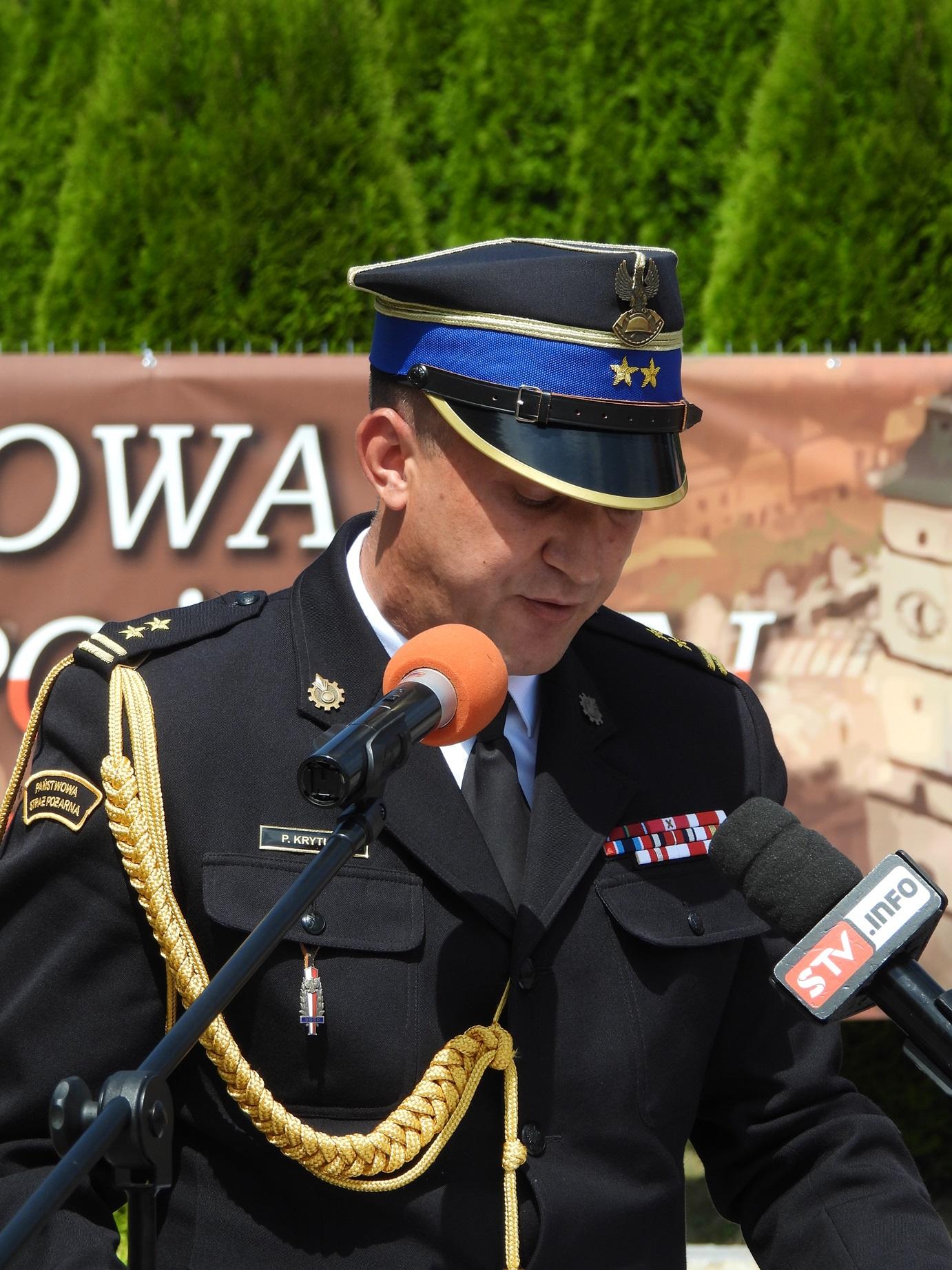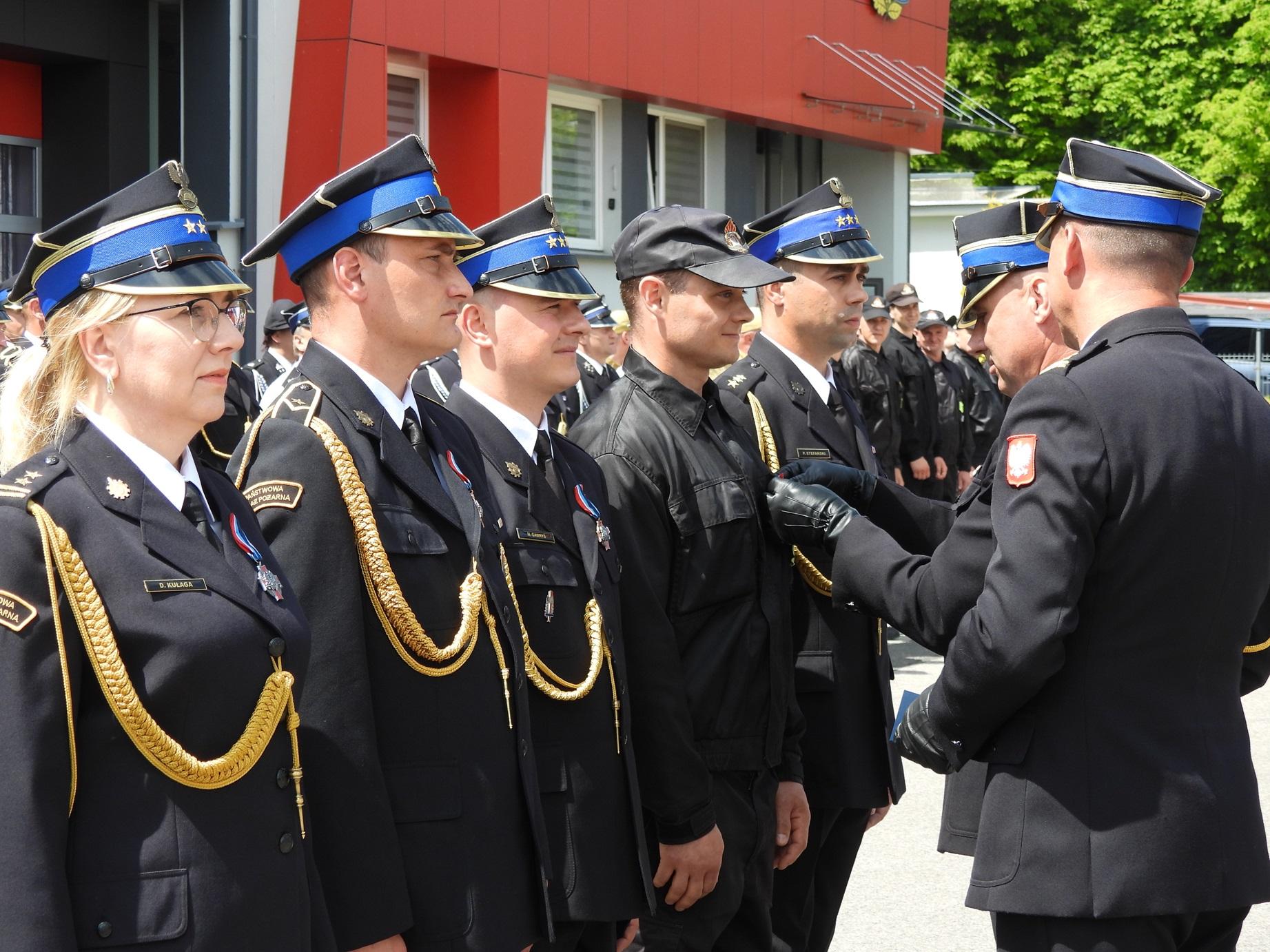 W swoim wystąpieniu komendant podkreślił, że ostatnie lata postawiły przed strażą pożarną szereg nowych wyzwań. Zadania walki z pożarami, niesienia ratunku i pomocy w czasie klęsk żywiołowych, wypadków komunikacyjnych, katastrof budowlanych, awarii i skażeń chemicznych, czy innych zagrożeń nie wyczerpują wachlarza strażackich działań. Strażacy pokazali swój profesjonalizm oraz poświęcenie i skuteczność również podczas długotrwałego zagrożenia epidemiologicznego, czy organizacji pomocy dla strażaków w ogarniętej wojną Ukrainie oraz uchodźców z tego kraju, którzy znaleźli schronienie w Polsce.