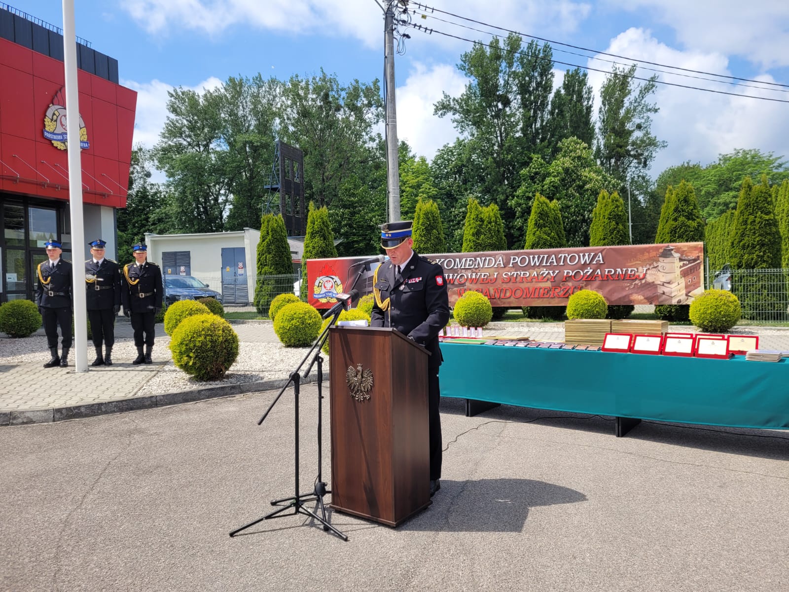 Zaproszeni goście w swoich wystąpieniach podkreślali profesjonalizm i ofiarność strażaków, wzorową służbę i współpracę z innymi podmiotami. Dziękowali również strażakom Komendy Powiatowej PSP w Sandomierzu i druhom Ochotniczych Straży Pożarnych za ich pracę na rzecz mieszkańców i środowiska w powiecie sandomierskim.