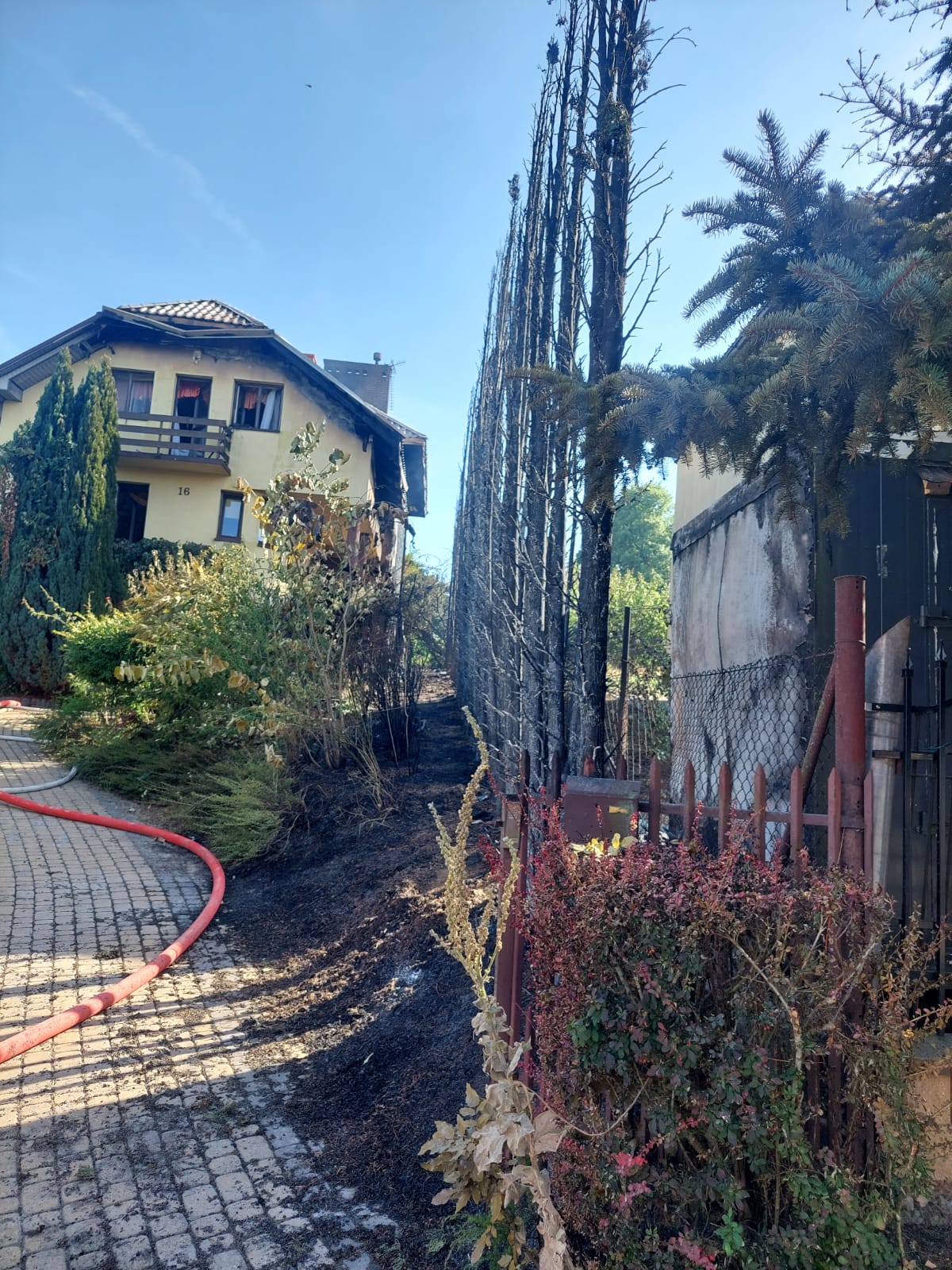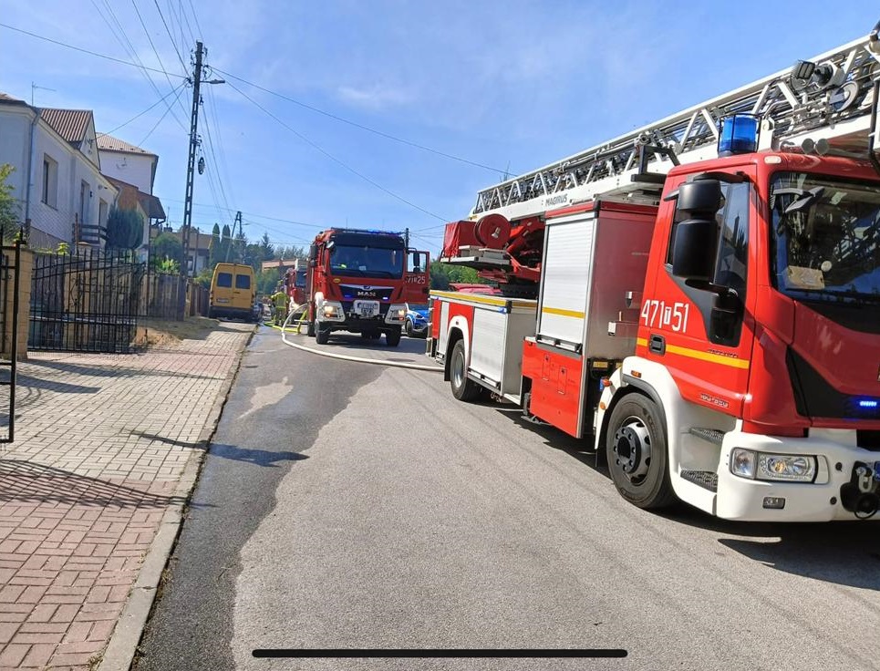 28 sierpnia 2025 roku do Stanowiska Kierowania Komendanta Powiatowego Państwowej Straży Pożarnej w Sandomierzu wpłynęło zgłoszenie o pożarze żywopłotu i budynku mieszkalnego w Sandomierzu. Do zdarzenia zadysponowano strażaków z JRG Sandomierz oraz OSP Obrazów, OSP Słupcza, OSP Złota, OSP Mściów -Nowy kamień oraz OSP Dwikozy. Po dojeździe na miejsce zdarzenia i przeprowadzonym rozpoznaniu stwierdzono, że pali się poddasze i dach budynku mieszkalnego, żywopłot z tui oraz garaż na przeciwległej posesji. Osoby zamieszkujące budynek znajdowały się na zewnątrz w bezpiecznym miejscu. Działania polegały na zabezpieczeniu miejsca zdarzenia, odłączeniu instalacji elektrycznej i gazowej w budynku po czym ugaszono budynek mieszkalny, żywopłot oraz garaż za pomocą prądów wody. Po ugaszeniu pożarów dokonano niezbędnych prac rozbiórkowych i przelano pojedyncze zarzewia ognia.