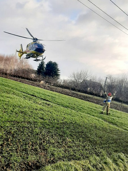 Strażacy przeszukując pomieszczenia odnaleźli osobę poszkodowaną, ewakuowali ją w bezpieczne miejsce i przekazali pod opiekę Zespołowi Ratownictwa Medycznego. Na miejsce pożaru przyleciał również śmigłowiec Lotniczego Pogotowia Ratunkowego. Ratownicy przygotowali miejsce lądowania śmigłowca oraz zabezpieczali operację lądowania i startu śmigłowca. Kobieta odleciała do specjalistycznego szpitala na dalsze badania i leczenie.
