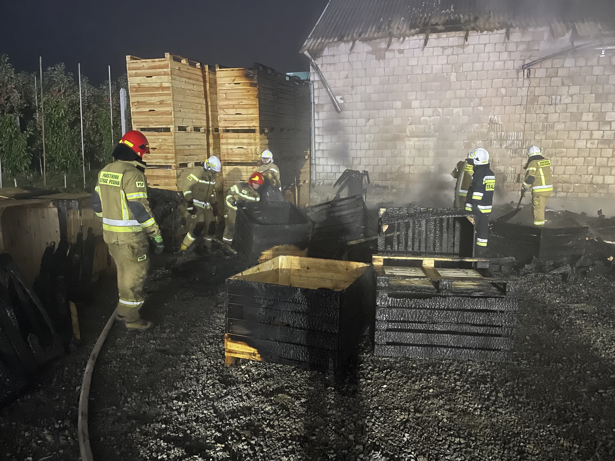 Pożar drewnianych skrzyń na owoce w miejscowości Głazów