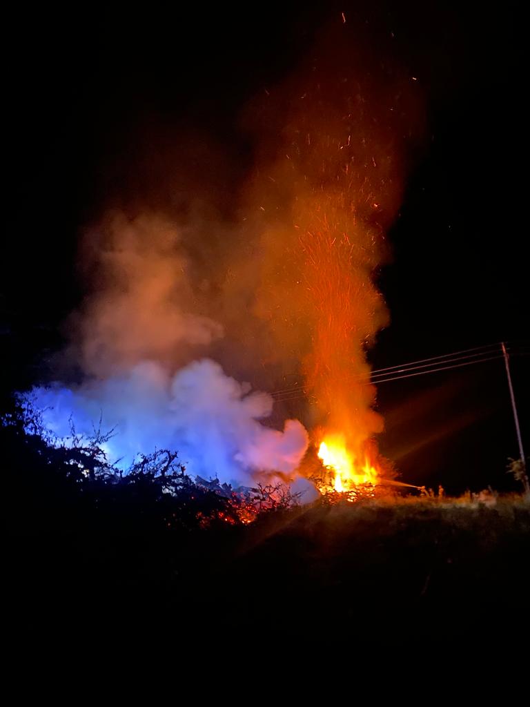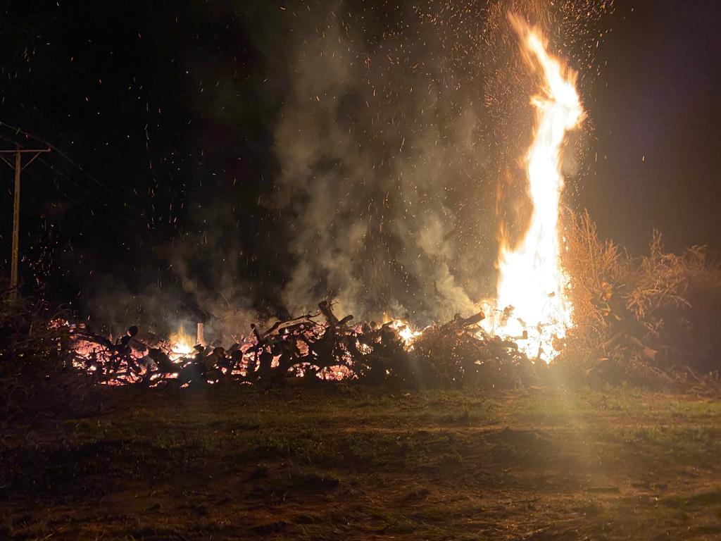 Po dojeździe straży pożarnej na miejsce zdarzenia ustalono, że ogniem objęta jest część sterty całych drzew owocowych wyciętych i złożonych na polu uprawnym.