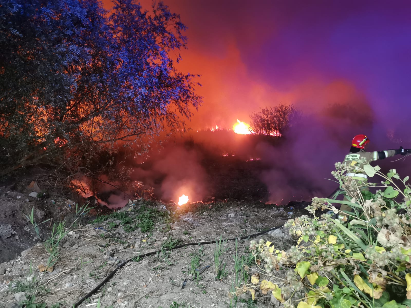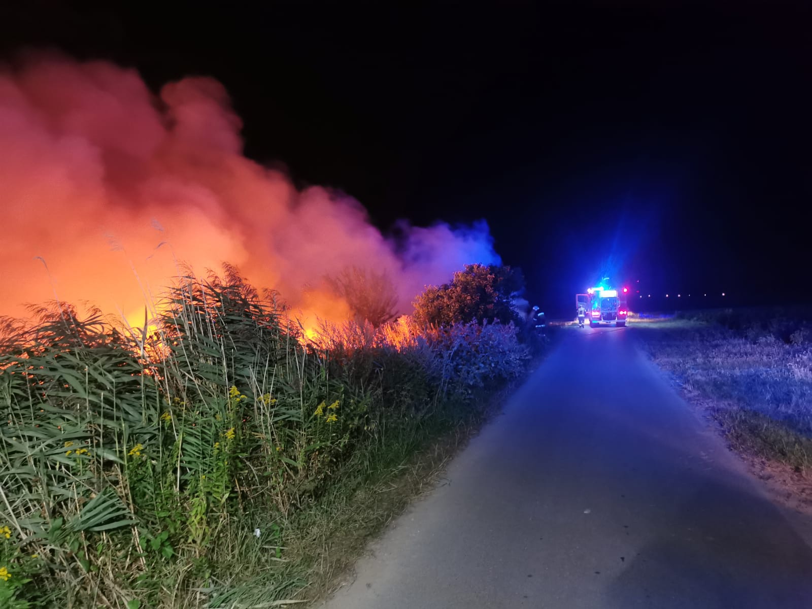 Po dojeździe na miejsce zdarzenia i przeprowadzonym rozpoznaniu stwierdzono, że na powierzchniach nie rolniczych palą się̨ nieużytki. Działania zastępów polegały na zabezpieczeniu miejsca zdarzenia podaniu czterech prądów wody w natarciu na palącą się trawę i trzcinę, następnie pojedyncze zarzewia ognia ugaszono tłumicami.