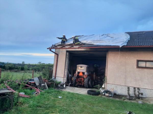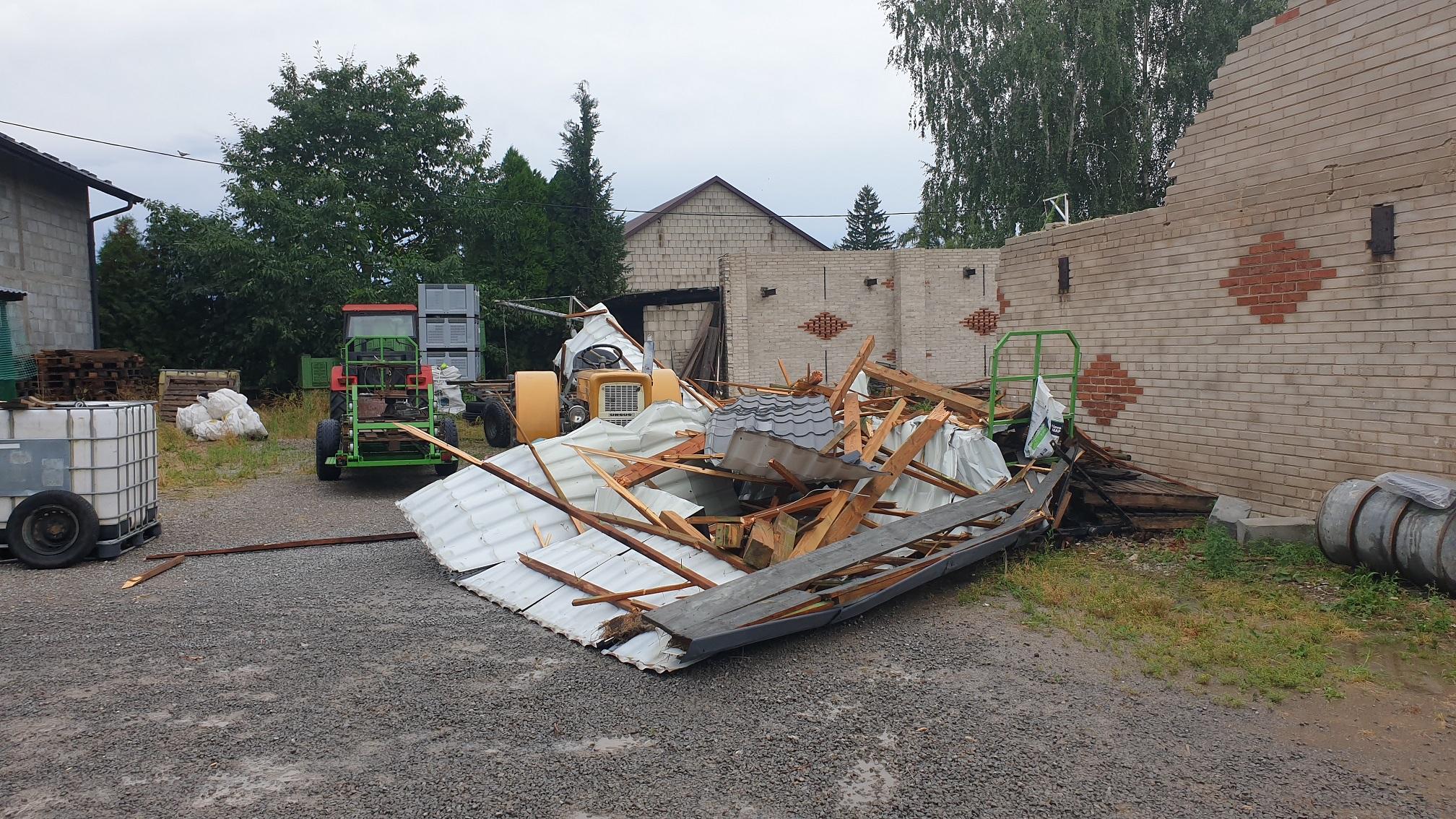 - 9 zdarzeń dotyczących częściowo zerwanych i uszkodzonych dachów na budynkach mieszkalnych i gospodarczych.