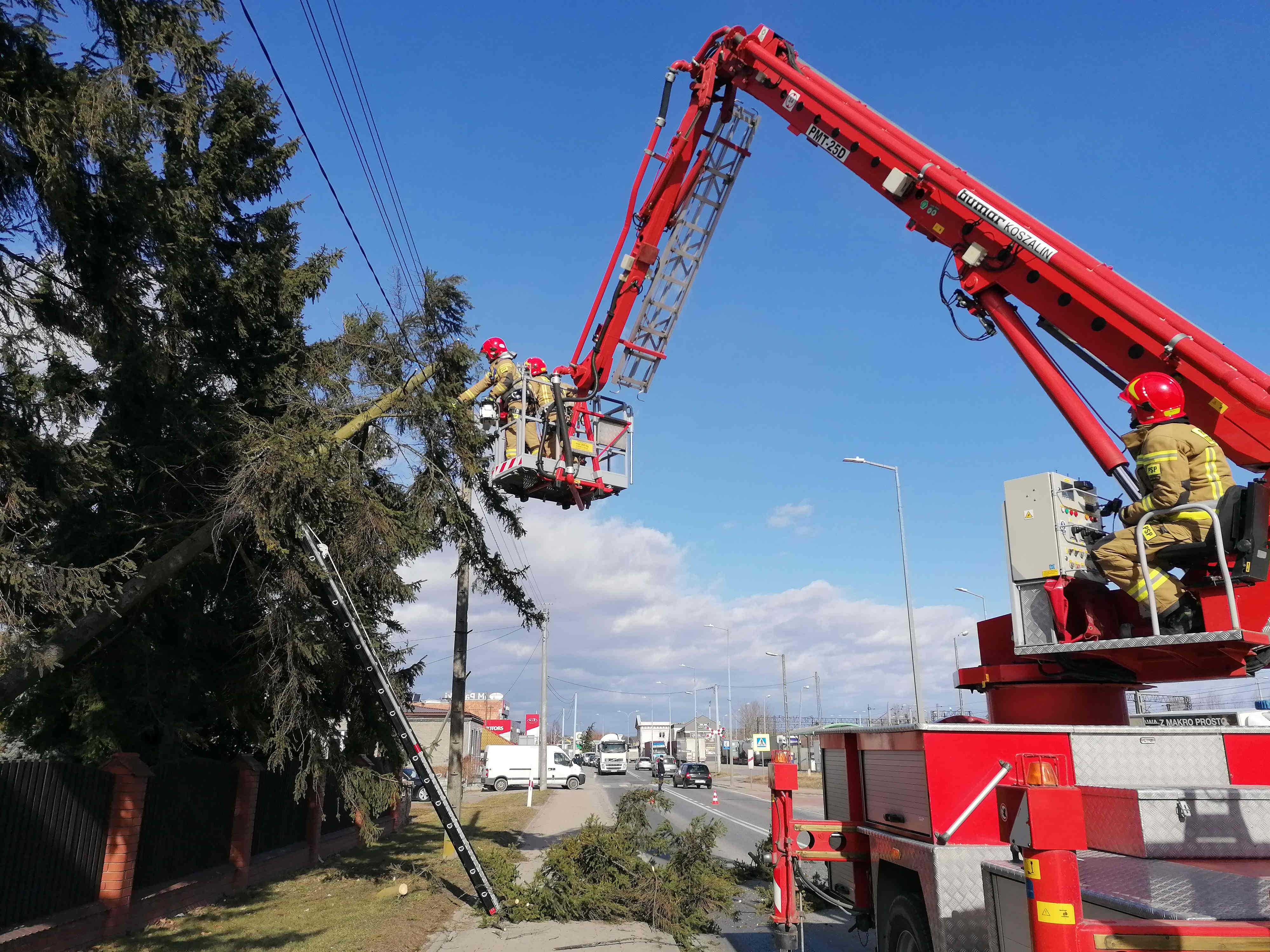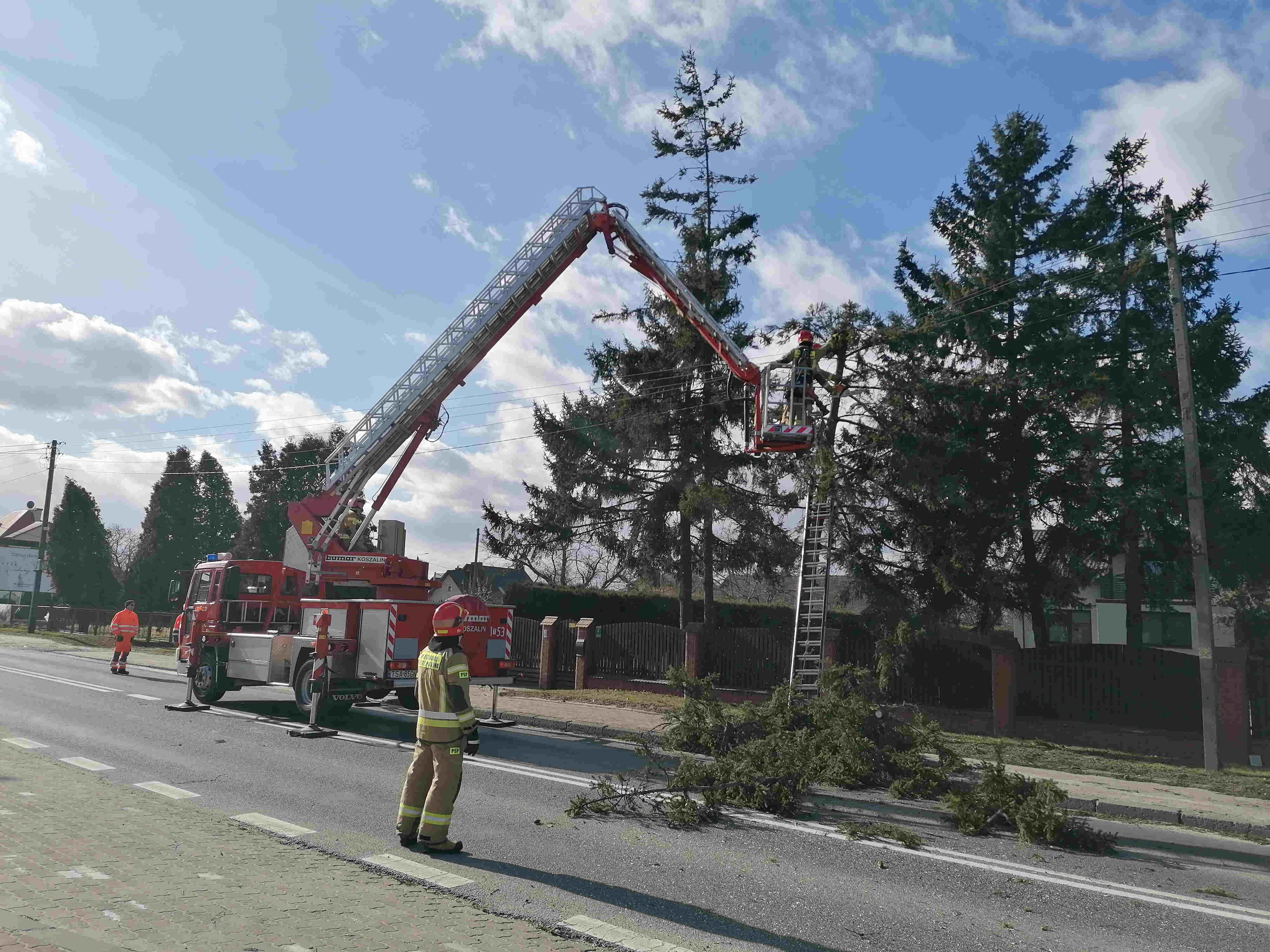 W związku z silnymi porywami wiatru strażacy interweniowali 26 razy, w tym zabezpieczali uszkodzone przez wiatr elementy dachów budynków i usuwali powalone przez wiatr drzewa. Ponadto strażacy15 razy interweniowali przy pożarach traw i nieużytków. Inne zdarzenia dotyczyły pompowań wody z budynków oraz wypadku drogowego, w którym została poszkodowana jedna sobą. W działaniach ratowniczych brało udział łącznie 63 zastępy straży pożarnej i 279 ratowników Państwowej i Ochotniczej Straży Pożarnej.