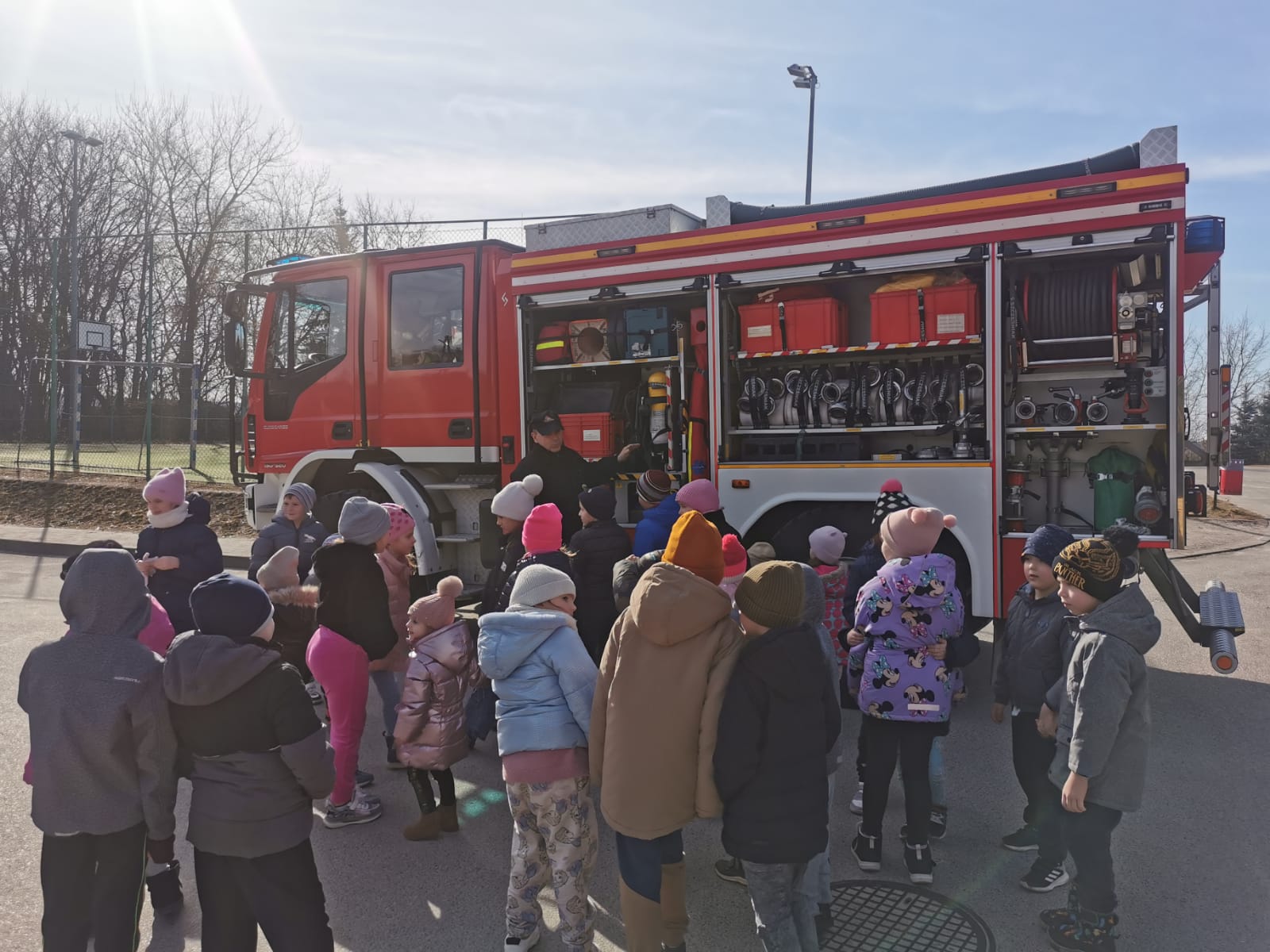 05 marca 2025 roku w Szkole Podstawowej im. Stefana Żeromskiego w Niedźwicach funkcjonariusze Komendy Powiatowej Państwowej Straży Pożarnej w Sandomierzu przeprowadzili prelekcję na temat bezpieczeństwa przeciwpożarowego. Przybliżyli uczniom prace strażaków oraz zaprezentowali wóz pożarniczy. Spotkanie miało na celu uświadomienie uczniom jak i nauczycielom jak ważne jest bezpieczeństwo oraz jak zachować się podczas wystąpienia zagrożenia. Na spotkaniu strażacy zaprezentowali sprzęt pożarniczy, który uczniowie mogli przymierzyć i dzięki temu poczuć się jak prawdziwi strażacy. Uczniowie aktywnie uczestniczyli w prelekcjach oraz zadawali dużo pytań.